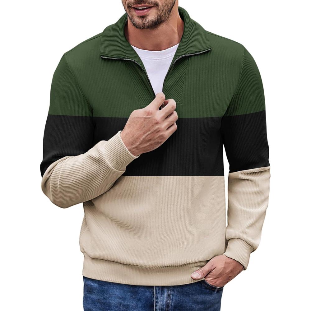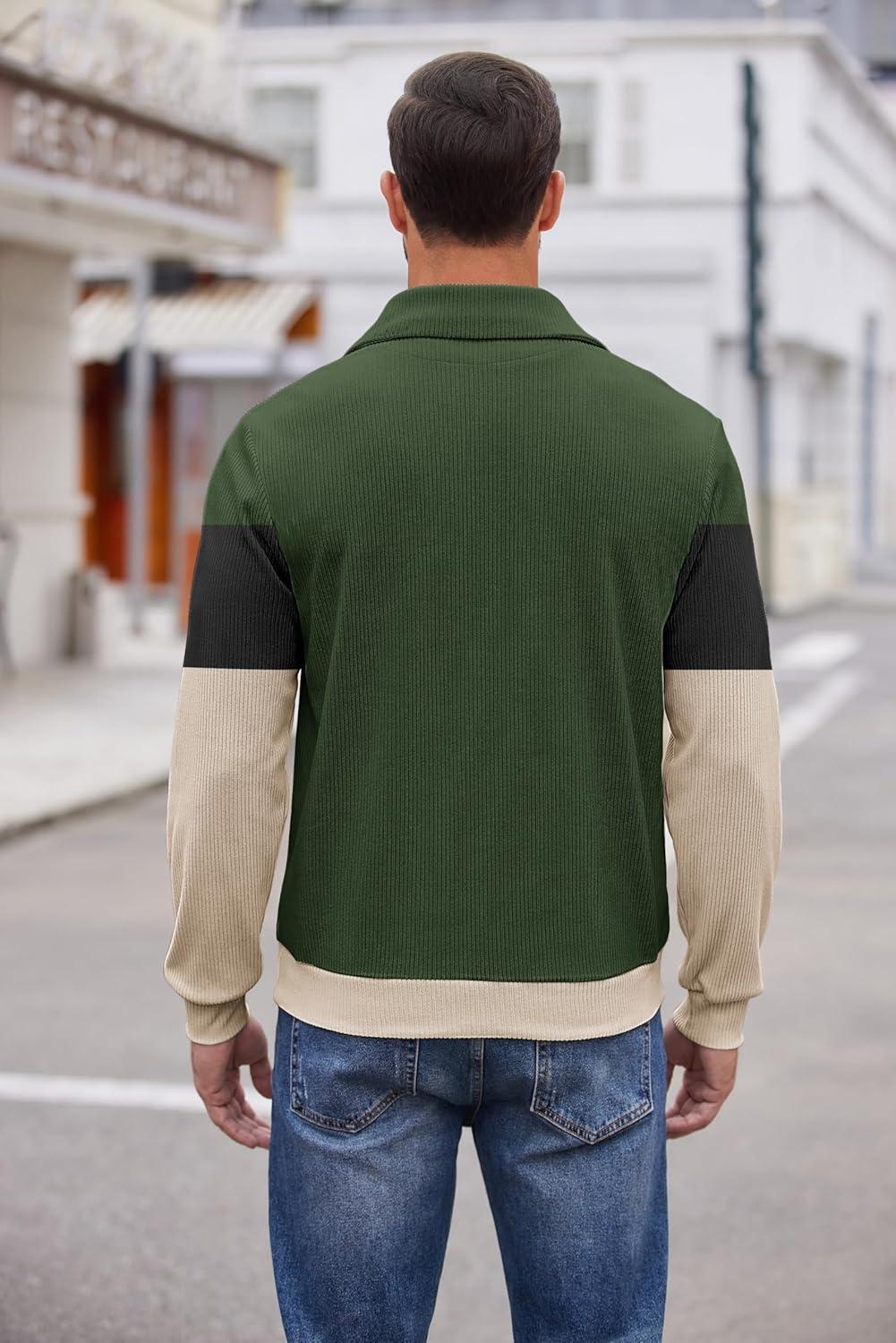 COOFANDY Men's Quarter Zip Up Pullover Mock Neck Long Sleeve Sweater Casual Corduroy Polo Sweatshirt(Green Black Khaki)