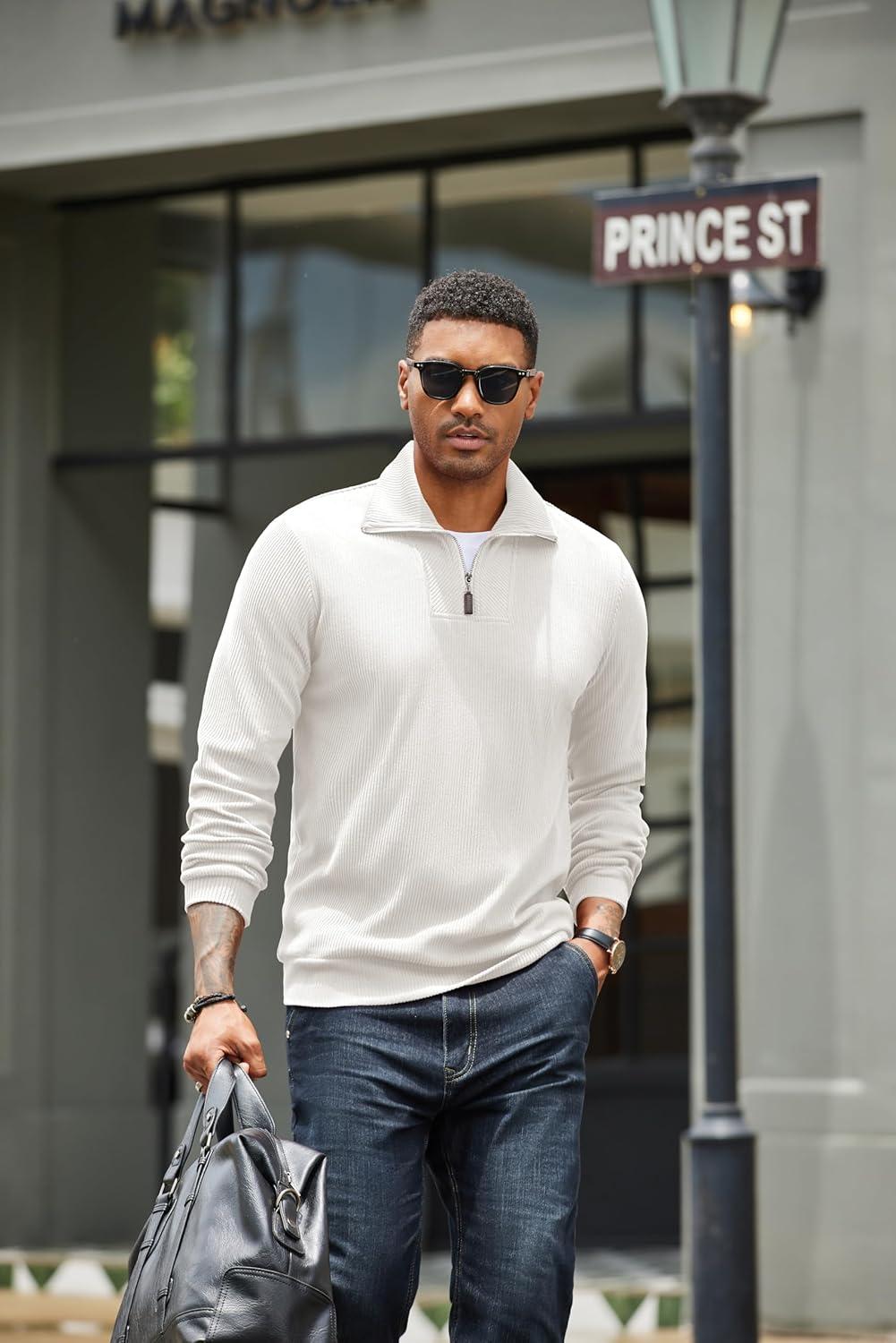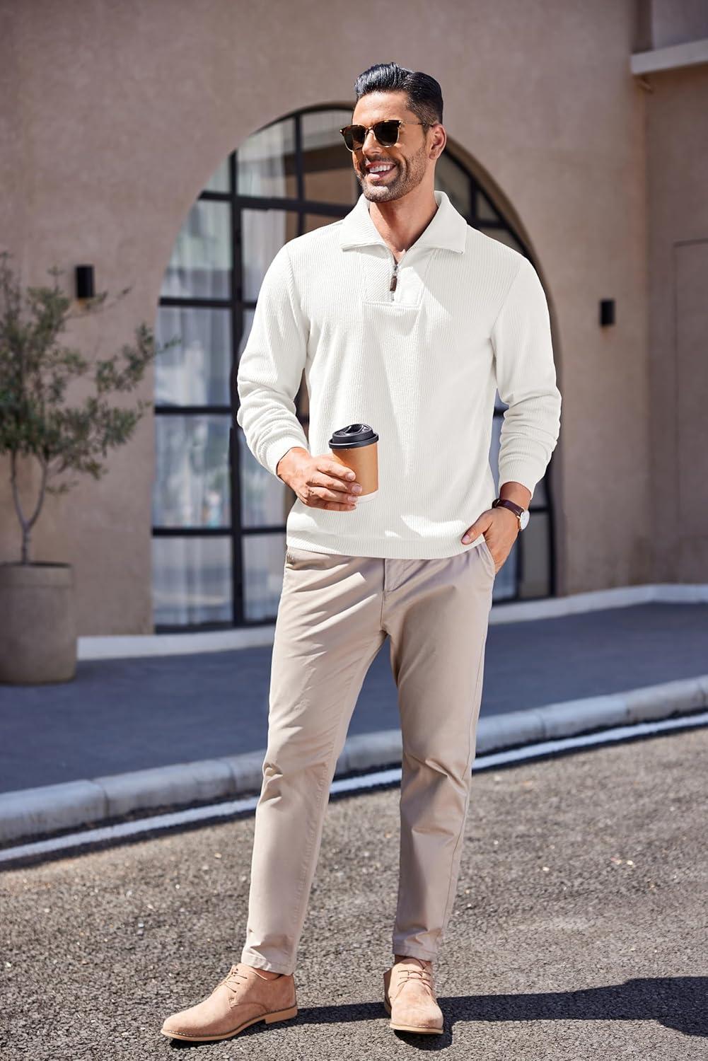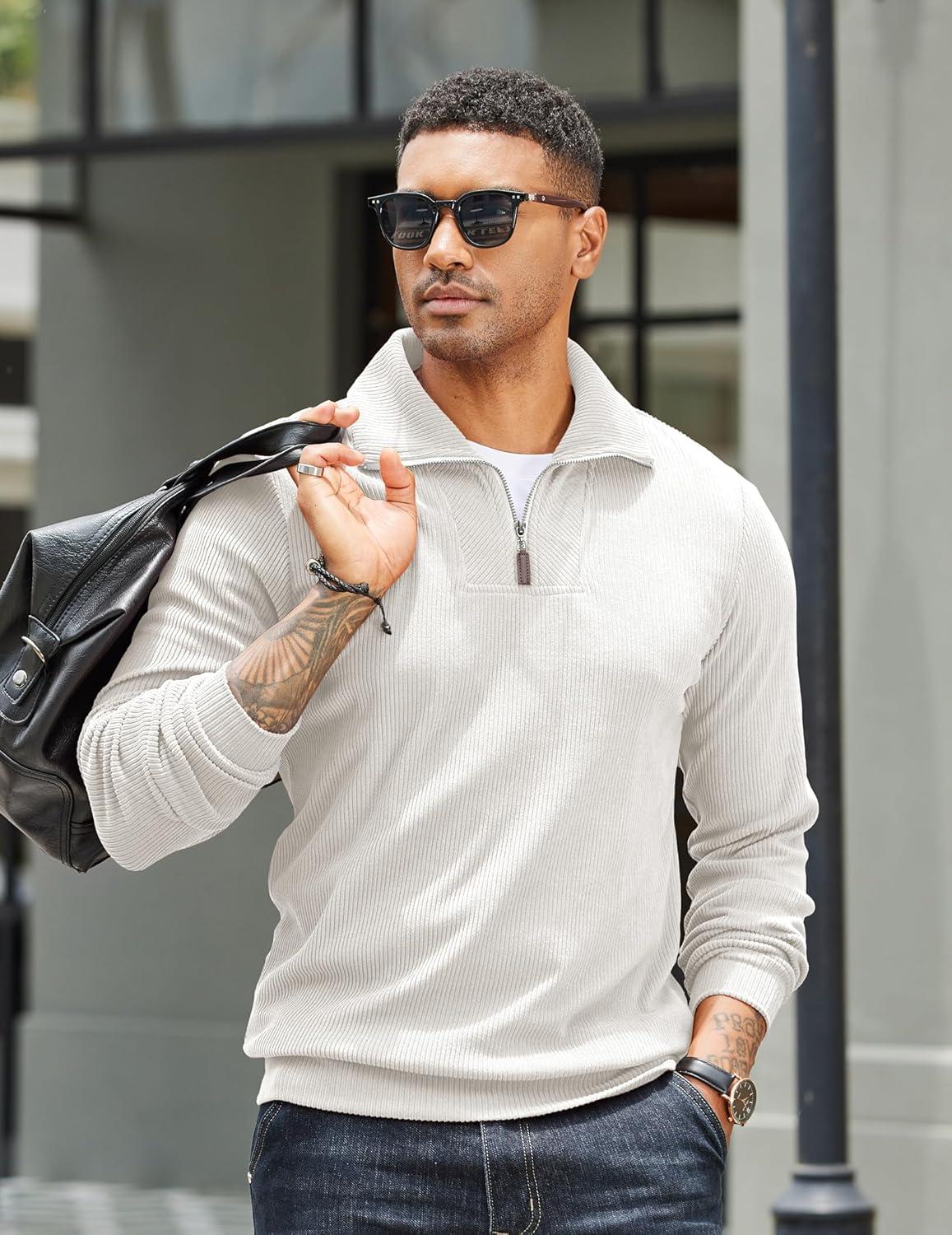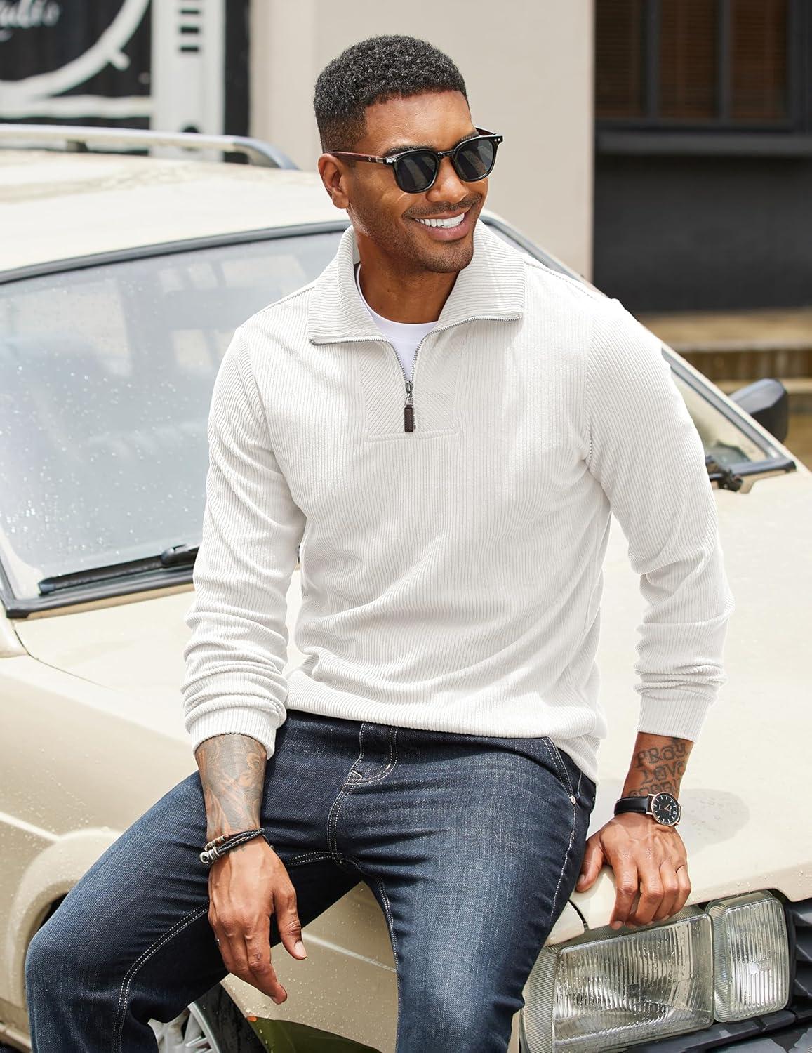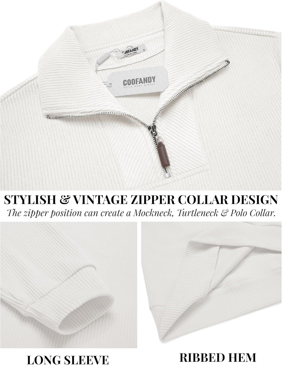 Our holiday sale features the best deals on COOFANDY Men’s Quarter Zip Up Pullover Mock Neck Long Sleeve Sweater Casual Corduroy Polo Sweatshirt(White) and accessories. Shop now and save!
