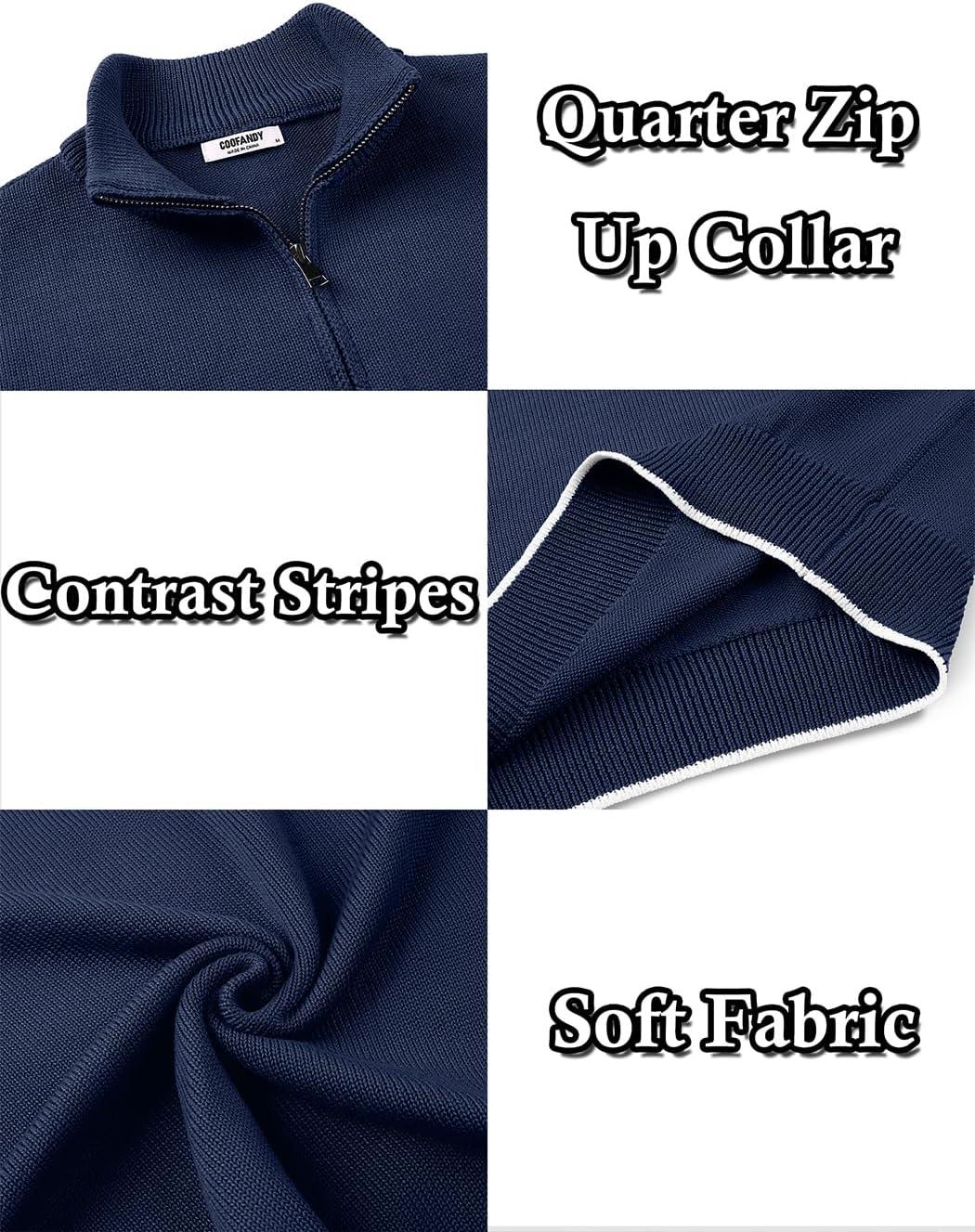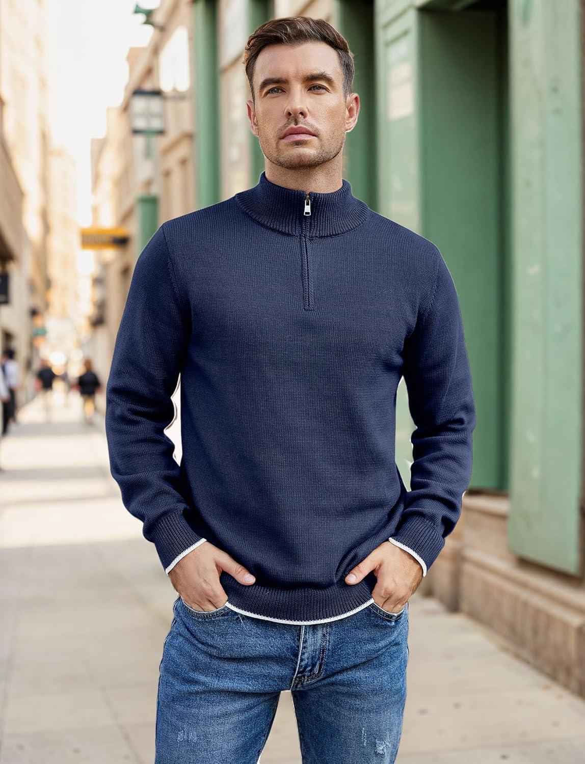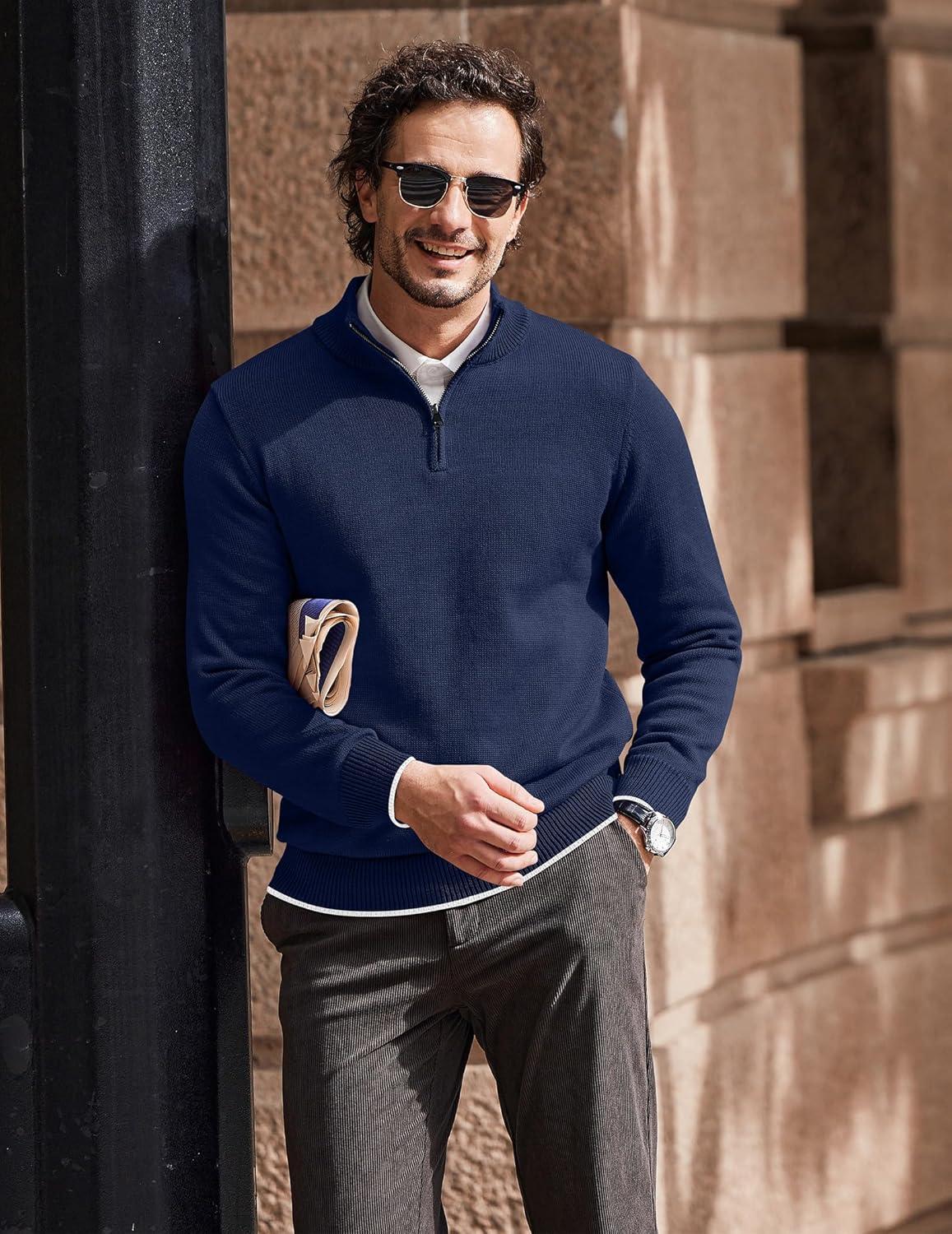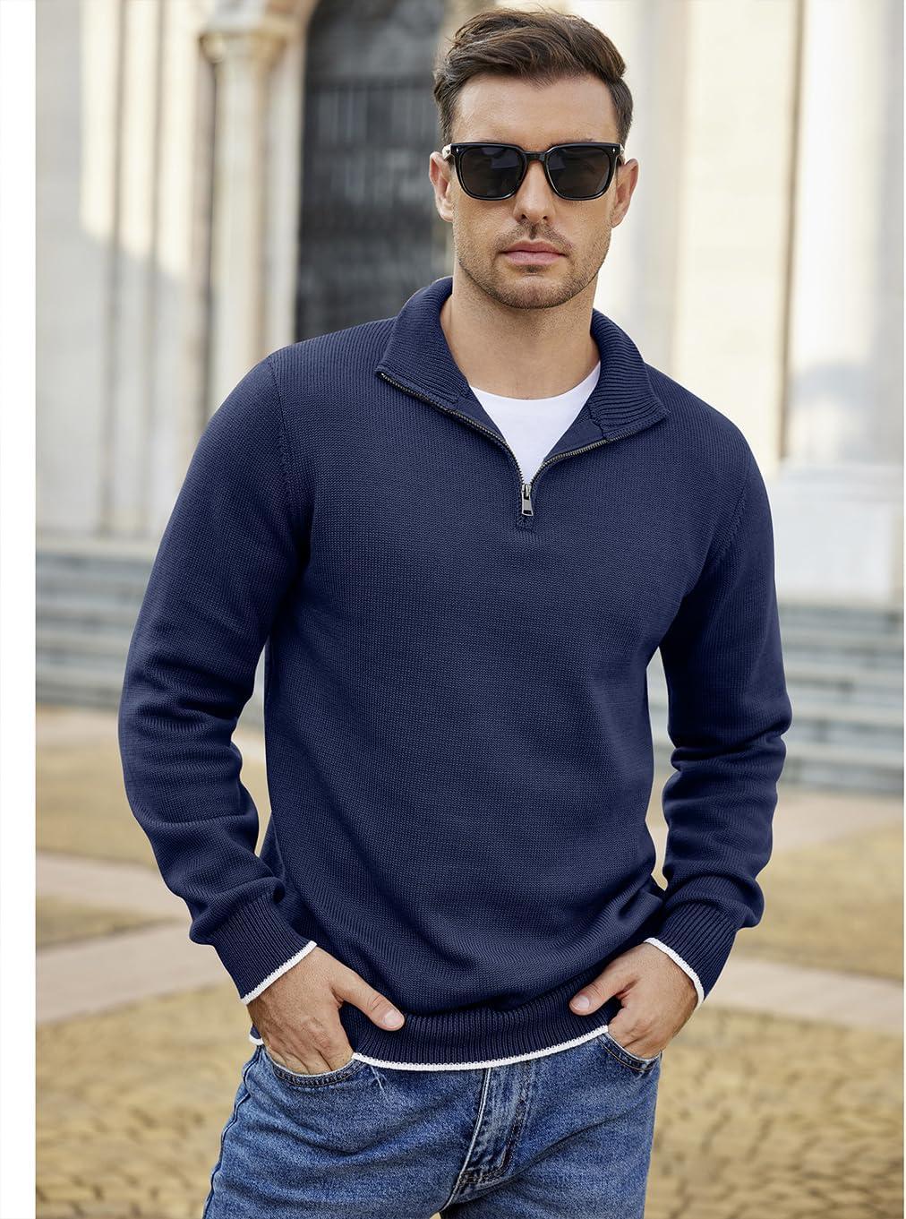 COOFANDY Men's Quarter Zip Up Pullover Slim Fit Lightweight Mock Neck Long Sleeve Sweaters(Navy Blue)