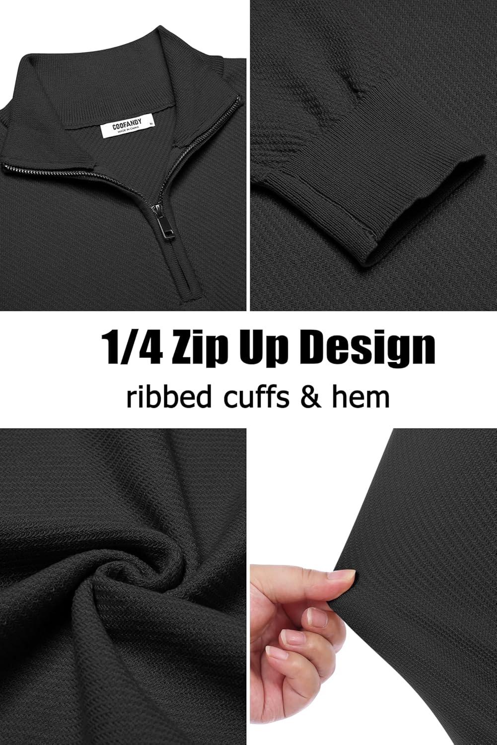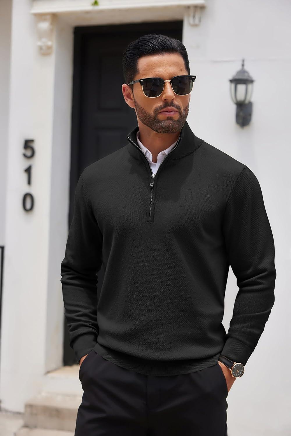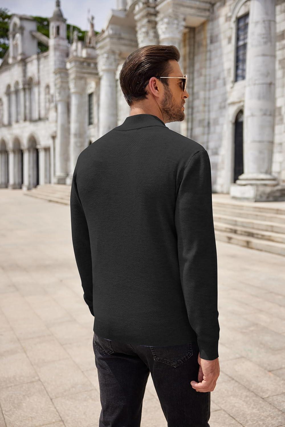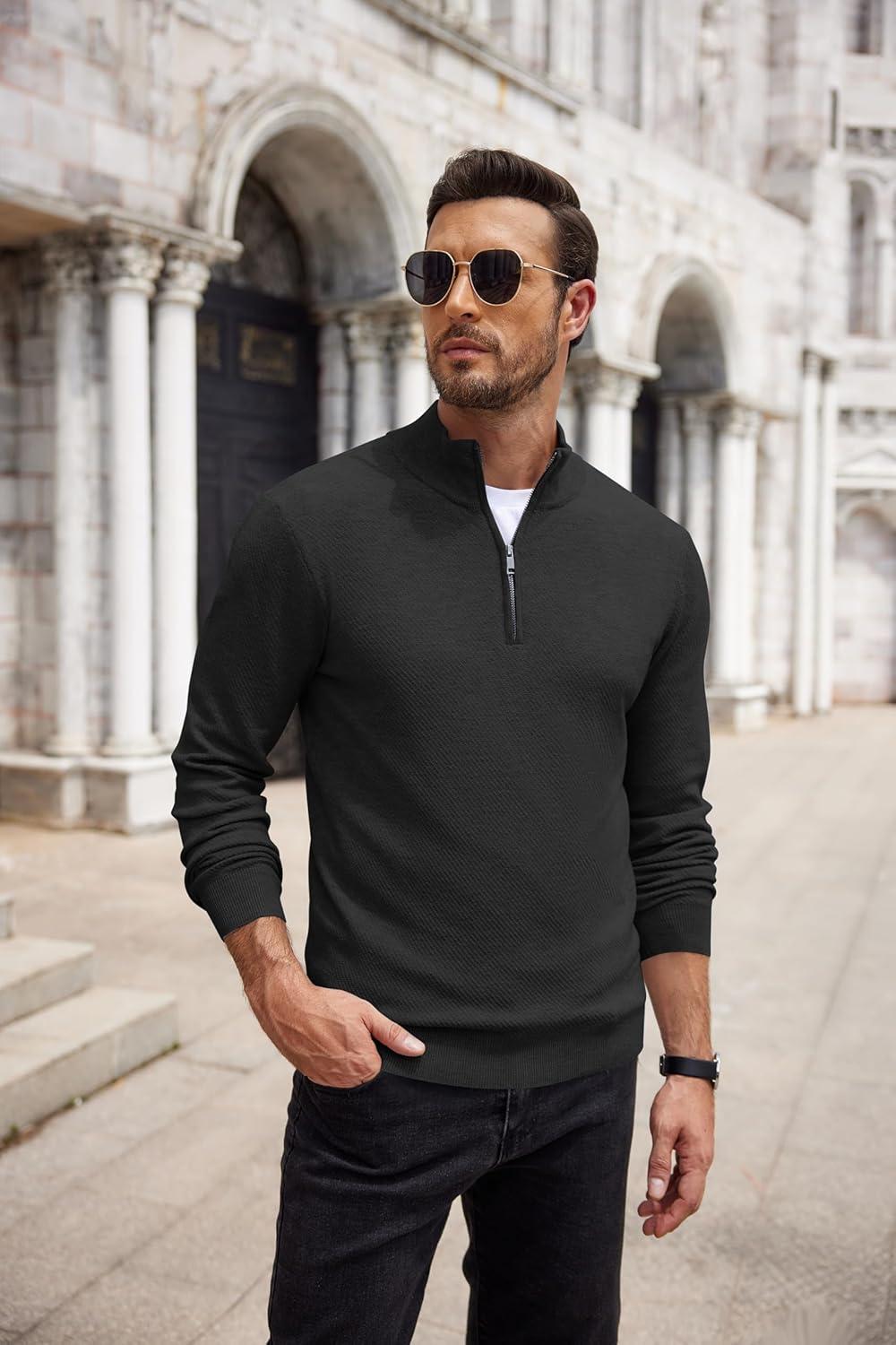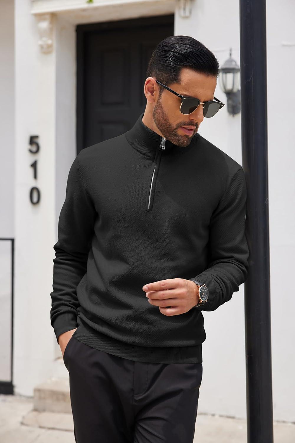 COOFANDY Men’s Quarter Zip Up Sweaters Slim Fit Casual Long Sleeve Knitted Mock Neck Pullover Sweaters(Black)