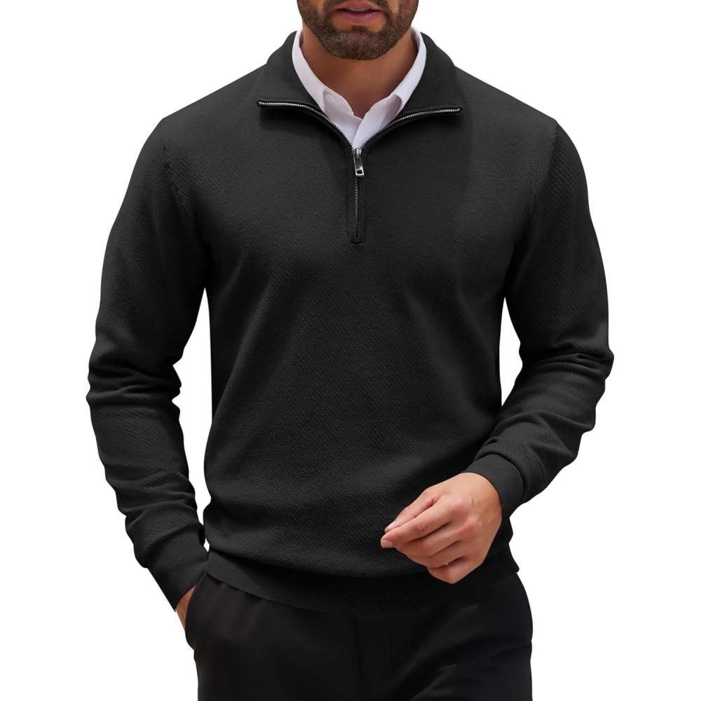 COOFANDY Men's Quarter Zip Up Sweaters Slim Fit Casual Long Sleeve Knitted Mock Neck Pullover Sweaters(Black)