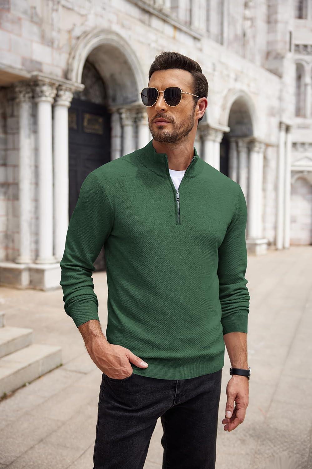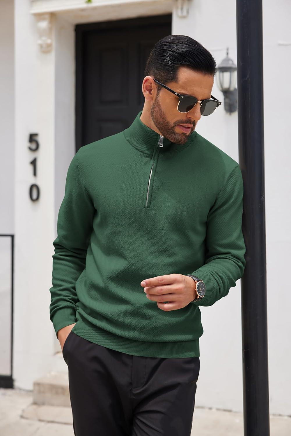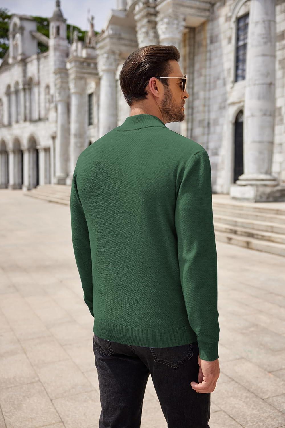 COOFANDY Men’s Quarter Zip Up Sweaters Slim Fit Casual Long Sleeve Knitted Mock Neck Pullover Sweaters(Green)