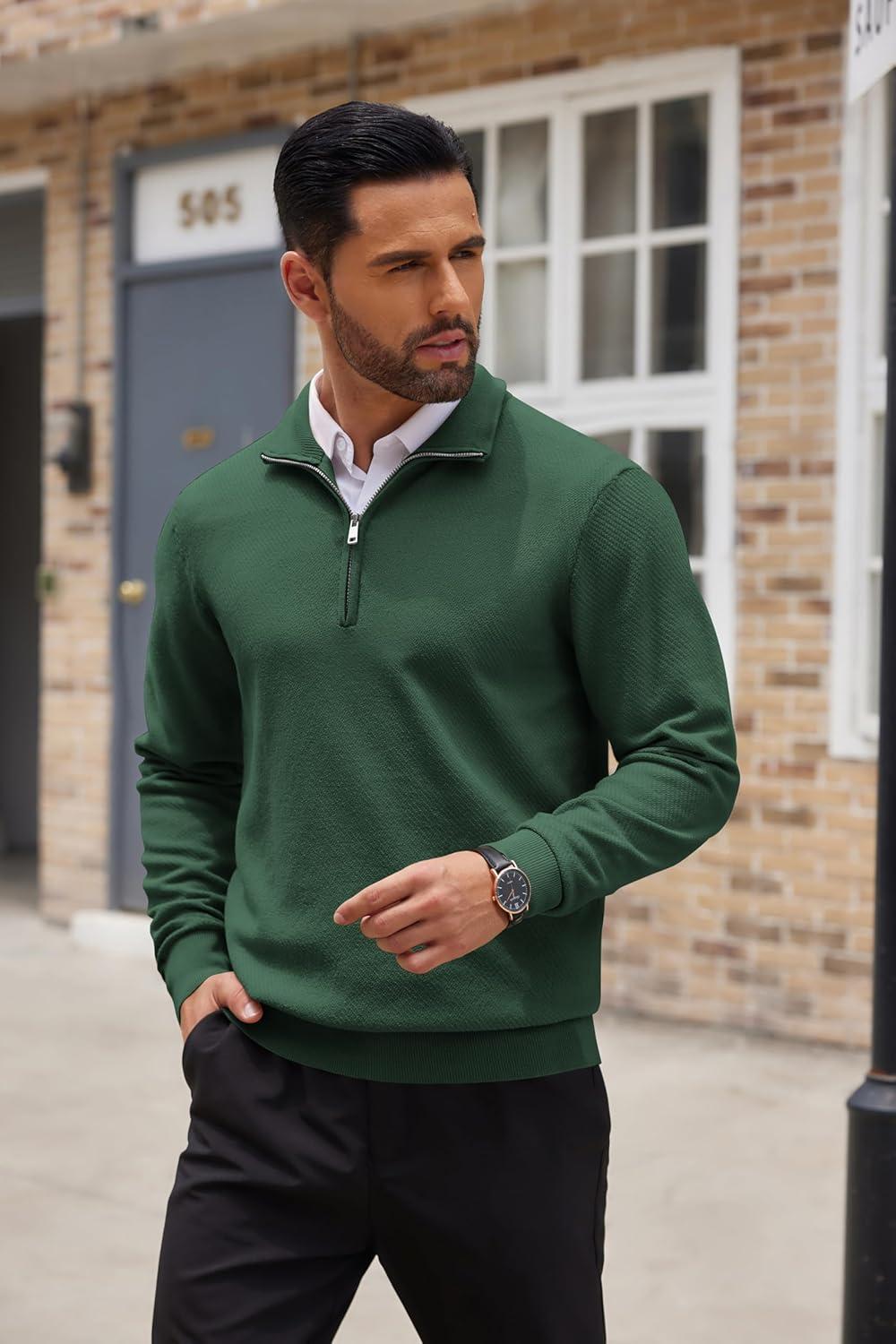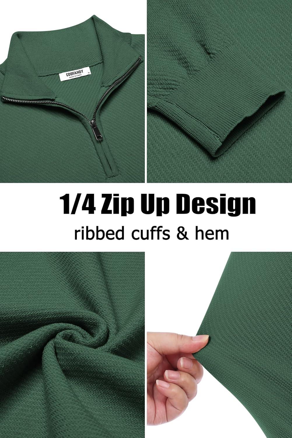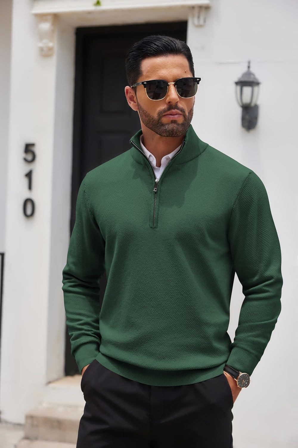 COOFANDY Men’s Quarter Zip Up Sweaters Slim Fit Casual Long Sleeve Knitted Mock Neck Pullover Sweaters(Green)