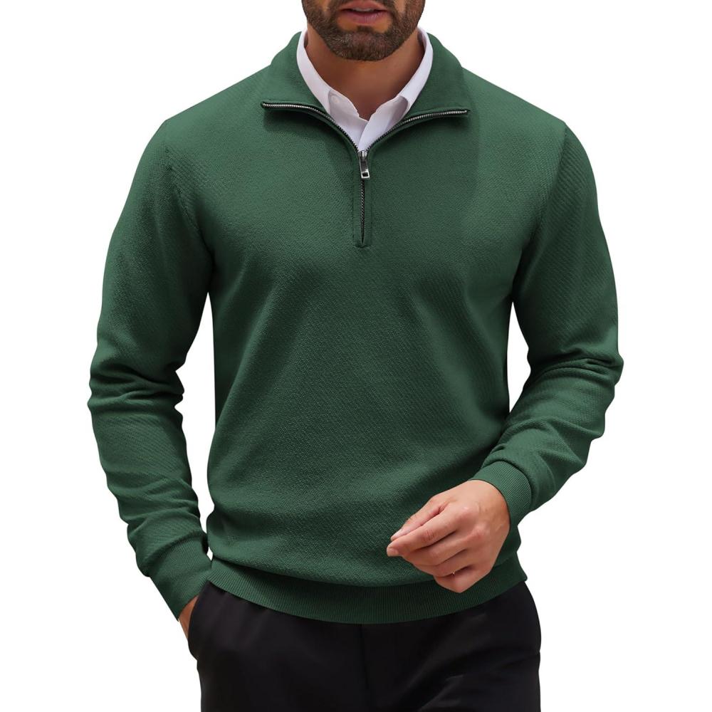 COOFANDY Men's Quarter Zip Up Sweaters Slim Fit Casual Long Sleeve Knitted Mock Neck Pullover Sweaters(Green)