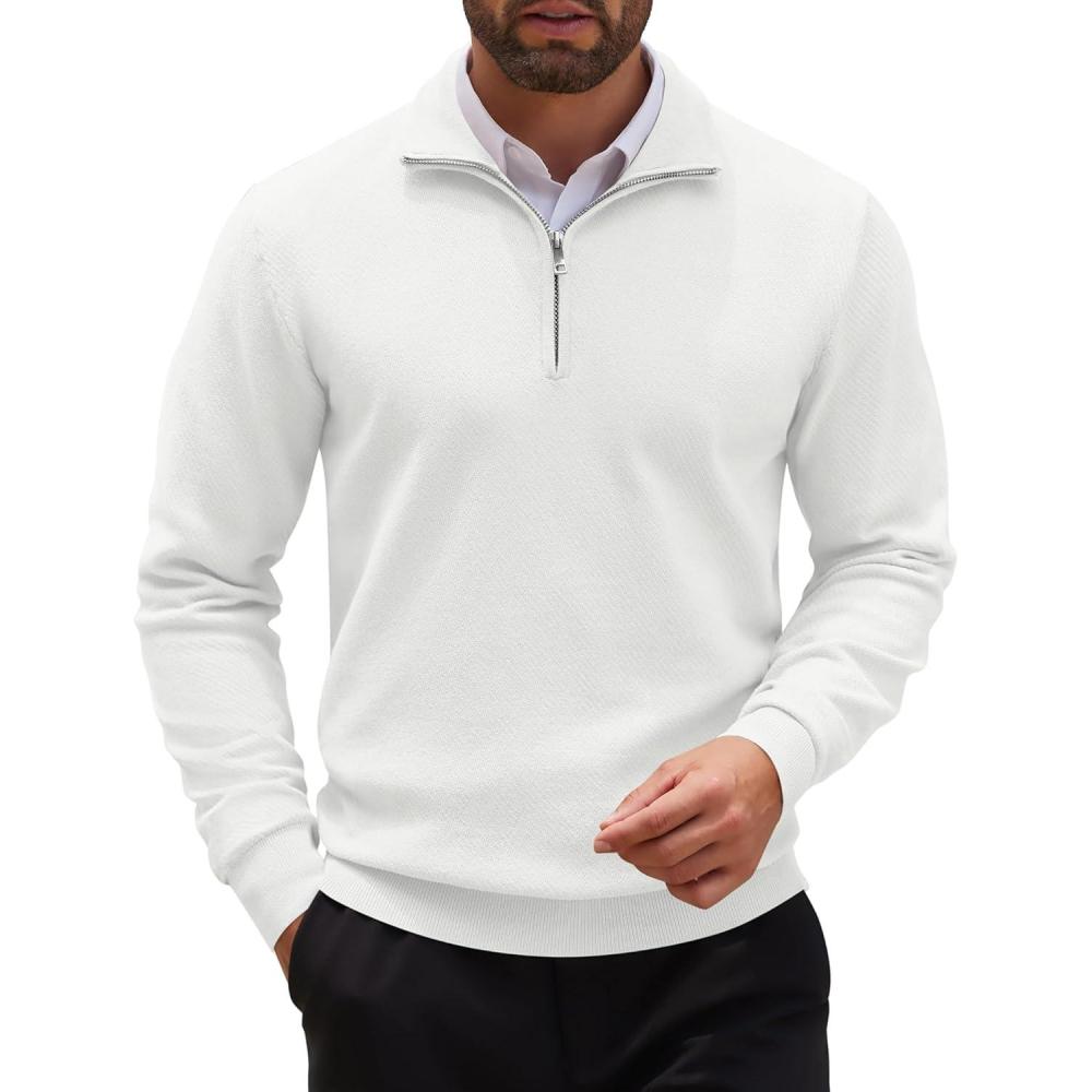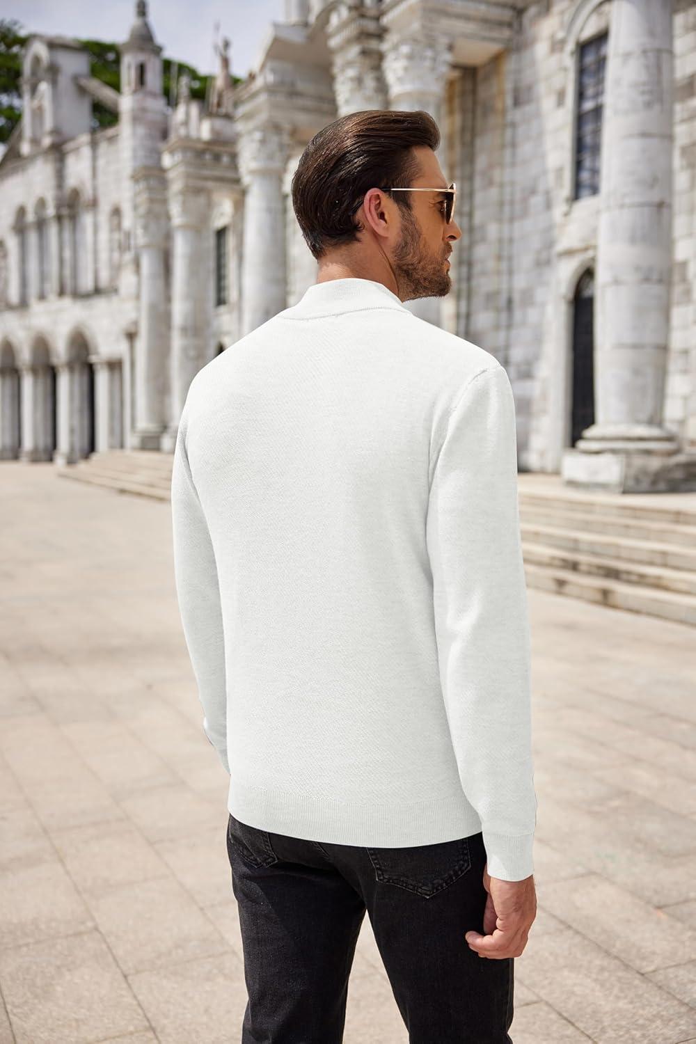 COOFANDY Men's Quarter Zip Up Sweaters Slim Fit Casual Long Sleeve Knitted Mock Neck Pullover Sweaters(White)