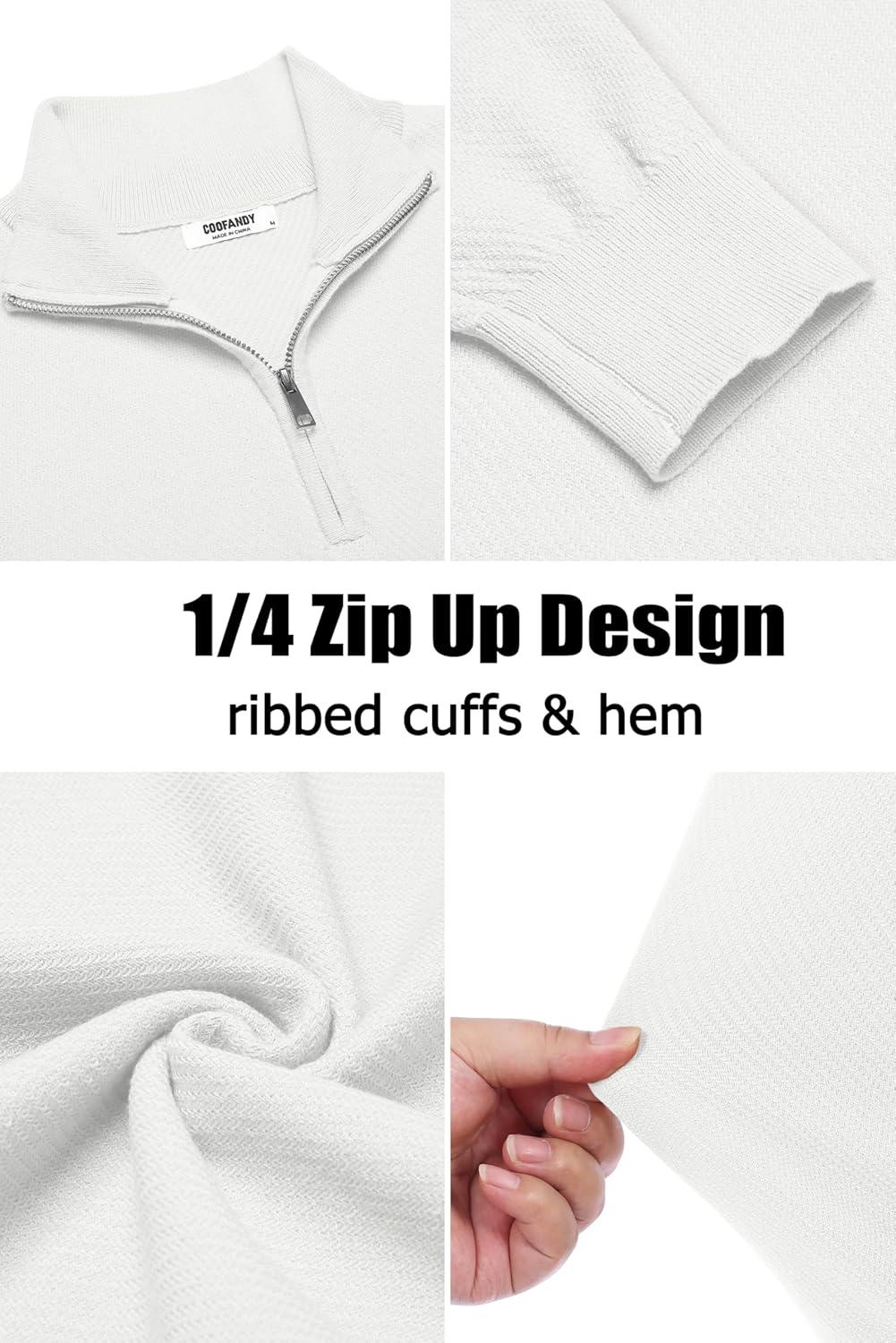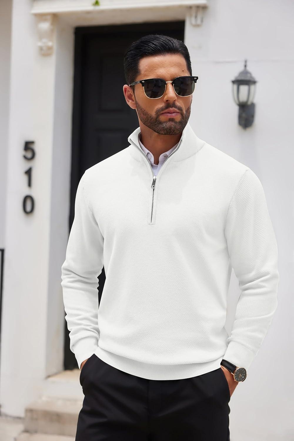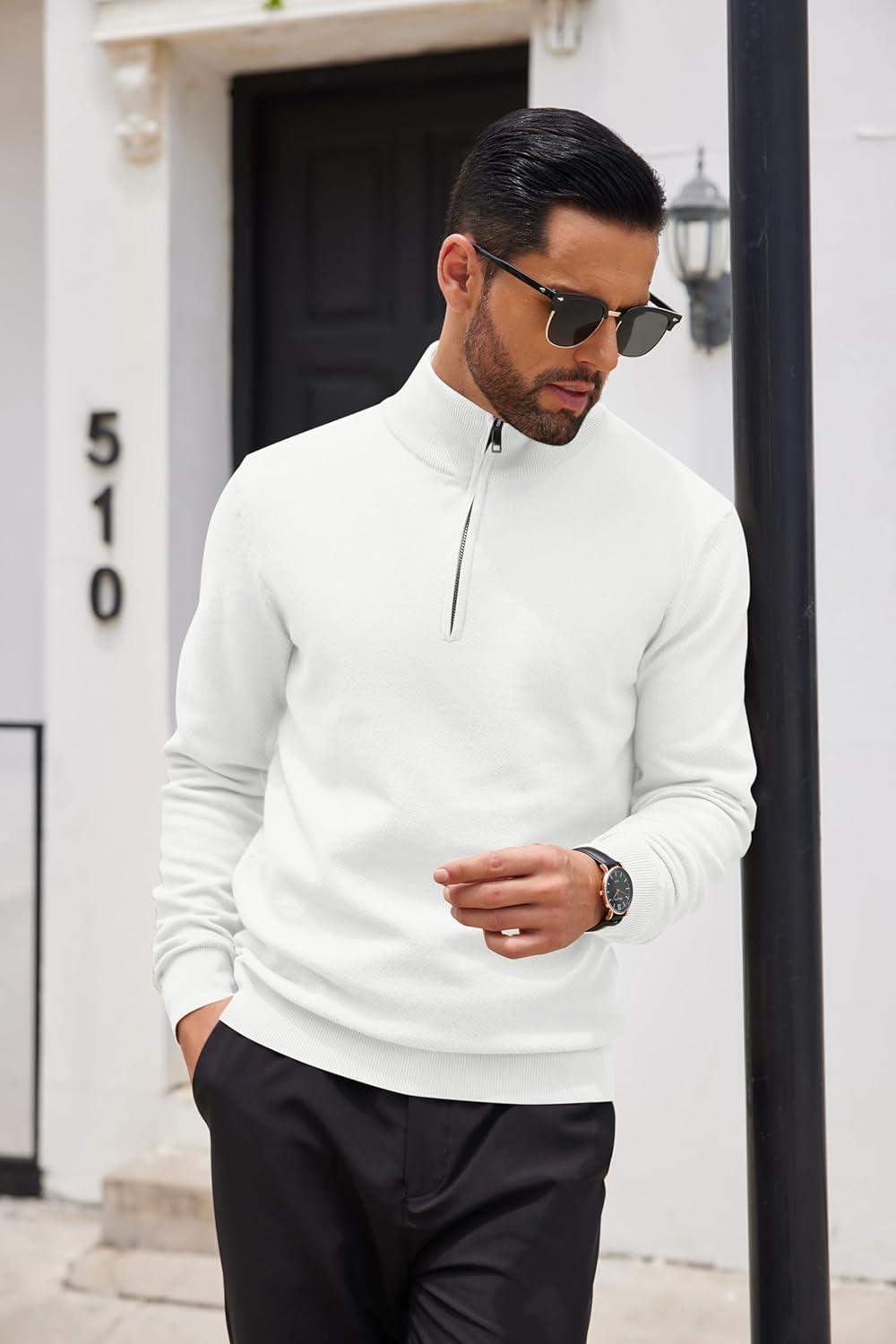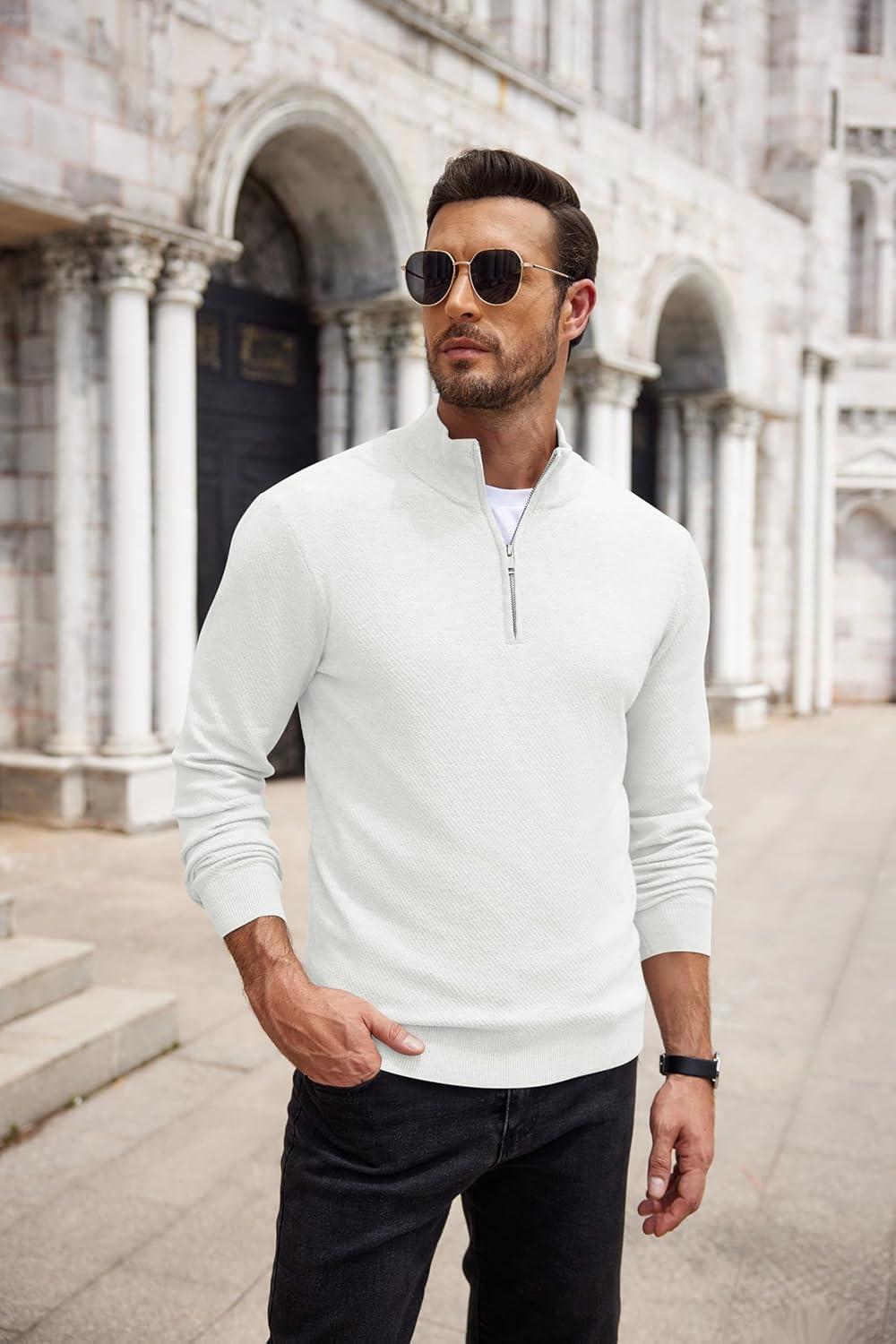 Get up to 50% off on COOFANDY Men’s Quarter Zip Up Sweaters Slim Fit Casual Long Sleeve Knitted Mock Neck Pullover Sweaters(White) styles during our spring sale event.