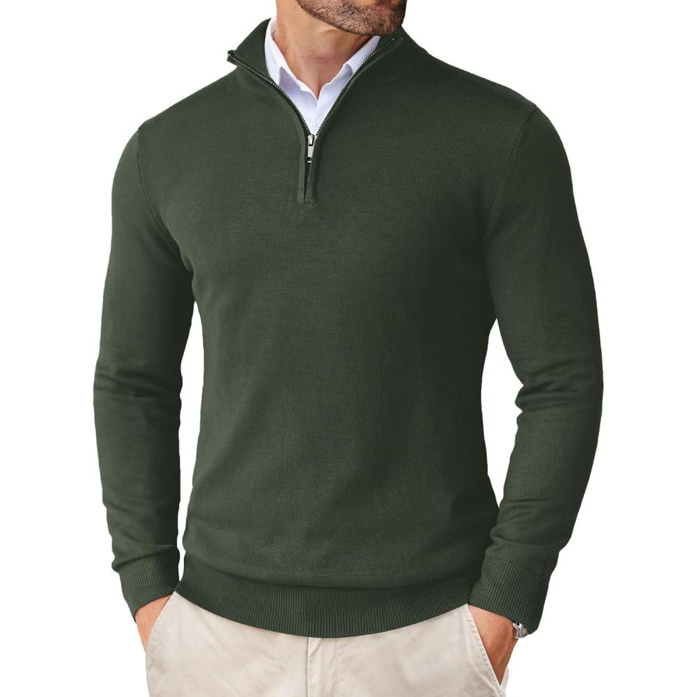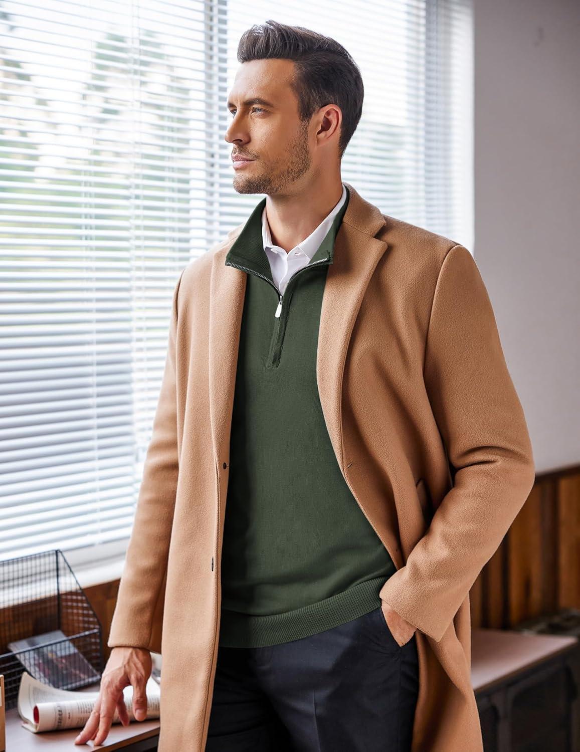 COOFANDY Men's Quarter Zip Up Sweaters Slim Fit Lightweight Mock Neck Pullover Casual Polo Sweaters(Army Green)