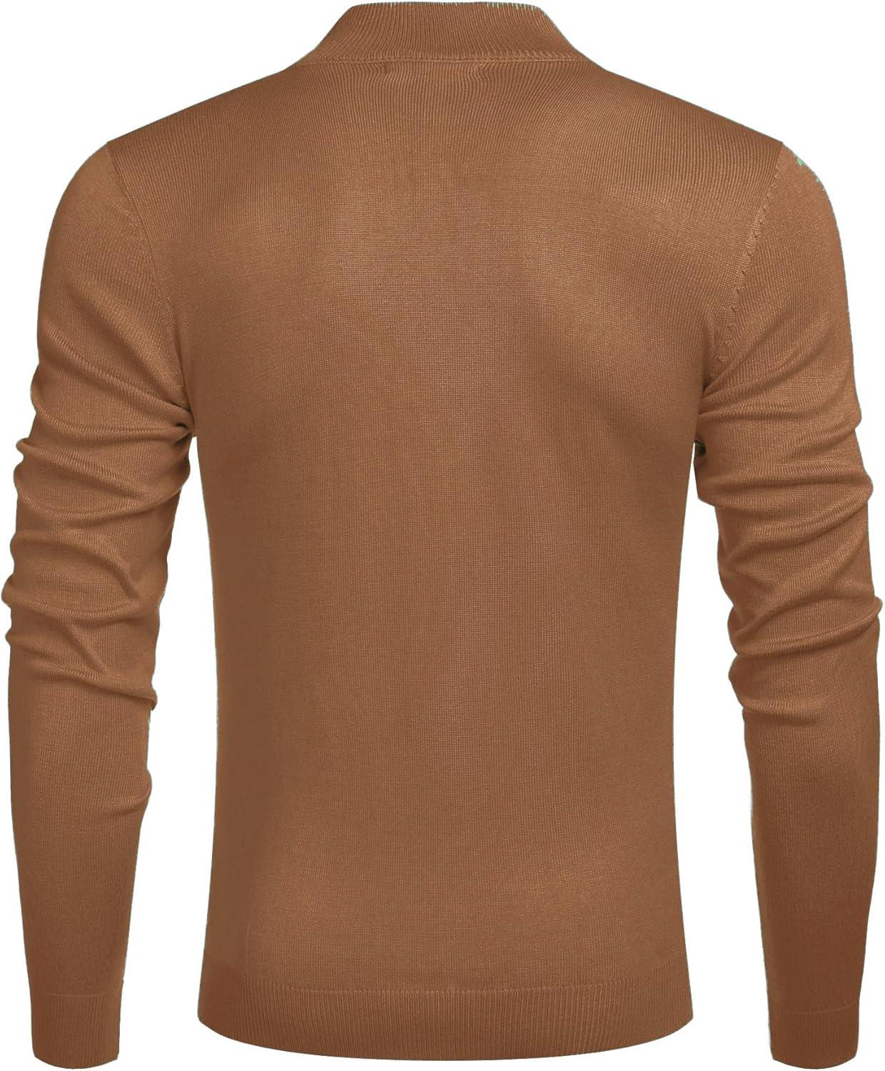 COOFANDY Men’s Quarter Zip Up Sweaters Slim Fit Lightweight Mock Neck Pullover Casual Polo Sweaters(Brown)