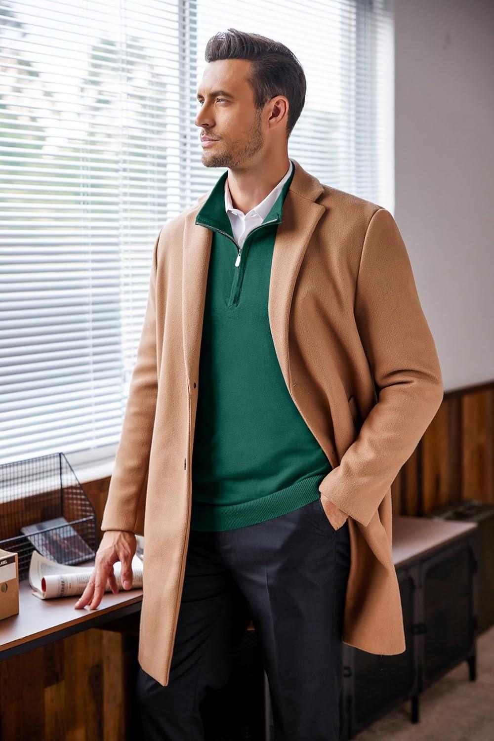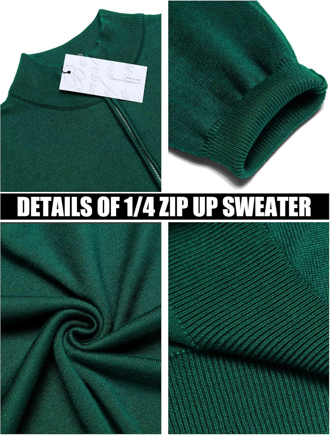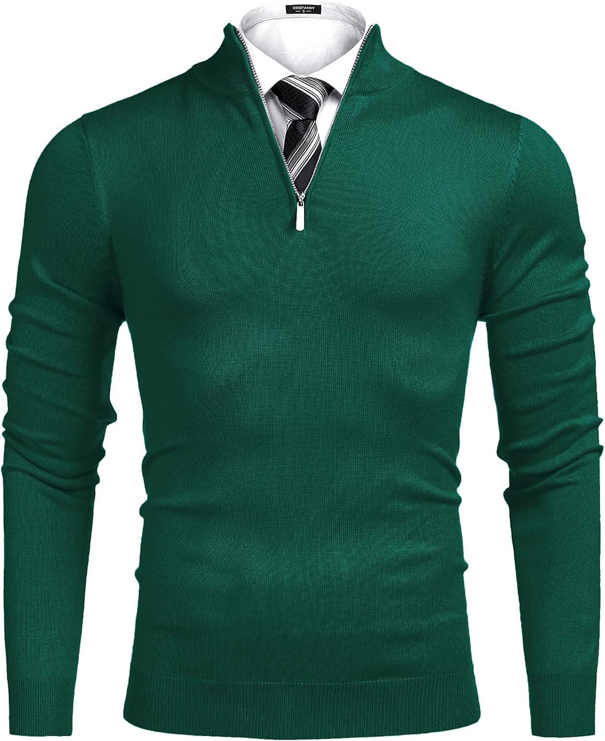 COOFANDY Men's Quarter Zip Up Sweaters Slim Fit Lightweight Mock Neck Pullover Casual Polo Sweaters(Dark Green)