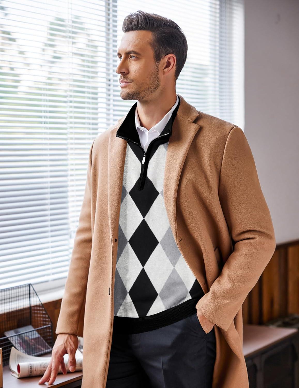 COOFANDY Men’s Quarter Zip Up Sweaters Slim Fit Lightweight Mock Neck Pullover Casual Polo Sweaters(Christmas Red & Elk)