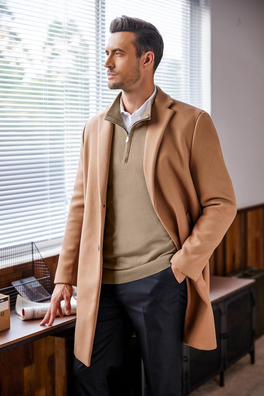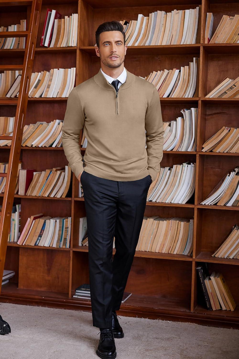 COOFANDY Men's Quarter Zip Up Sweaters Slim Fit Lightweight Mock Neck Pullover Casual Polo Sweaters(Dark Khaki)