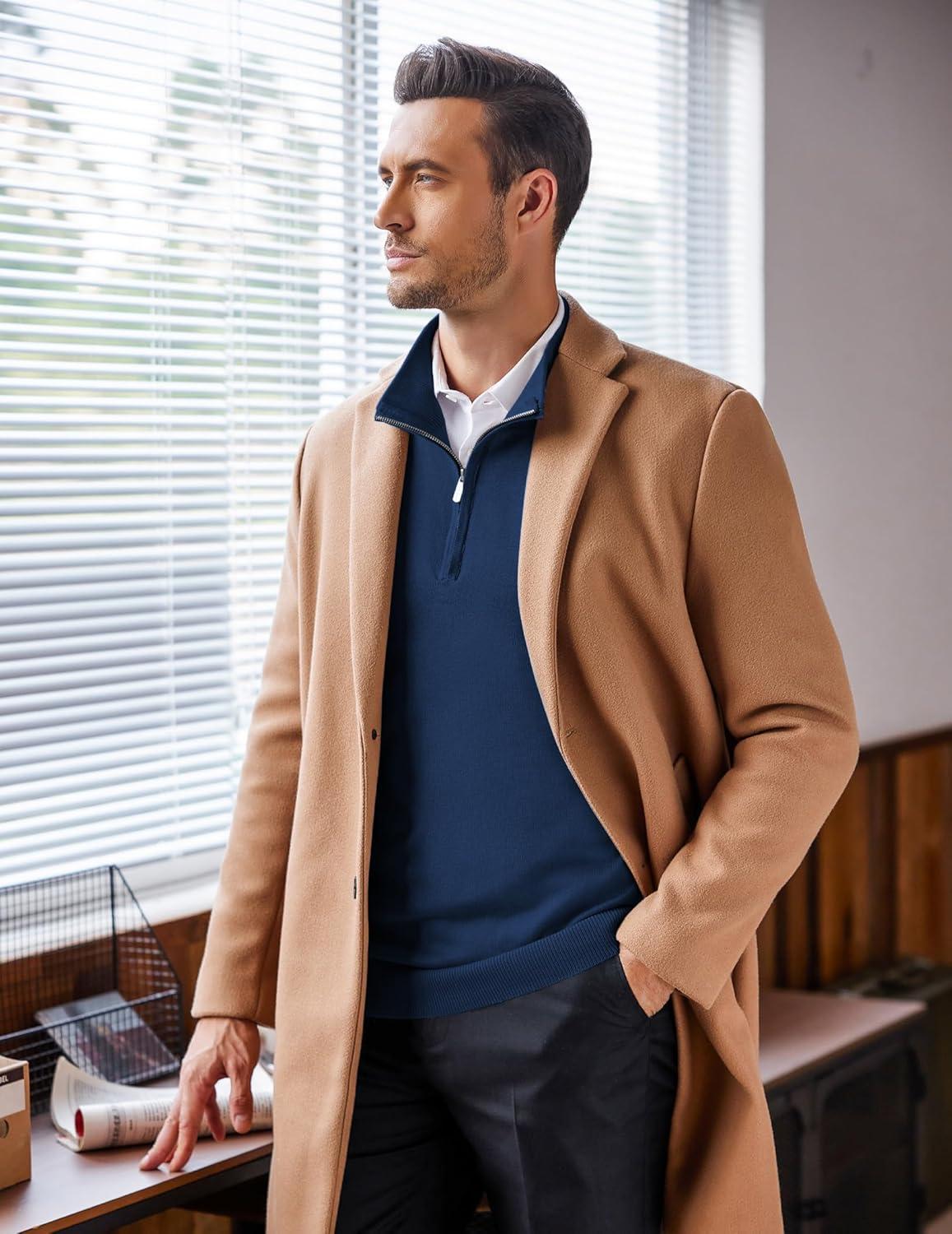 COOFANDY Men’s Quarter Zip Up Sweaters Slim Fit Lightweight Mock Neck Pullover Casual Polo Sweaters(Deep Blue)