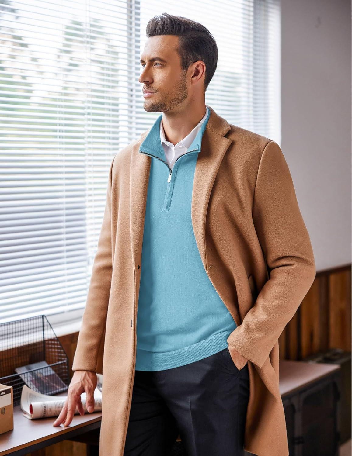 COOFANDY Men’s Quarter Zip Up Sweaters Slim Fit Lightweight Mock Neck Pullover Casual Polo Sweaters(Sky Blue)
