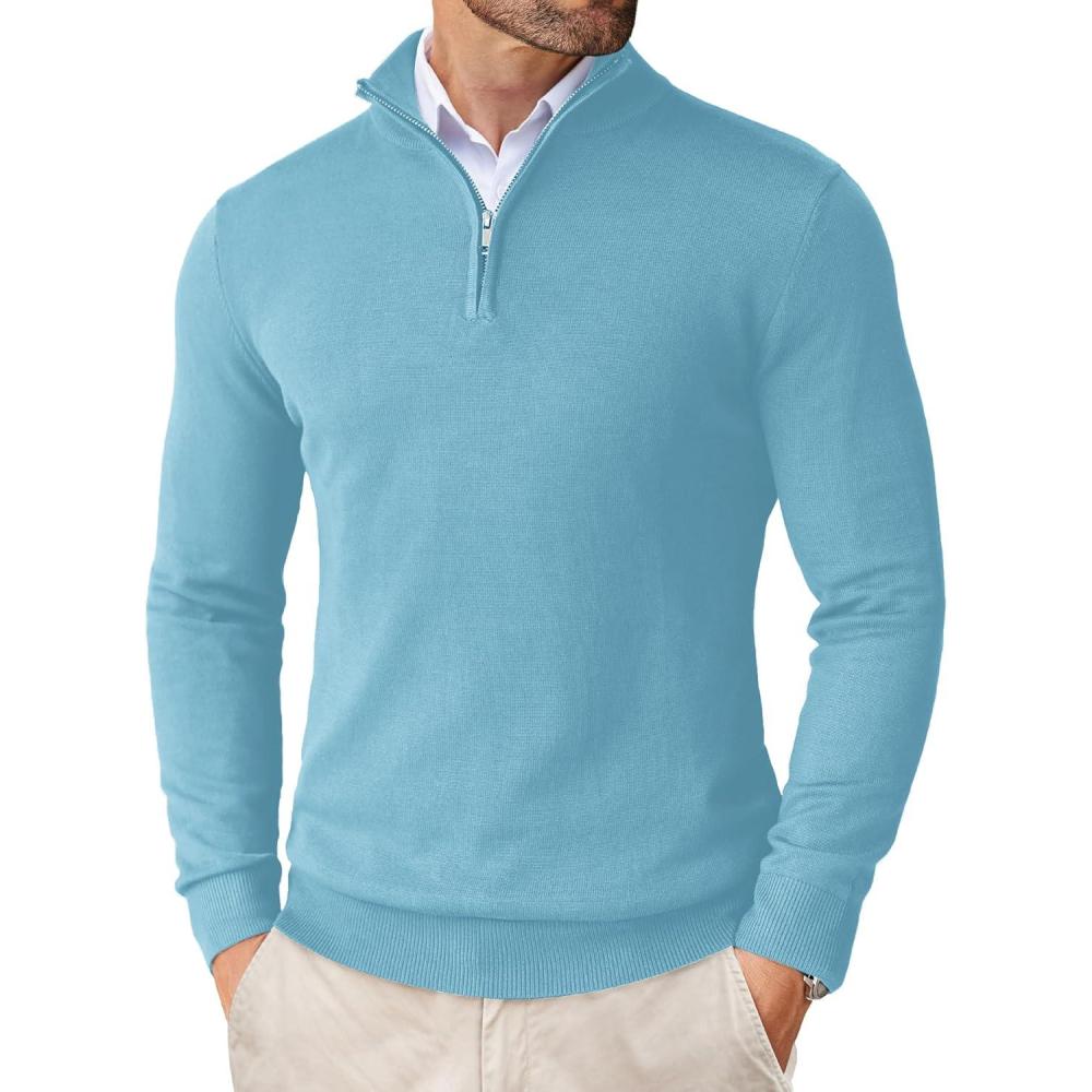 COOFANDY Men's Quarter Zip Up Sweaters Slim Fit Lightweight Mock Neck Pullover Casual Polo Sweaters(Sky Blue)