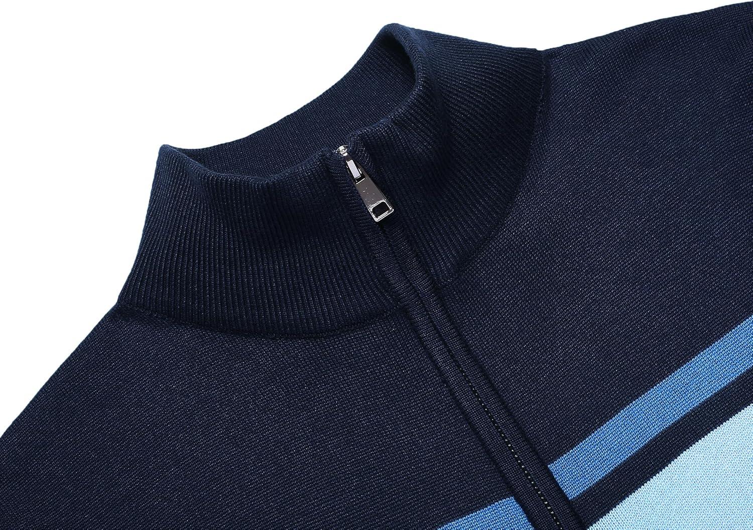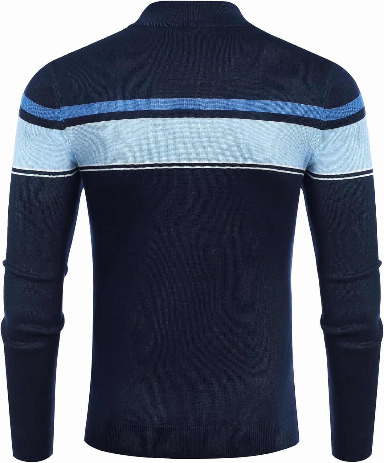 COOFANDY Men’s Quarter Zip Up Sweaters Slim Fit Lightweight Mock Neck Pullover Casual Polo Sweaters(Stripe-blue)