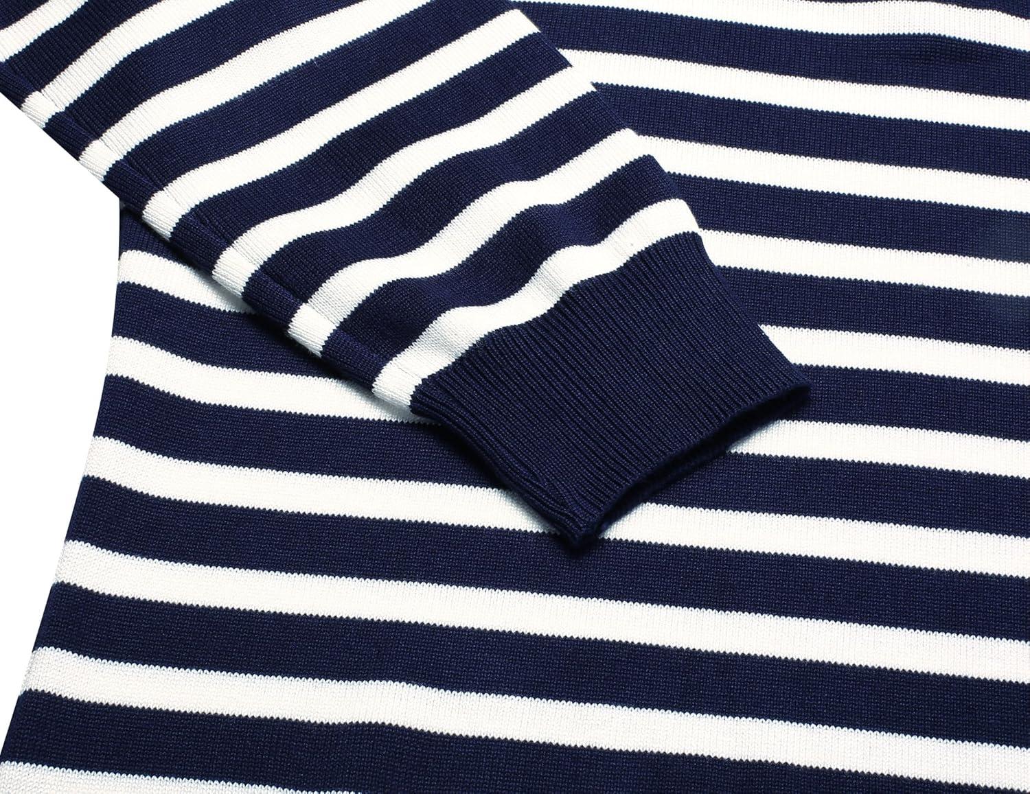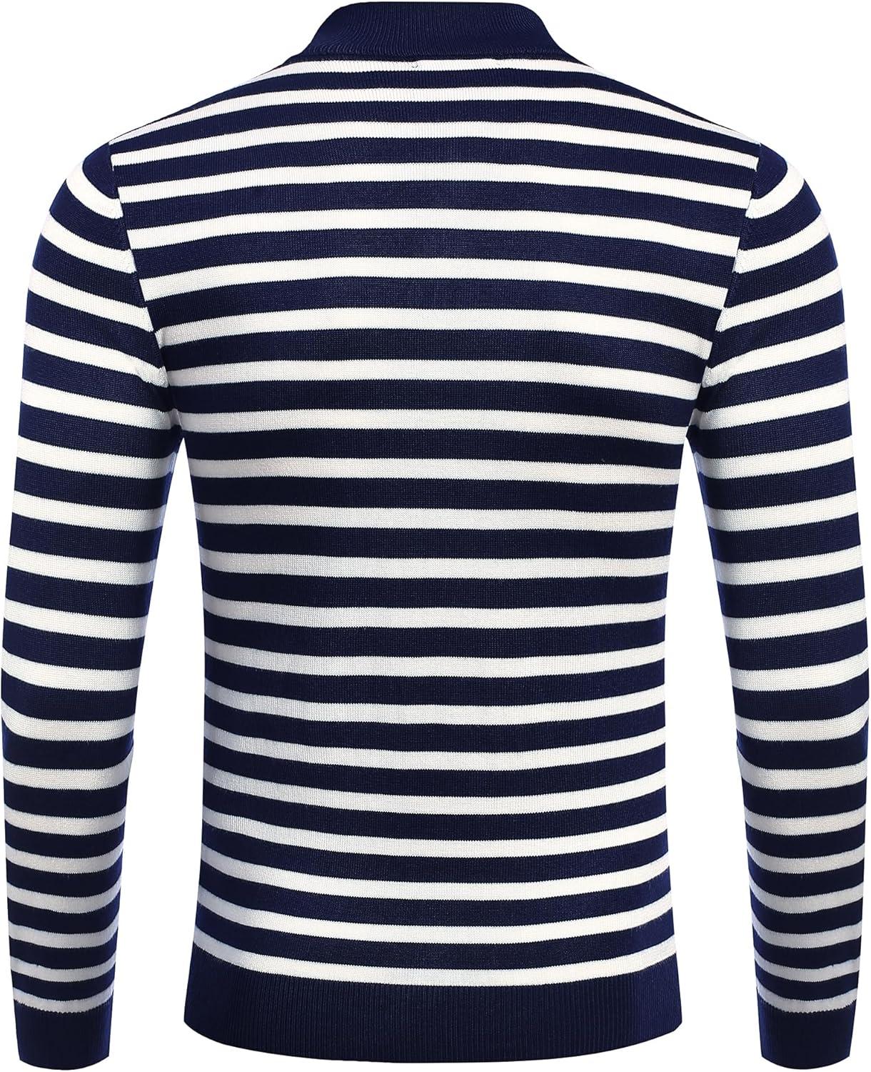 COOFANDY Men's Quarter Zip Up Sweaters Slim Fit Lightweight Mock Neck Pullover Casual Polo Sweaters(Stripe-navy Blue White)