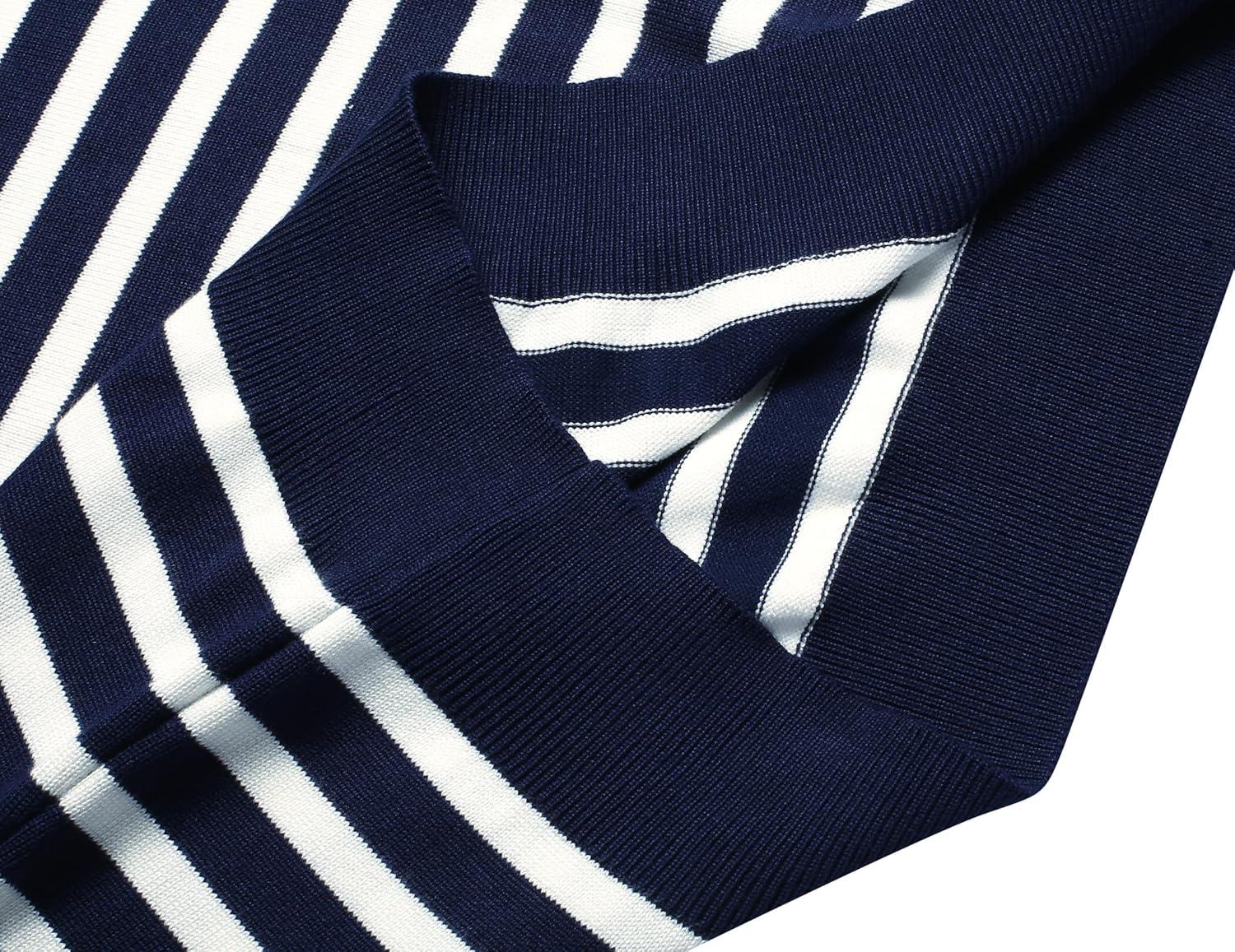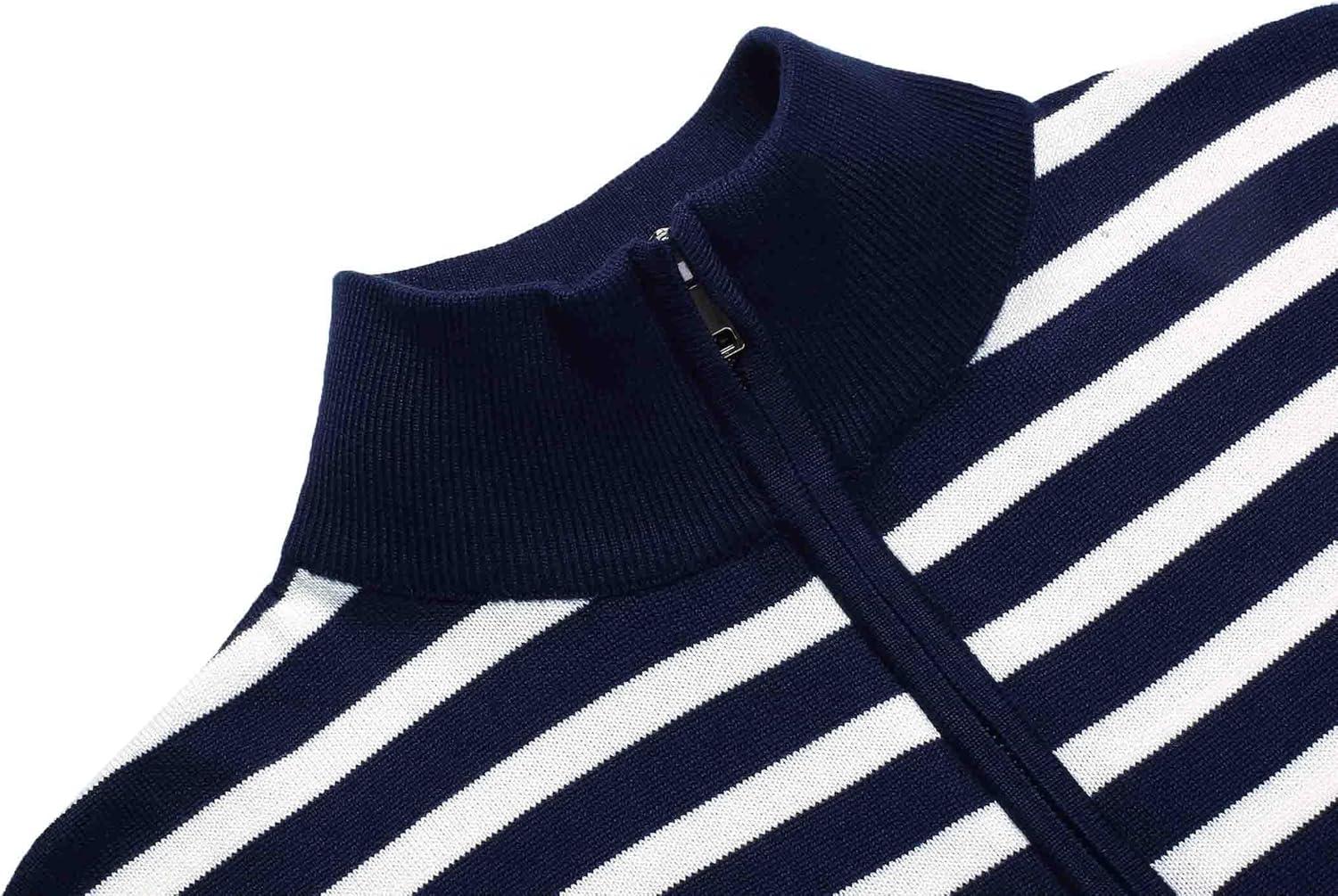 COOFANDY Men’s Quarter Zip Up Sweaters Slim Fit Lightweight Mock Neck Pullover Casual Polo Sweaters(Stripe-navy Blue White)