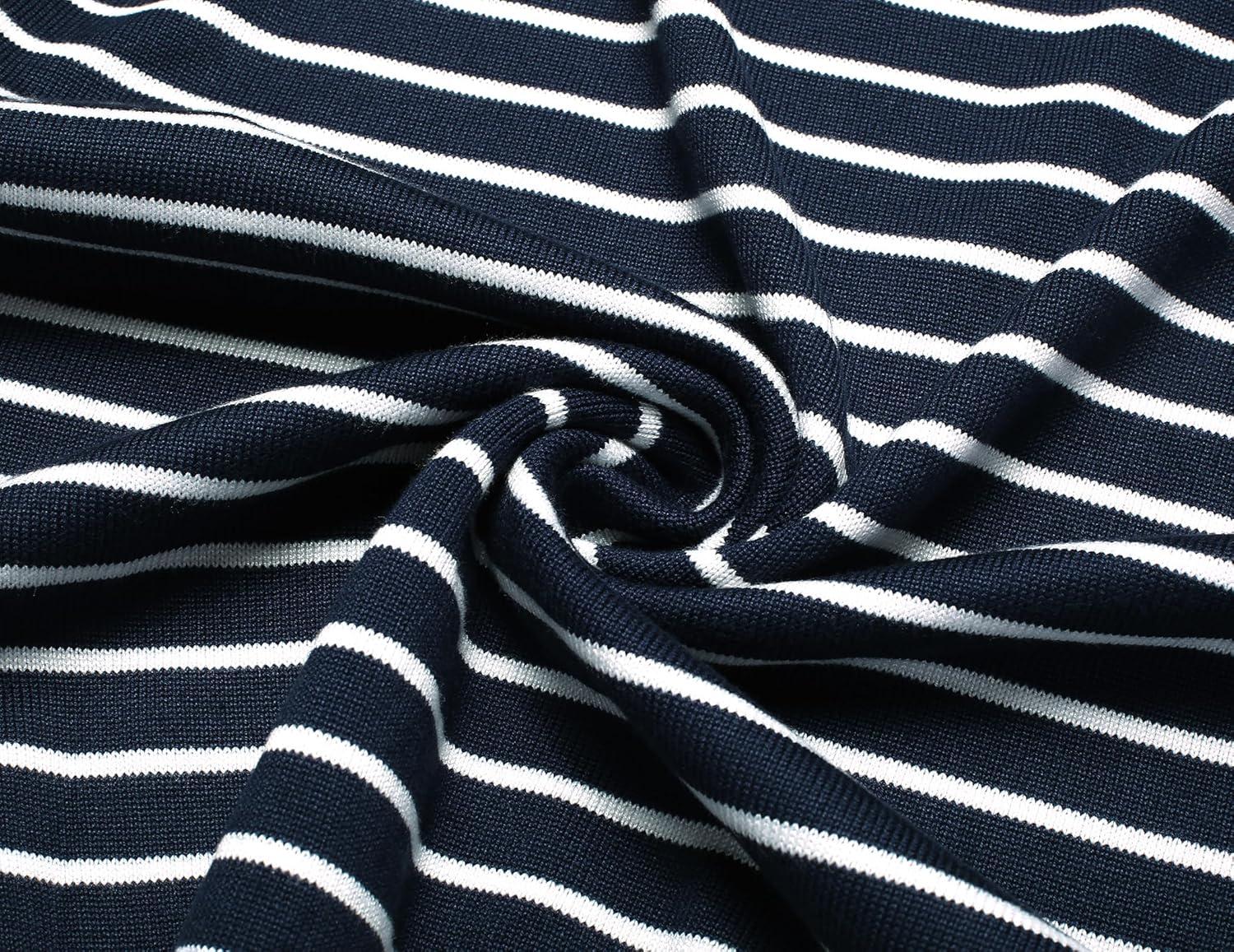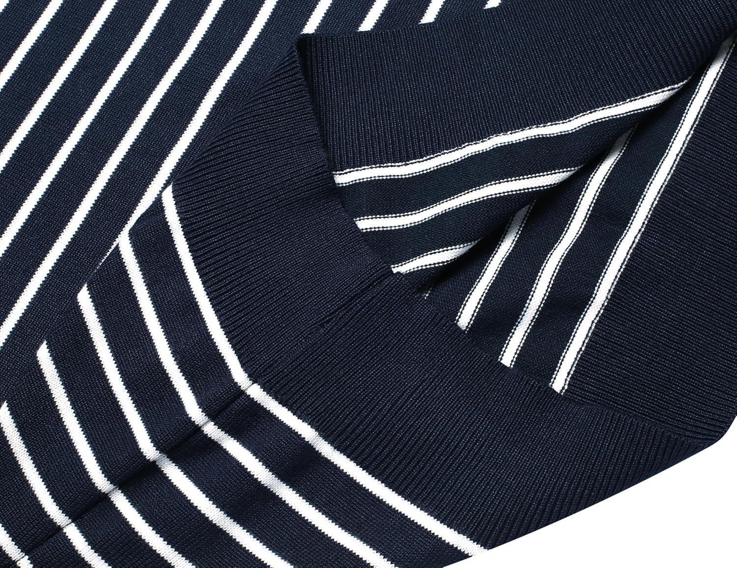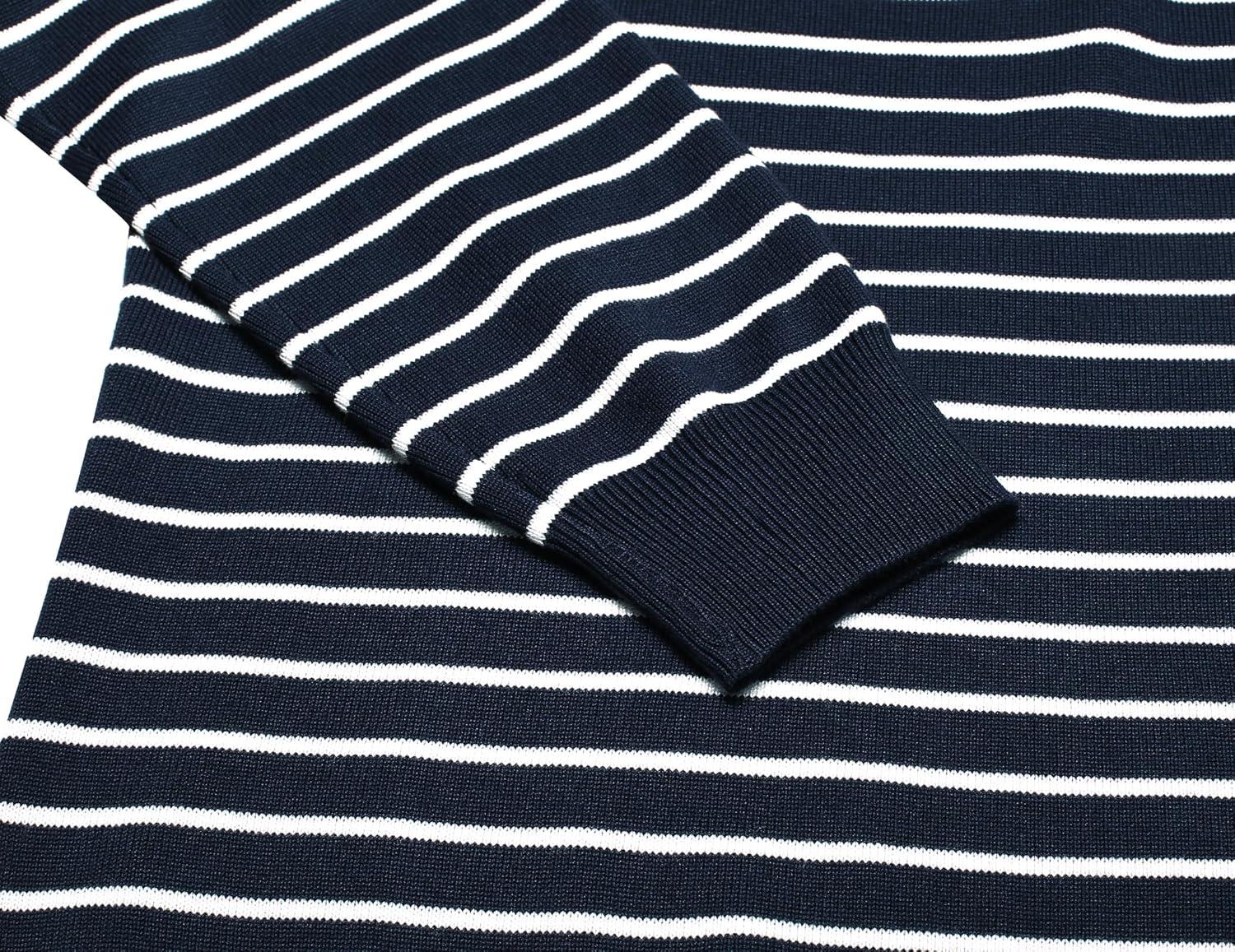 COOFANDY Men's Quarter Zip Up Sweaters Slim Fit Lightweight Mock Neck Pullover Casual Polo Sweaters(Stripe-white Navy)