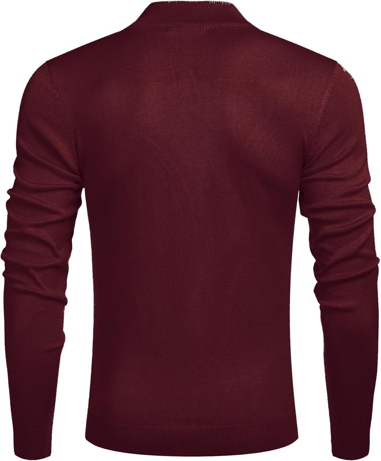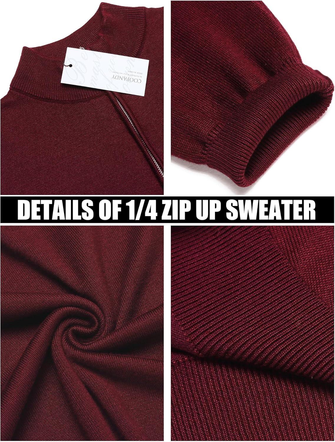 COOFANDY Men’s Quarter Zip Up Sweaters Slim Fit Lightweight Mock Neck Pullover Casual Polo Sweaters(Wine Red)