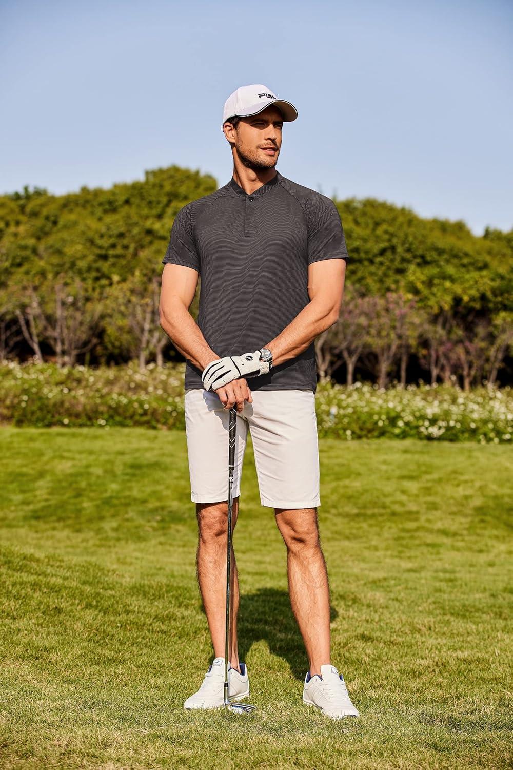 COOFANDY Men's Quick Dry Golf Polo Shirts Short Sleeve Henley Shirt Active Athletic Collarless Sports T Shirts(Dark Grey)