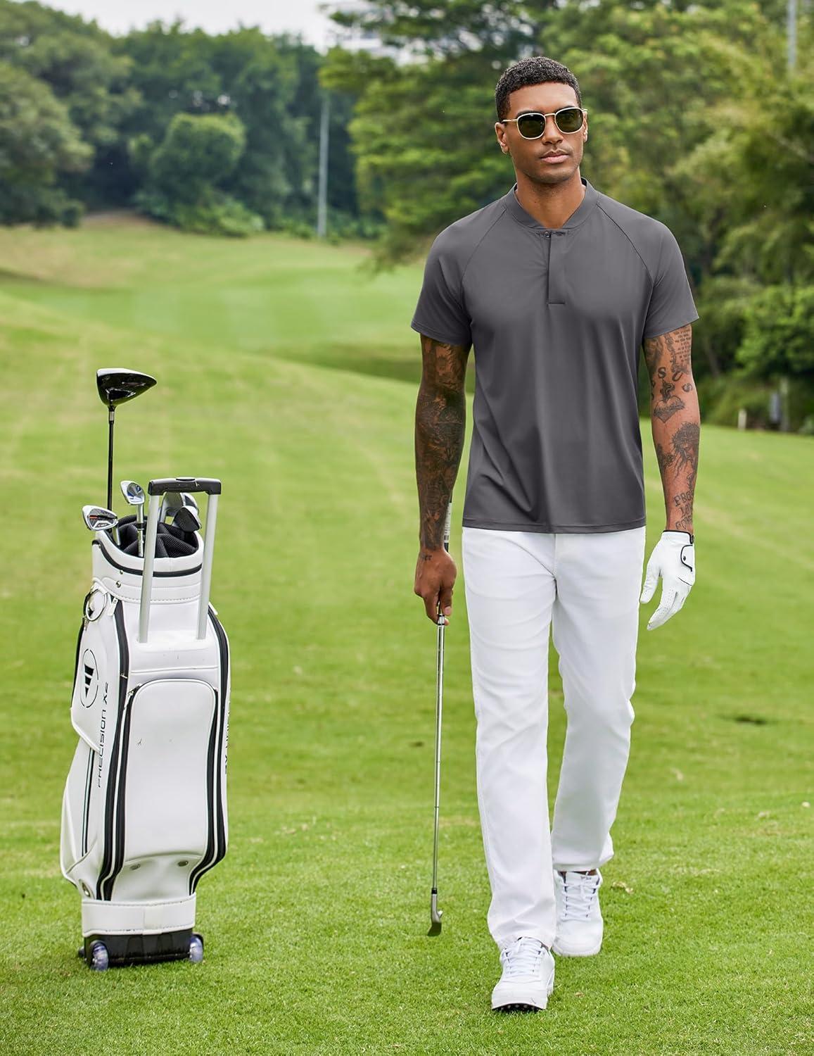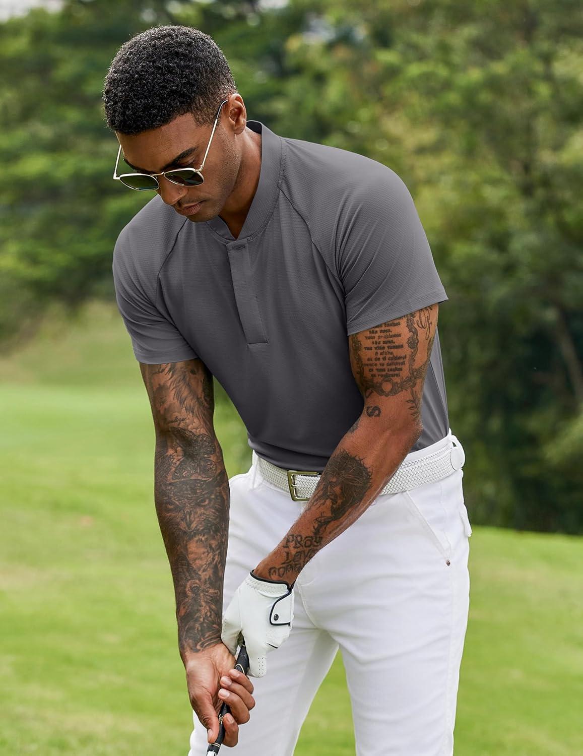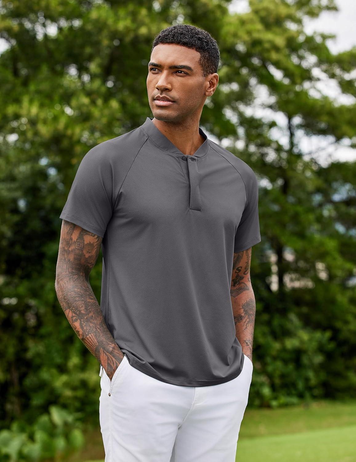 COOFANDY Men's Quick Dry Golf Polo Shirts Short Sleeve Henley Shirt Active Athletic Collarless Sports T Shirts(Dark Grey1)