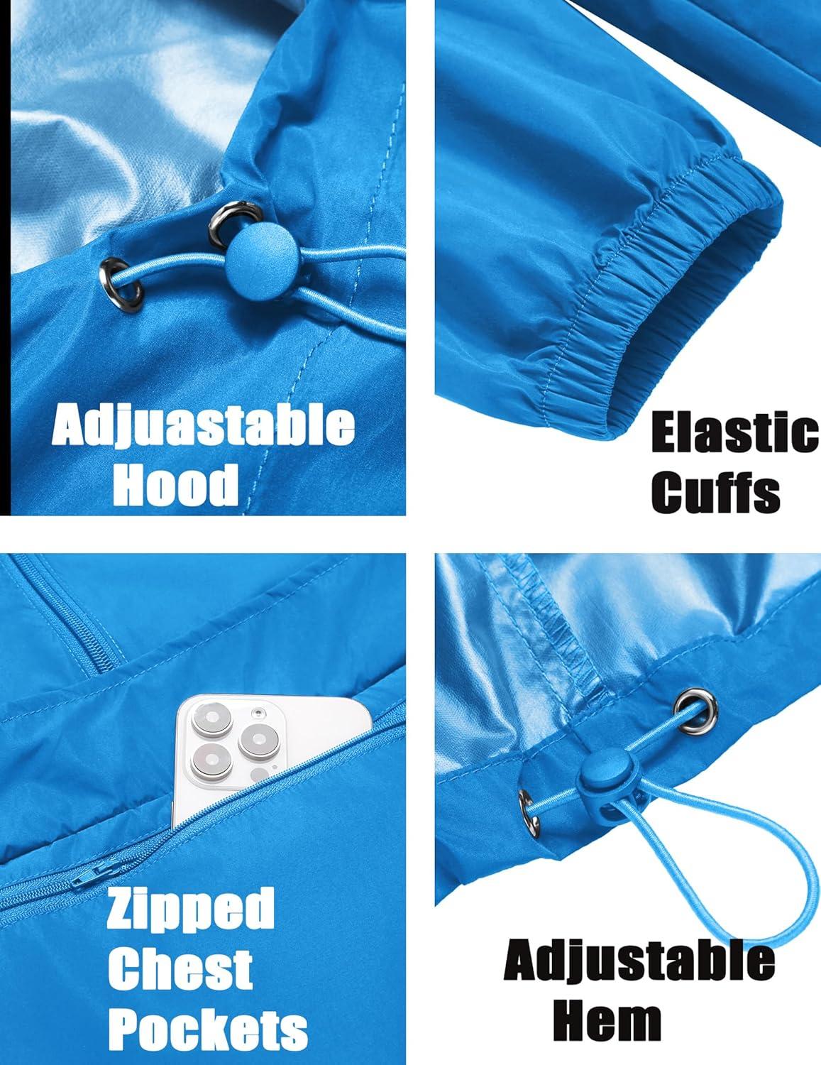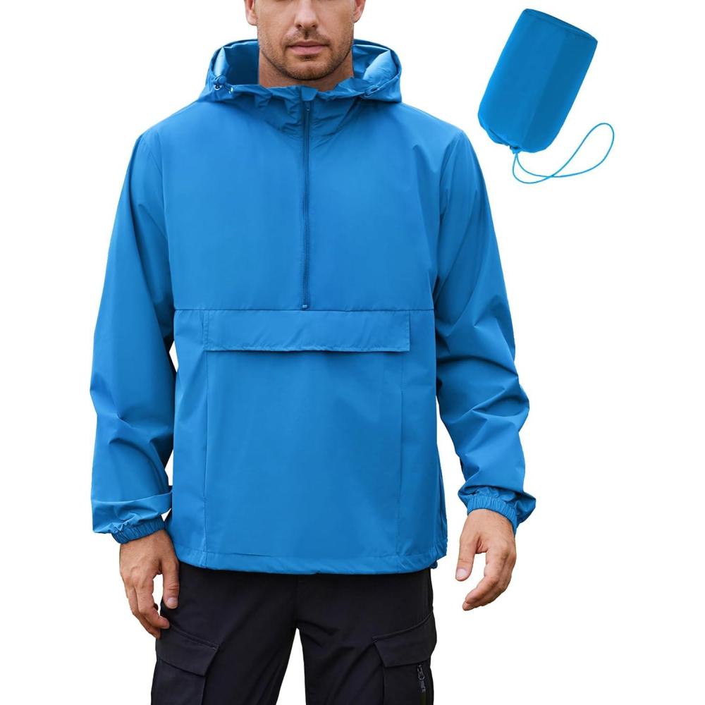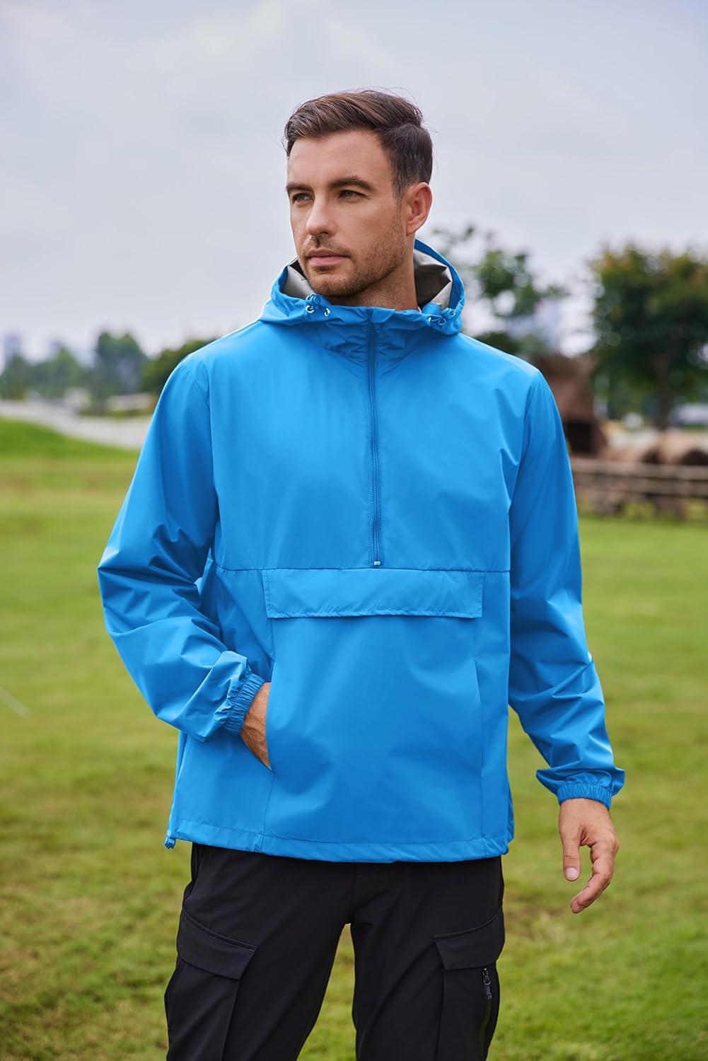 COOFANDY Men's Rain Jacket Waterproof Lightweight Packable Raincoat Pullover Windbreaker With Hood For Hiking Running(Blue)