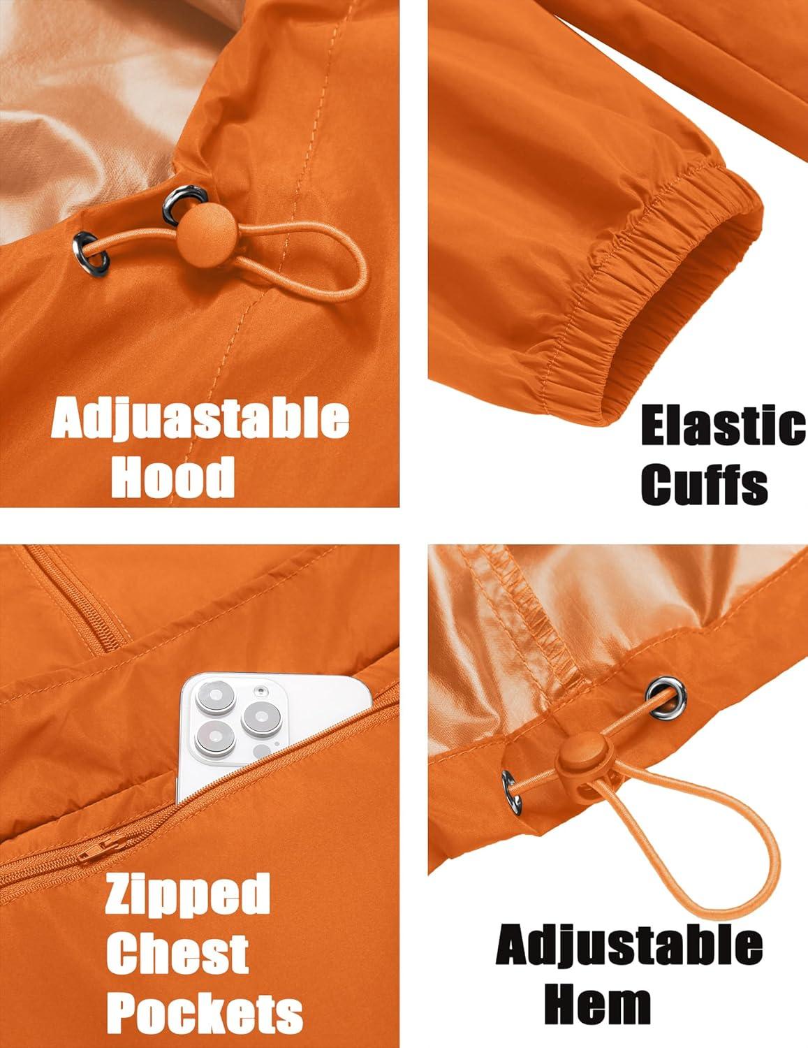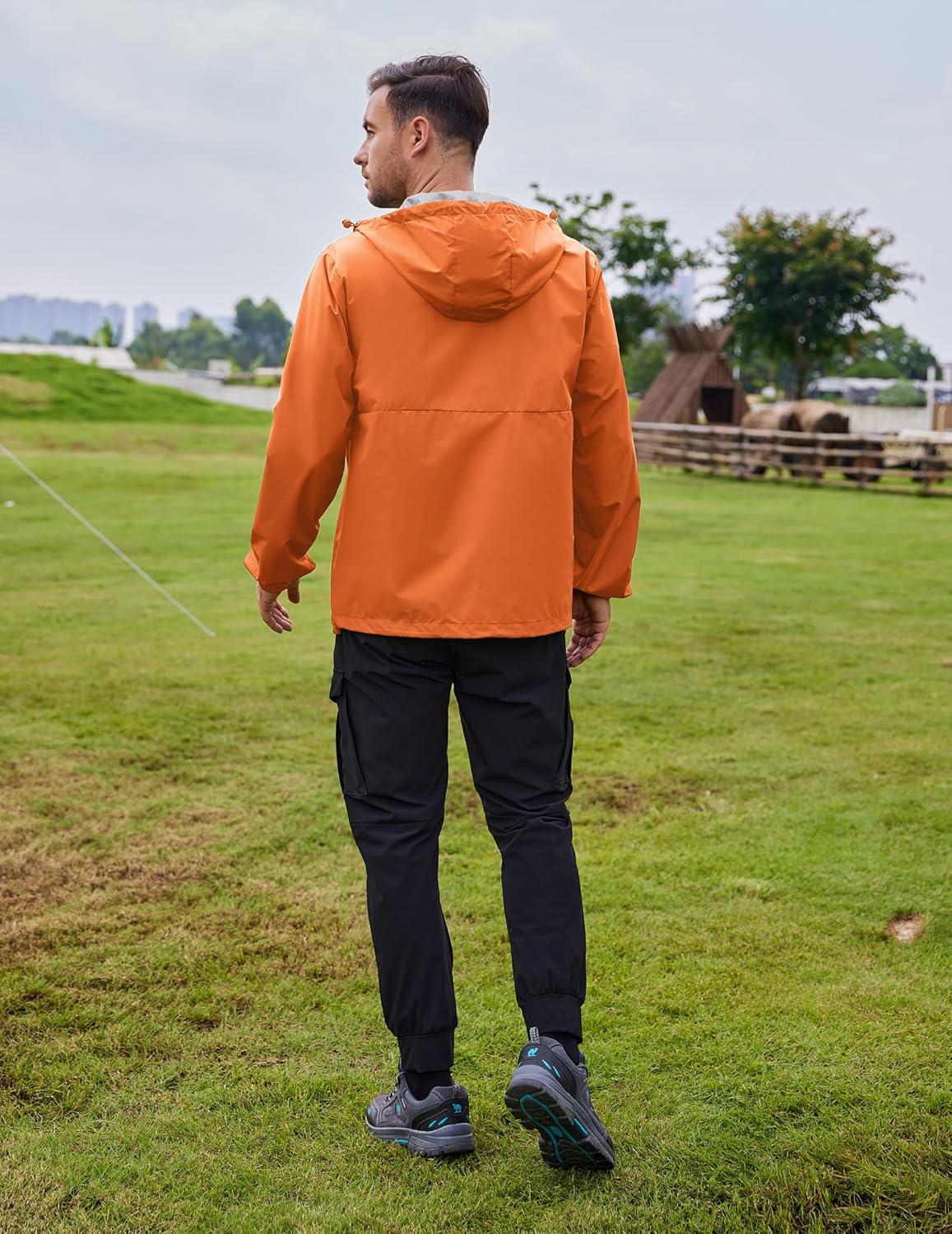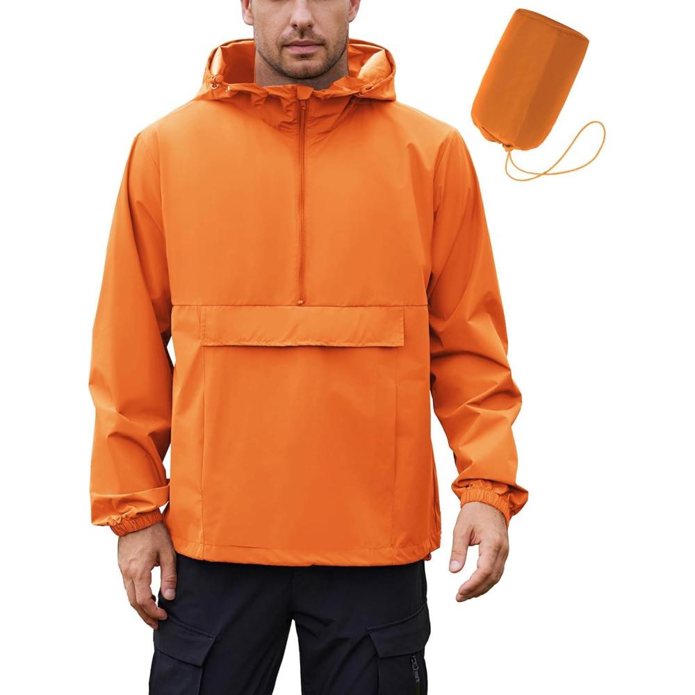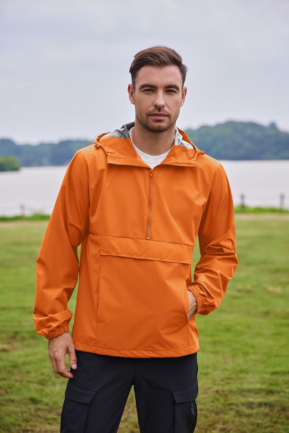 COOFANDY Men's Rain Jacket Waterproof Lightweight Packable Raincoat Pullover Windbreaker With Hood For Hiking Running(Orange)