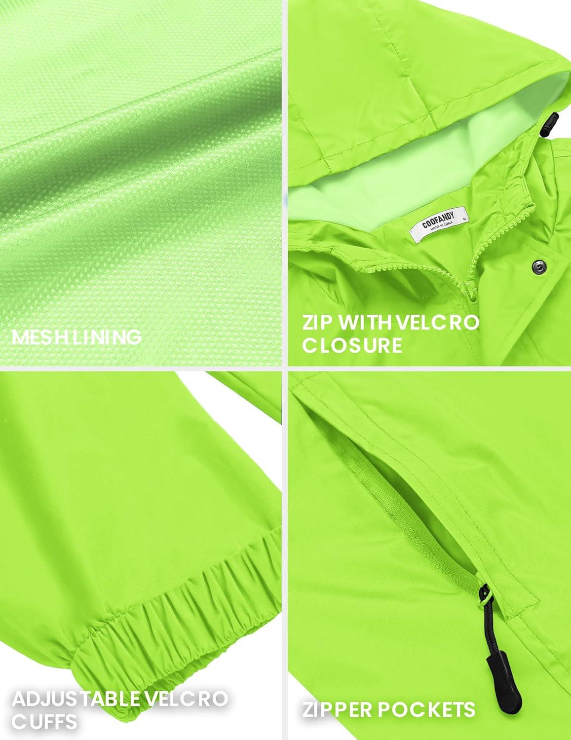 imageCOOFANDY Mens Rain Jacket Waterproof With Hood Lightweight Packable Shell Raincoat Windbreaker For Cycling Golf TravelLime Green