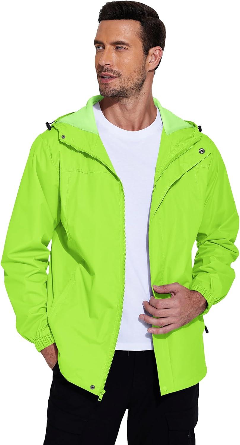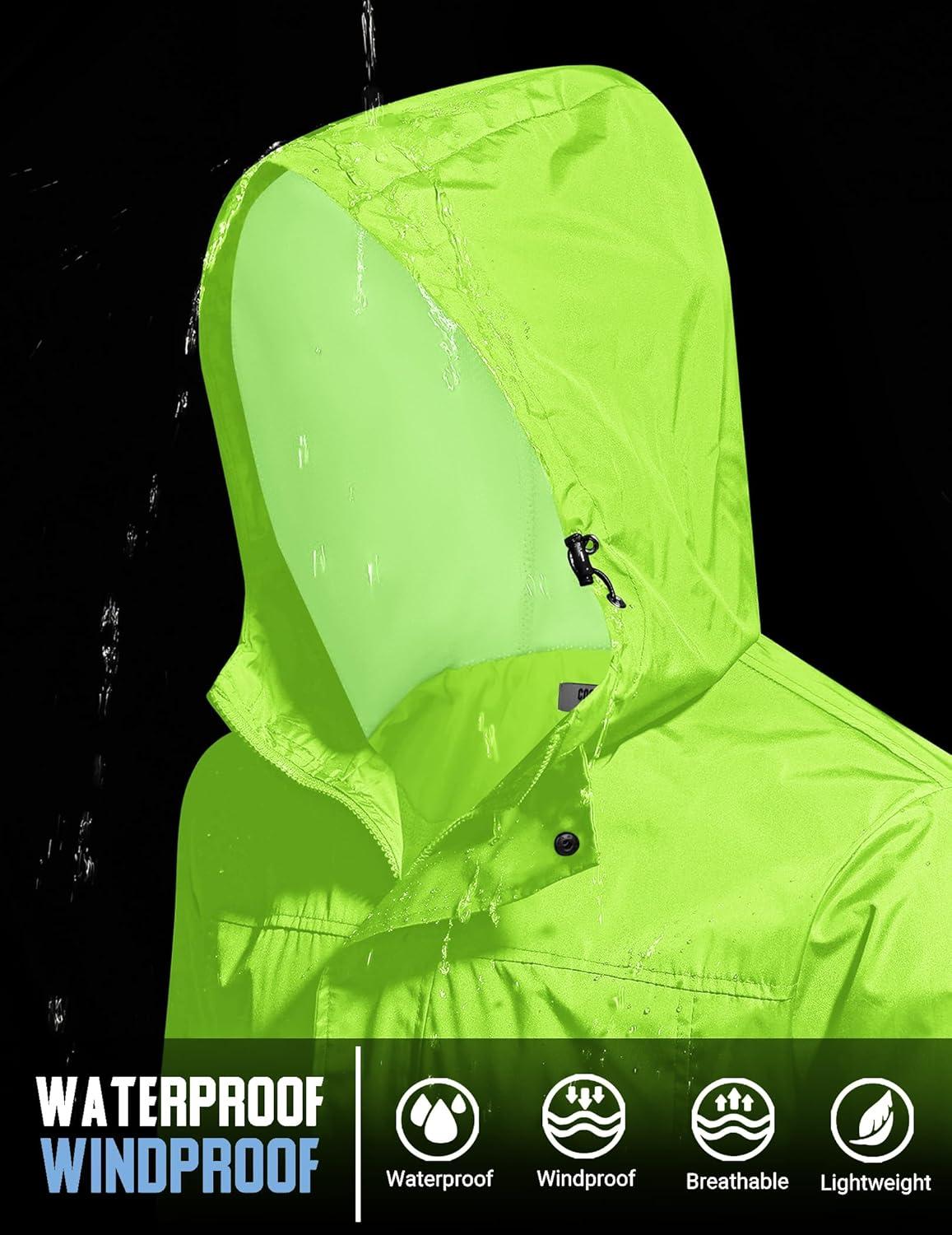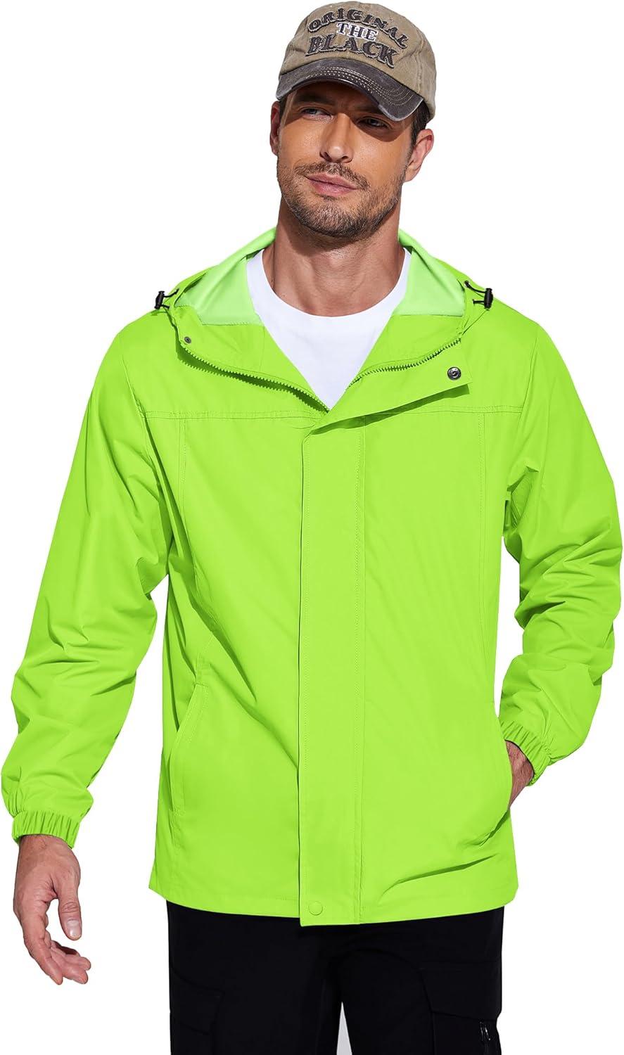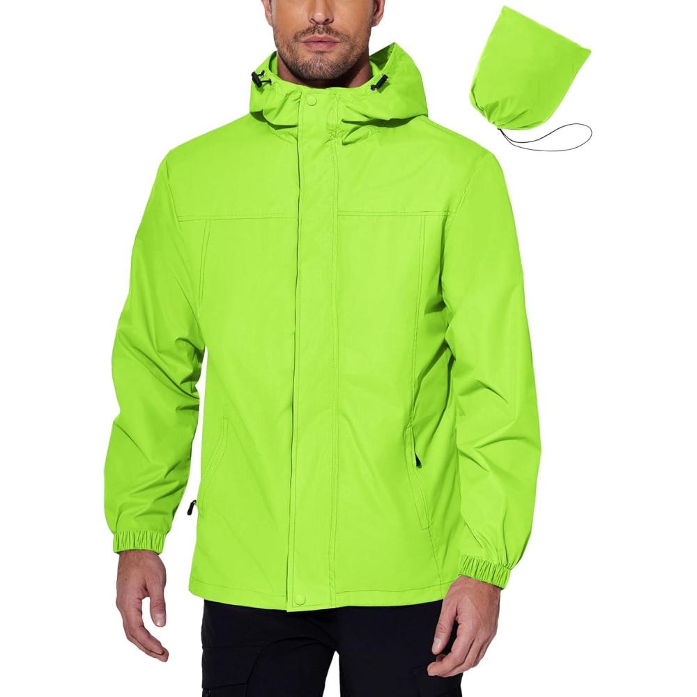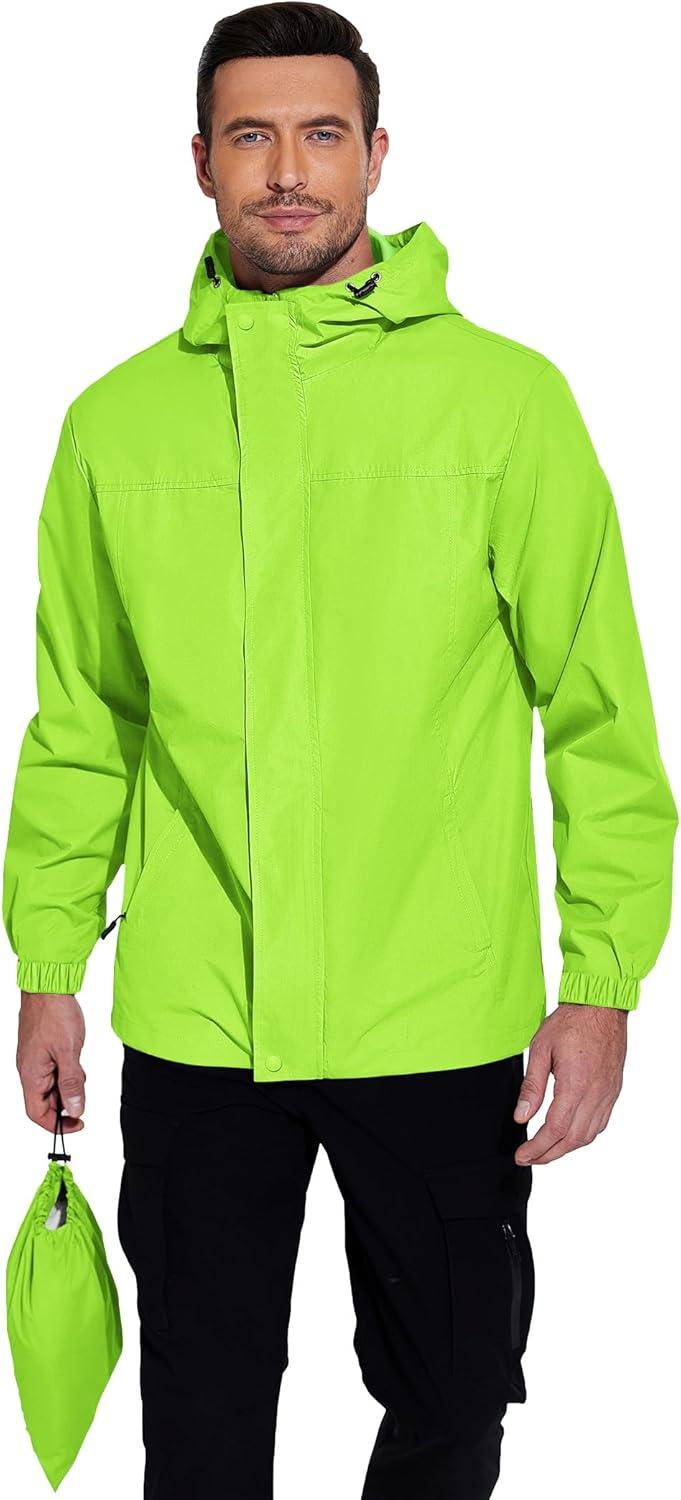 COOFANDY Men’s Rain Jacket Waterproof With Hood Lightweight Packable Shell Raincoat Windbreaker For Cycling Golf Travel(Lime Green)