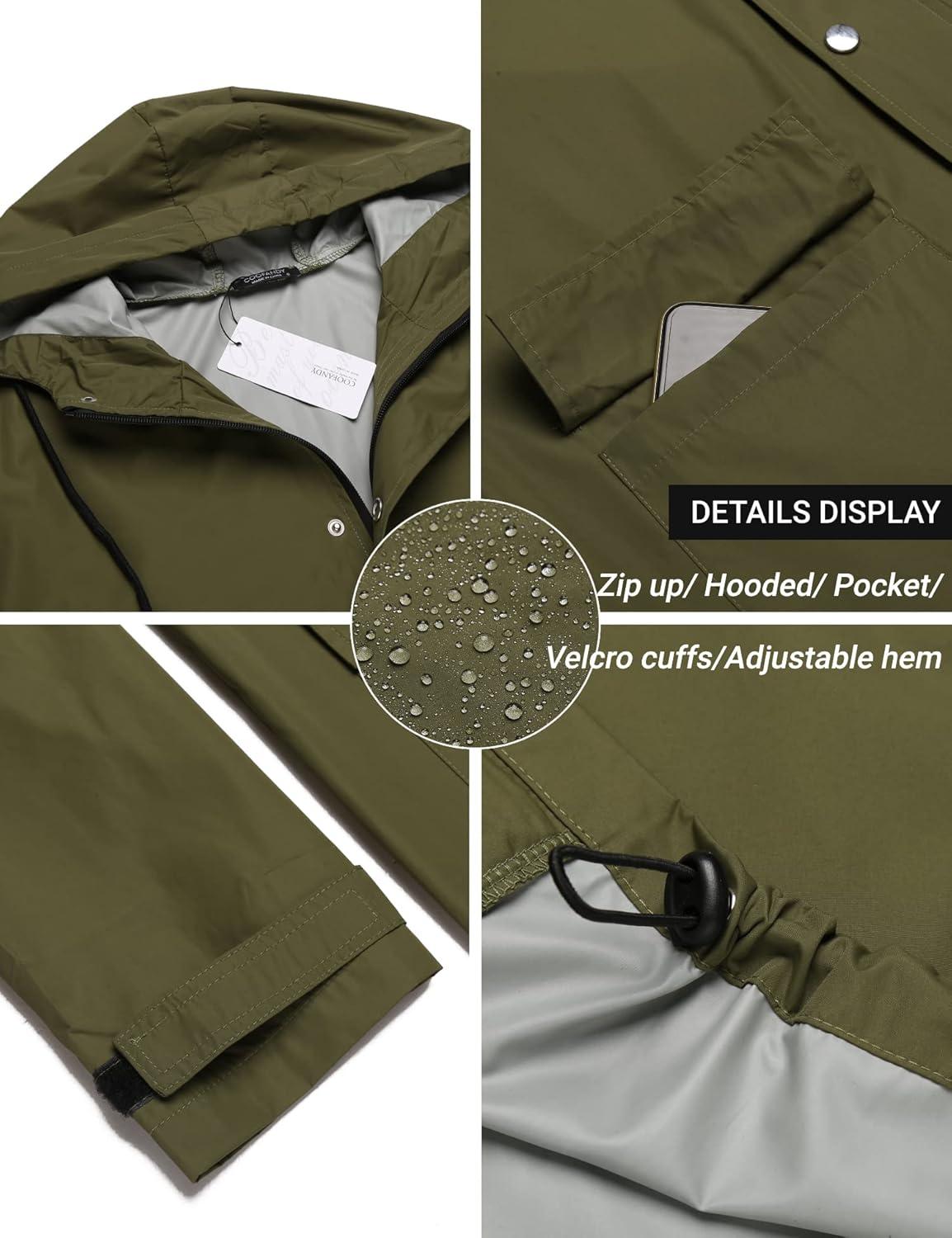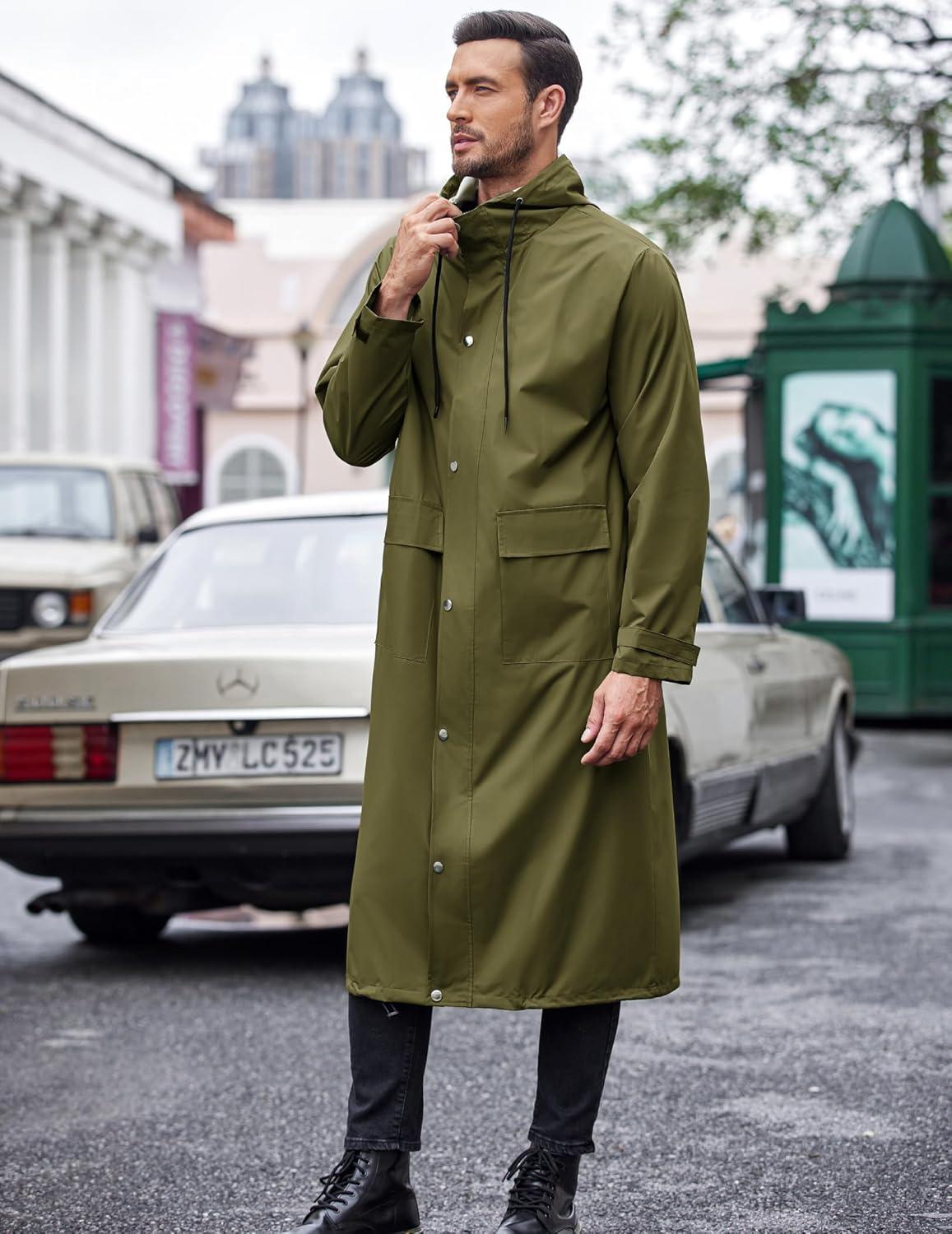 COOFANDY Men's Rain Jacket with Hood Waterproof Lightweight Active Long Raincoat(Army Green)