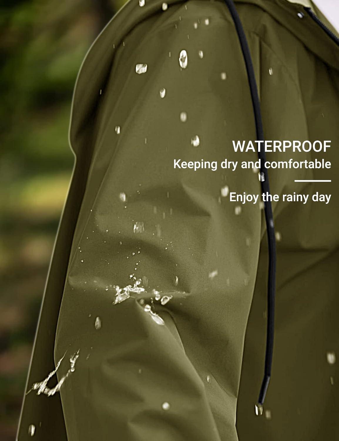 COOFANDY Men’s Rain Jacket with Hood Waterproof Lightweight Active Long Raincoat(Army Green)