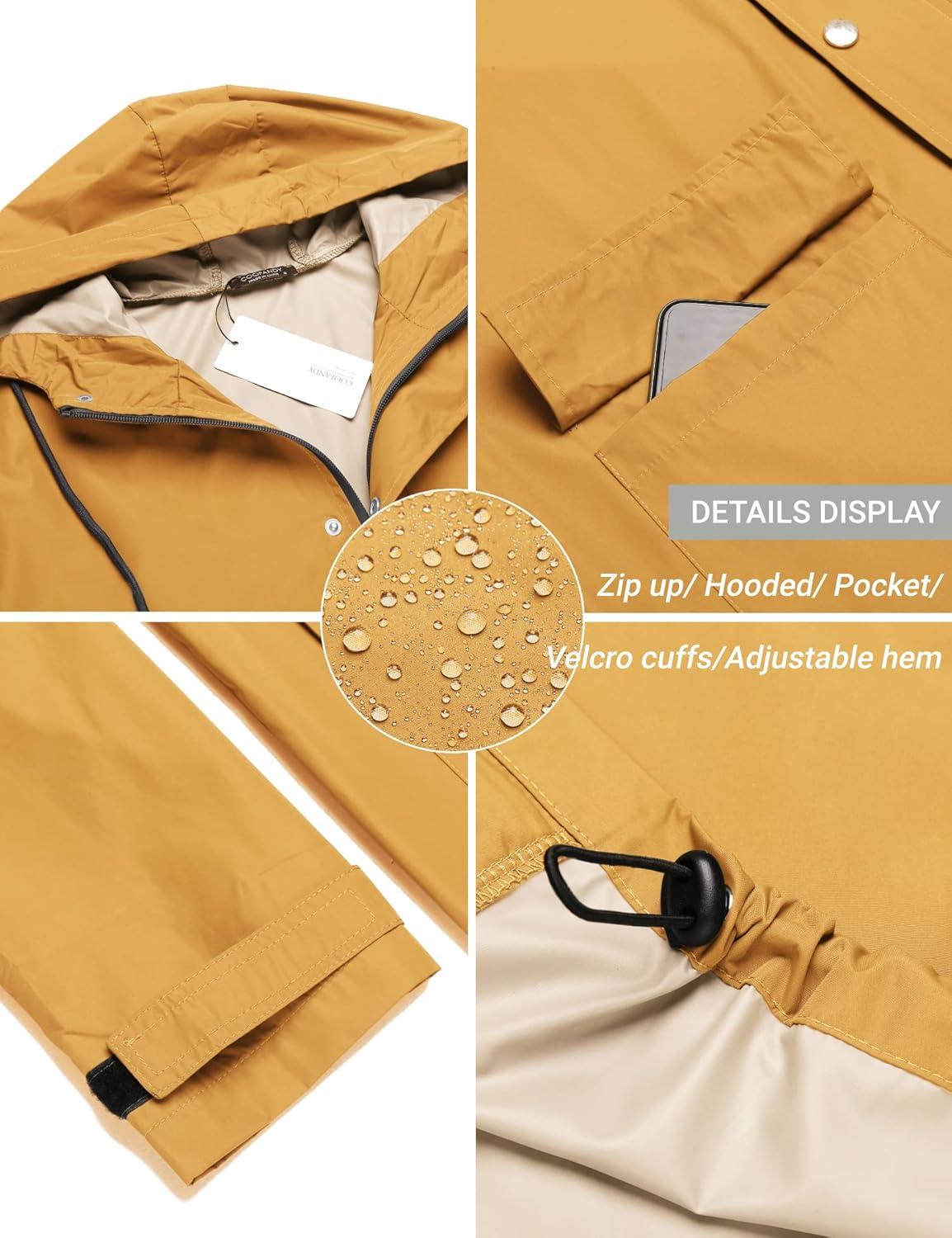 COOFANDY Men's Rain Jacket with Hood Waterproof Lightweight Active Long Raincoat(Yellow)