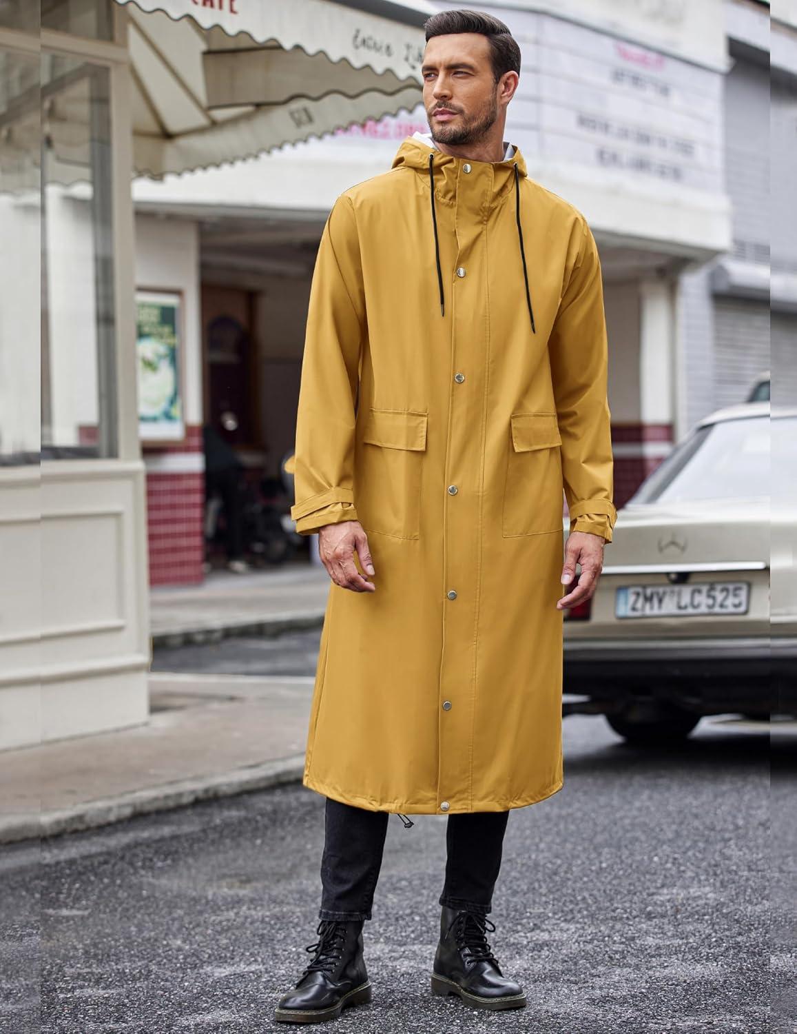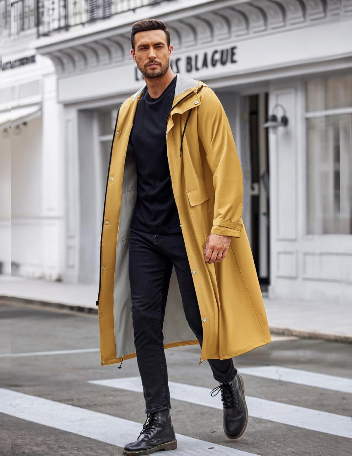 COOFANDY Men’s Rain Jacket with Hood Waterproof Lightweight Active Long Raincoat(Yellow)