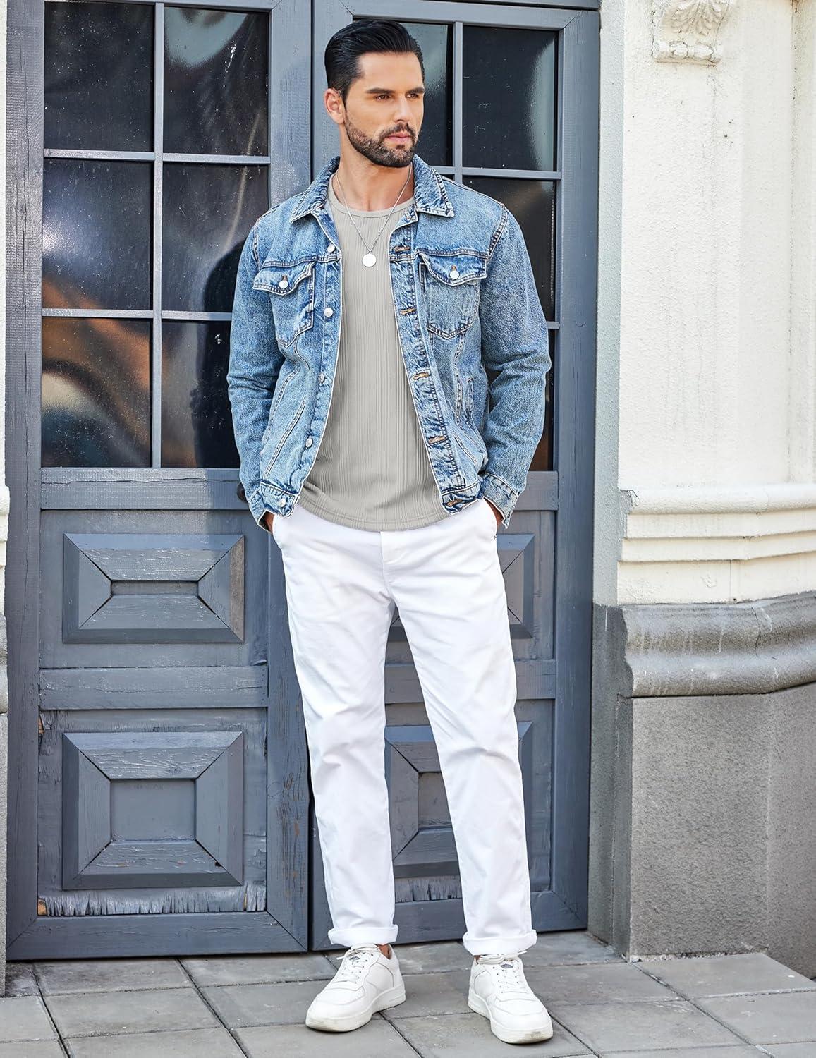 COOFANDY Mens Ribbed Knit Tank Tops Casual Sleeveless Muscle Shirts Basic Undershirts Tank(Light Grey)