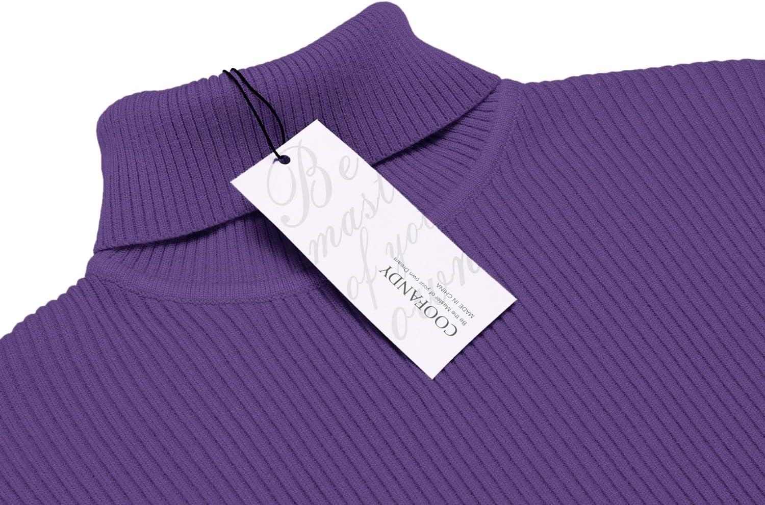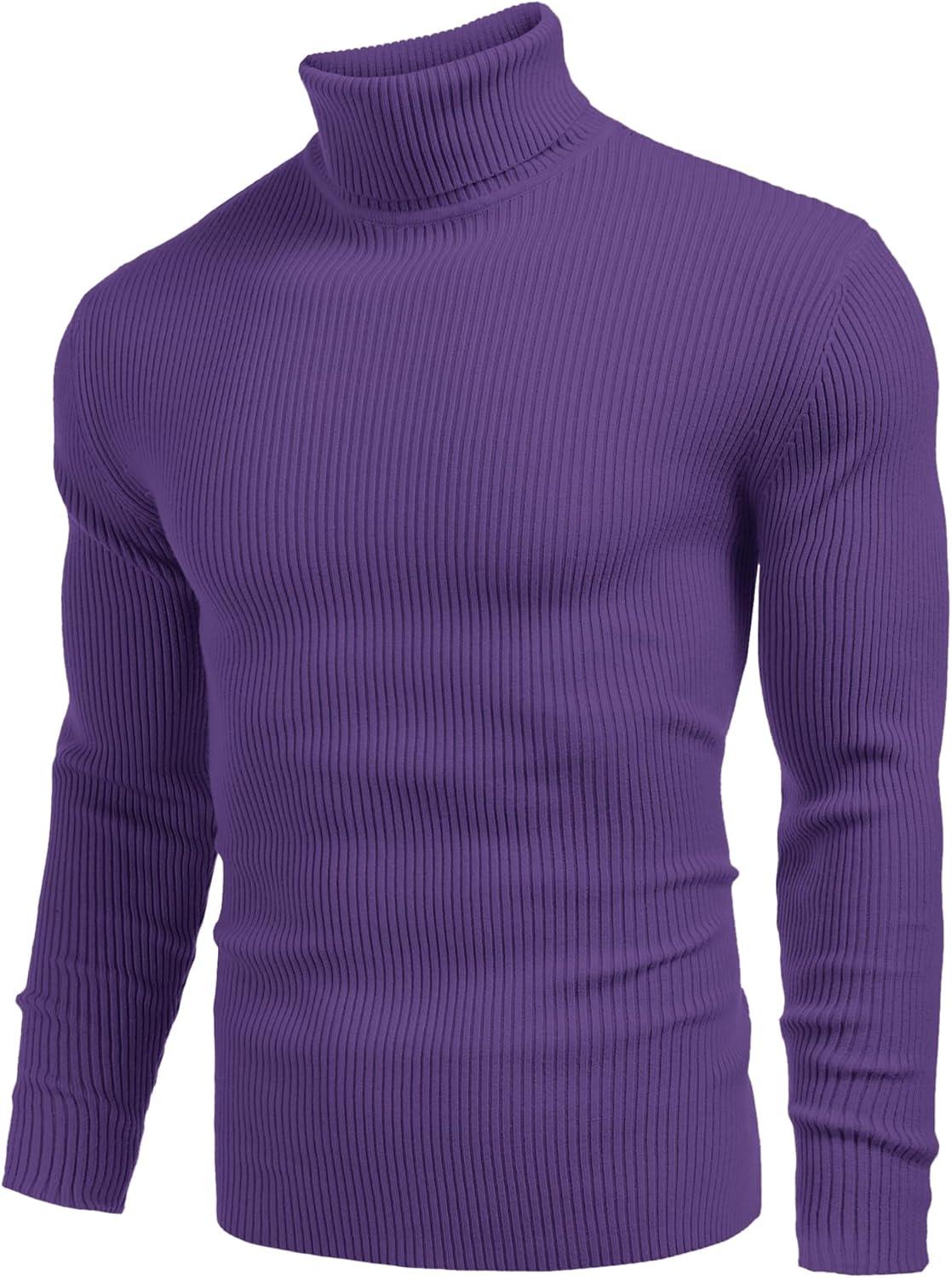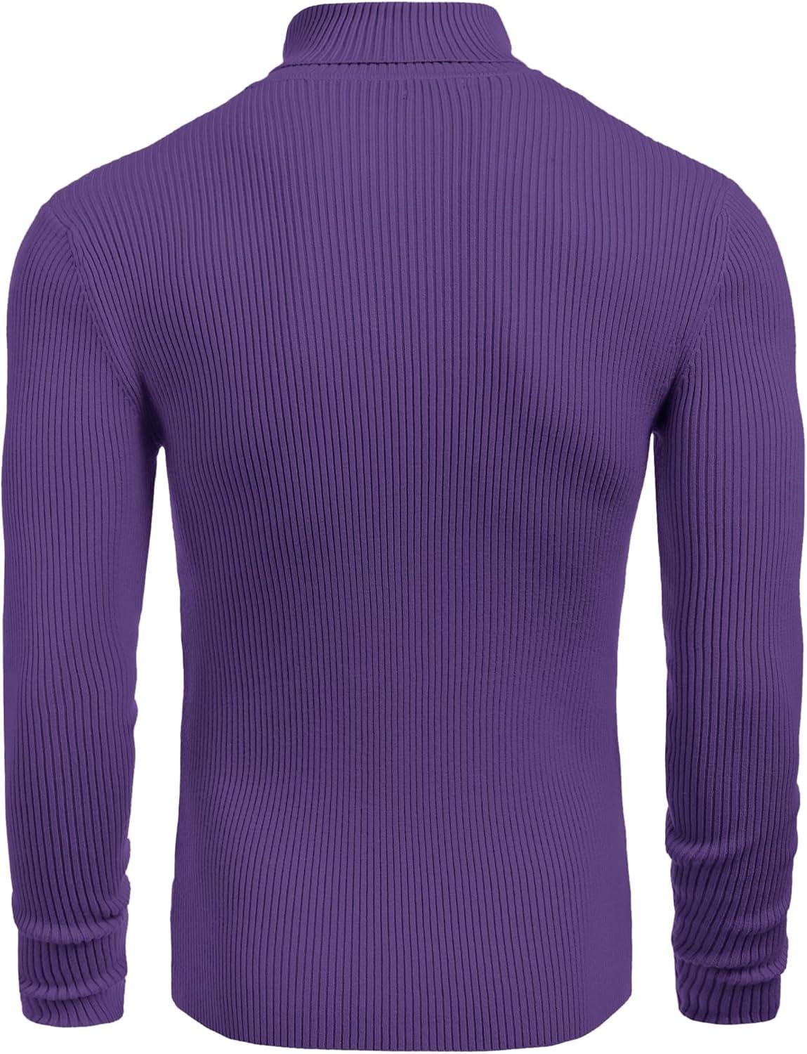 COOFANDY Mens Ribbed Slim Fit Knitted Pullover Casual Turtleneck Sweater(Dark Purple)
