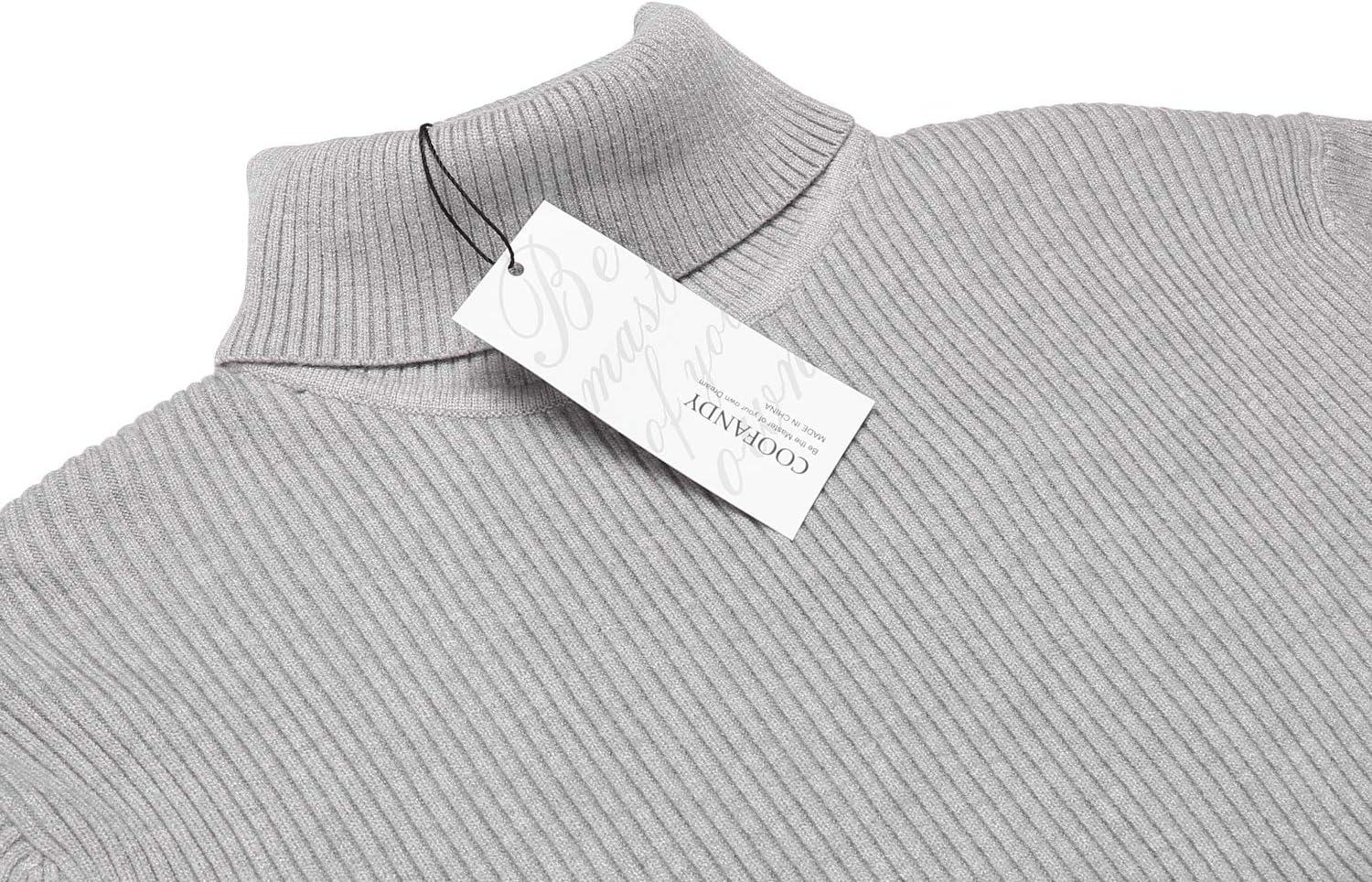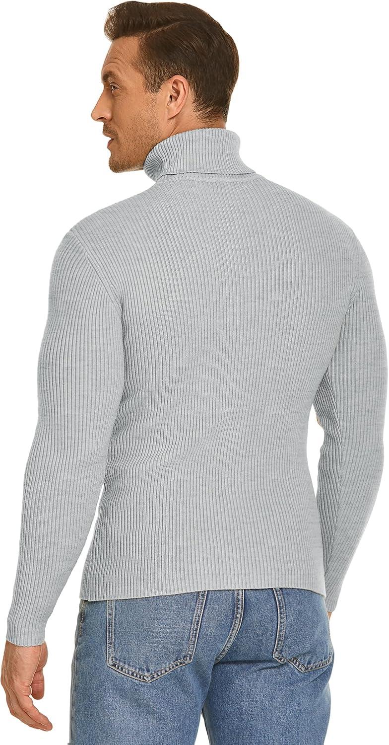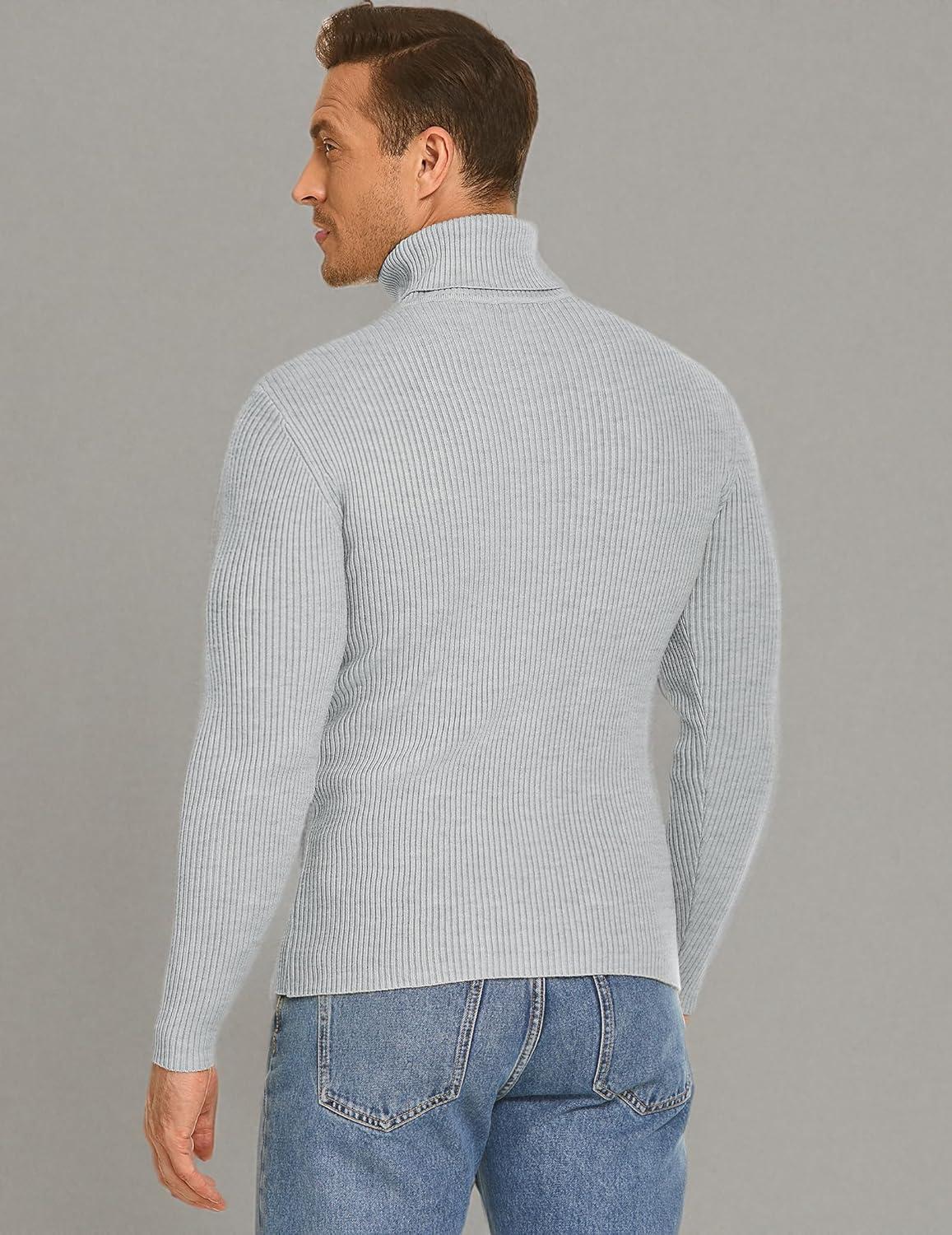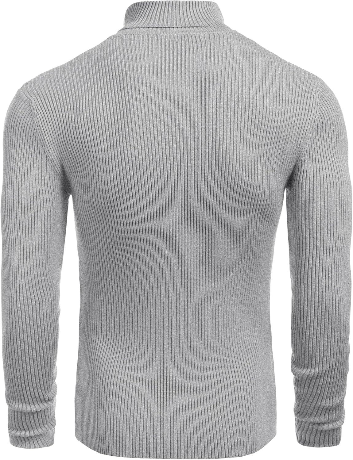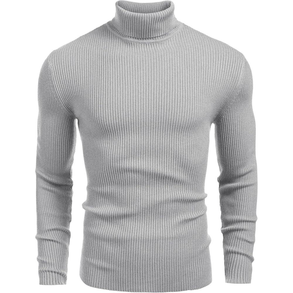 COOFANDY Mens Ribbed Slim Fit Knitted Pullover Casual Turtleneck Sweater(Grey)