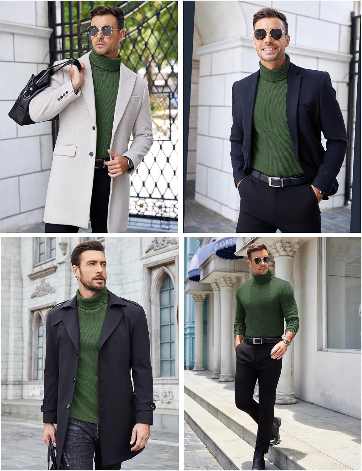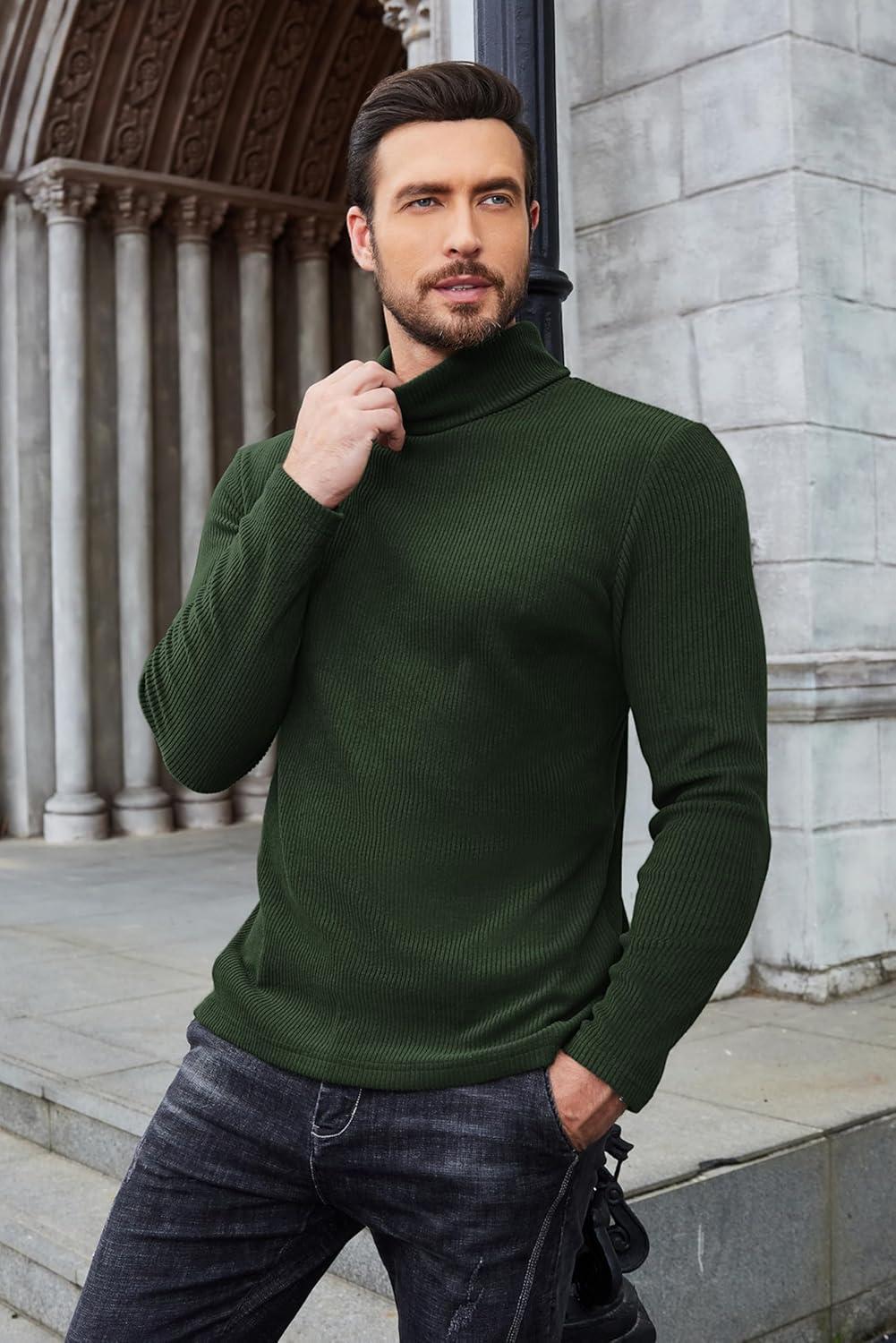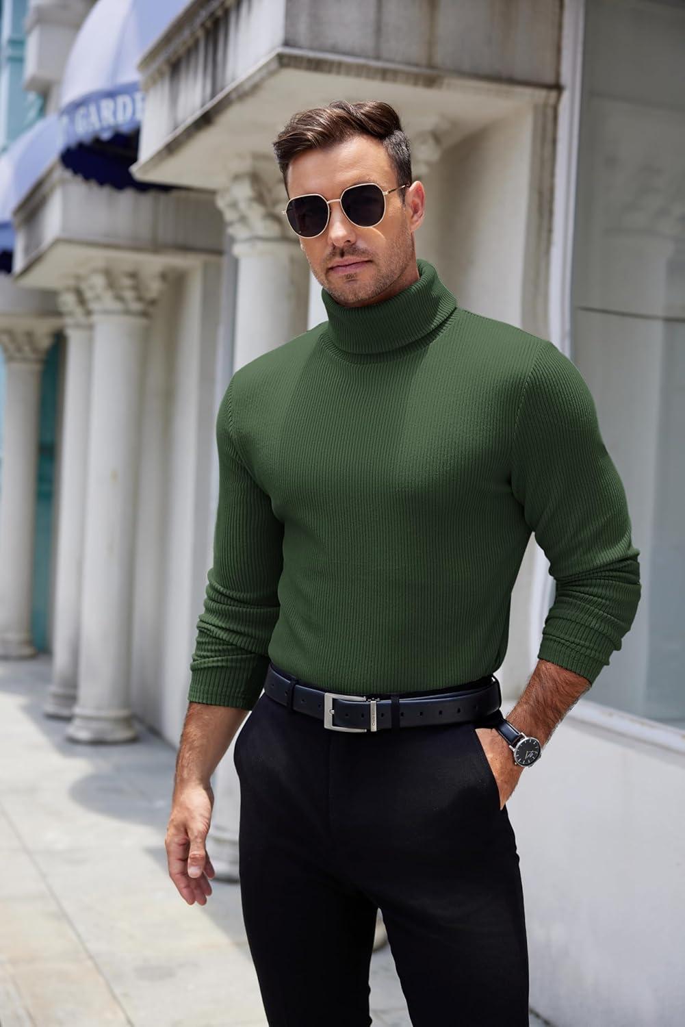 COOFANDY Men's Ribbed Turtleneck Sweater Casual Basic Long Sleeve Knitted Pullover Sweater(Army Green)