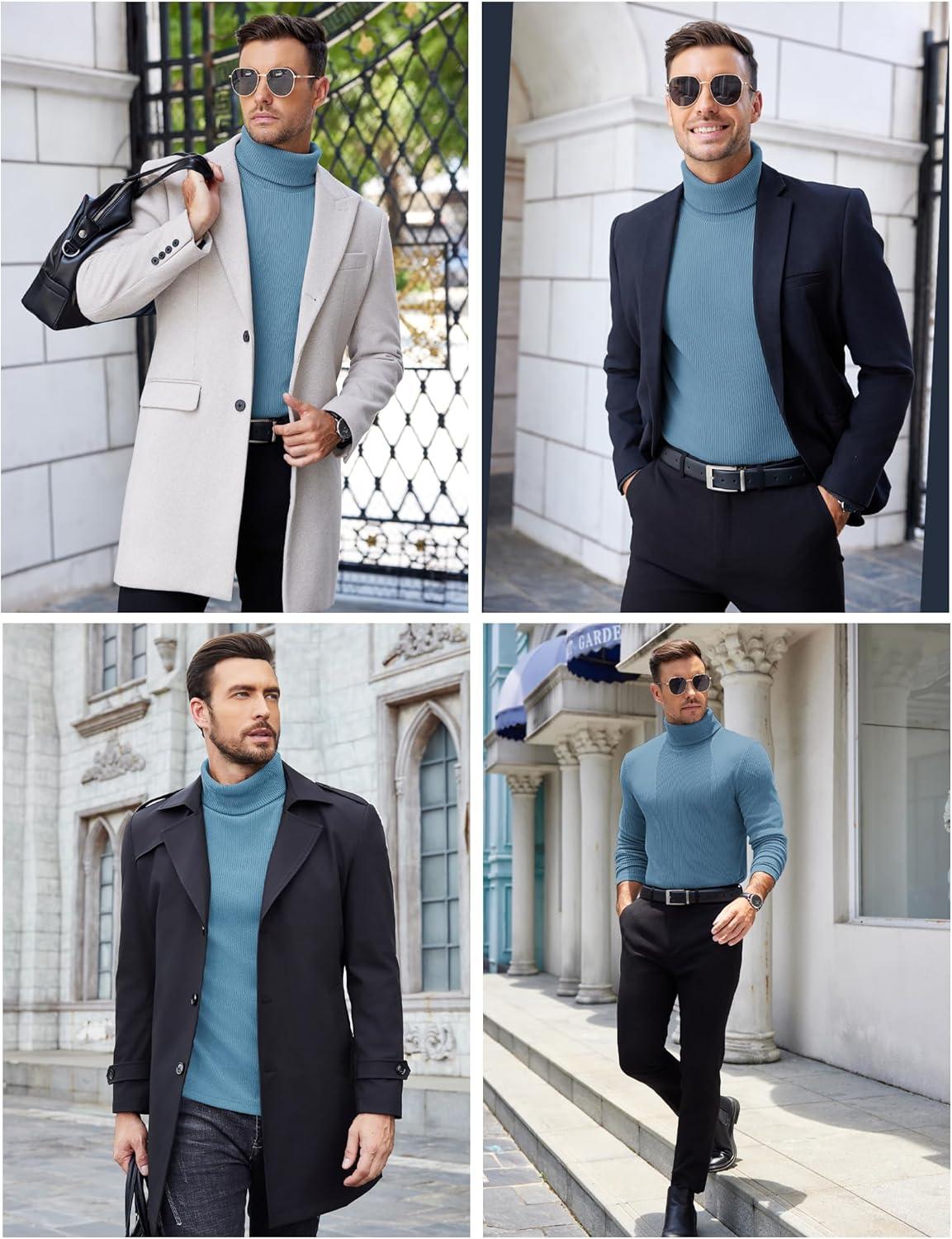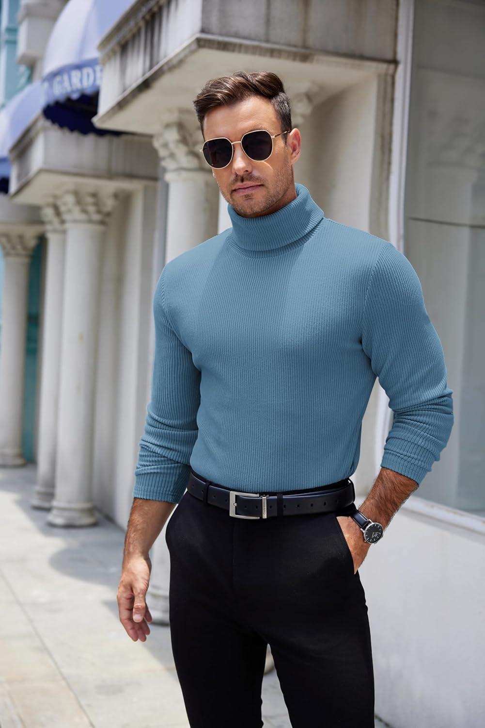 COOFANDY Men’s Ribbed Turtleneck Sweater Casual Basic Long Sleeve Knitted Pullover Sweater(Dark Gray)
