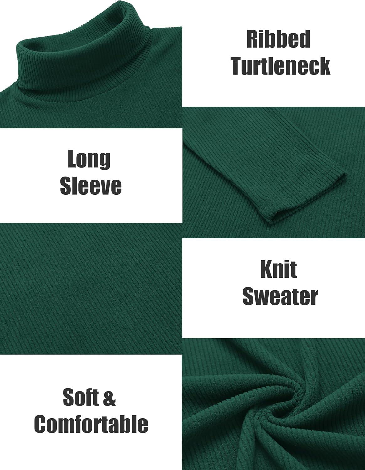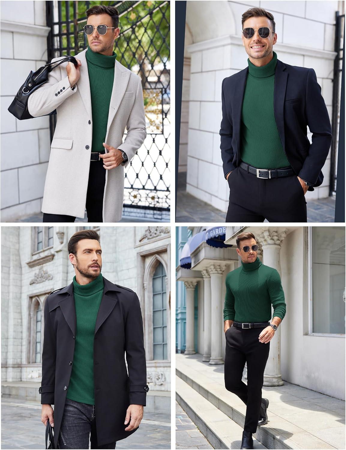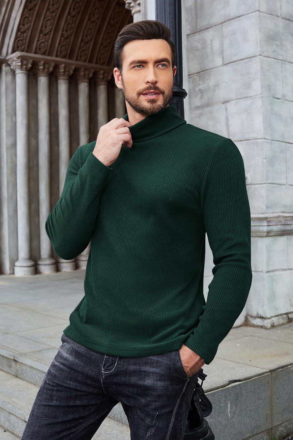 COOFANDY Men's Ribbed Turtleneck Sweater Casual Basic Long Sleeve Knitted Pullover Sweater(Green)