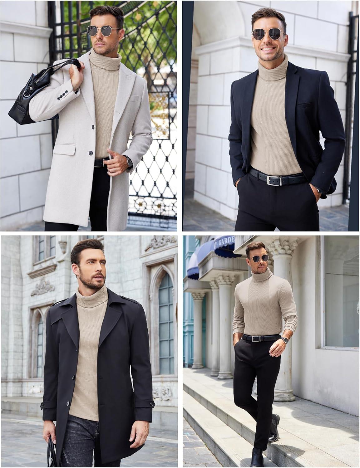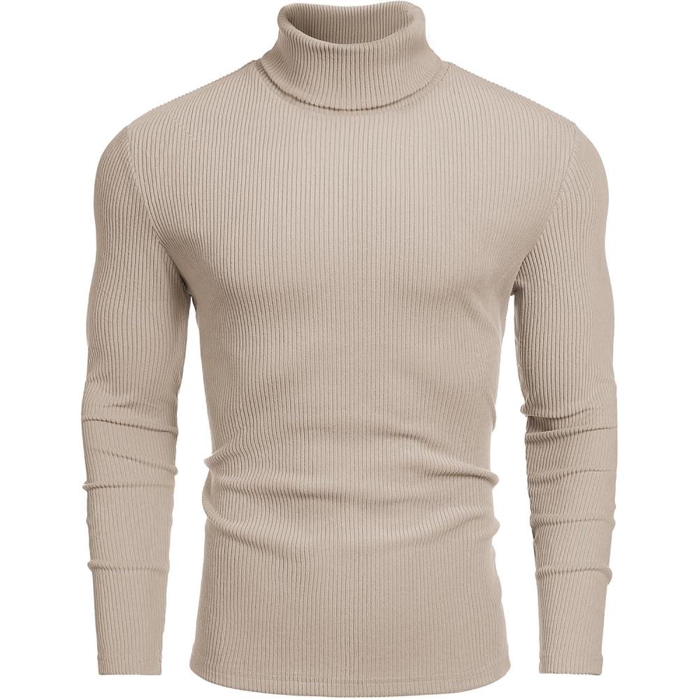COOFANDY Men’s Ribbed Turtleneck Sweater Casual Basic Long Sleeve Knitted Pullover Sweater(Beige)
