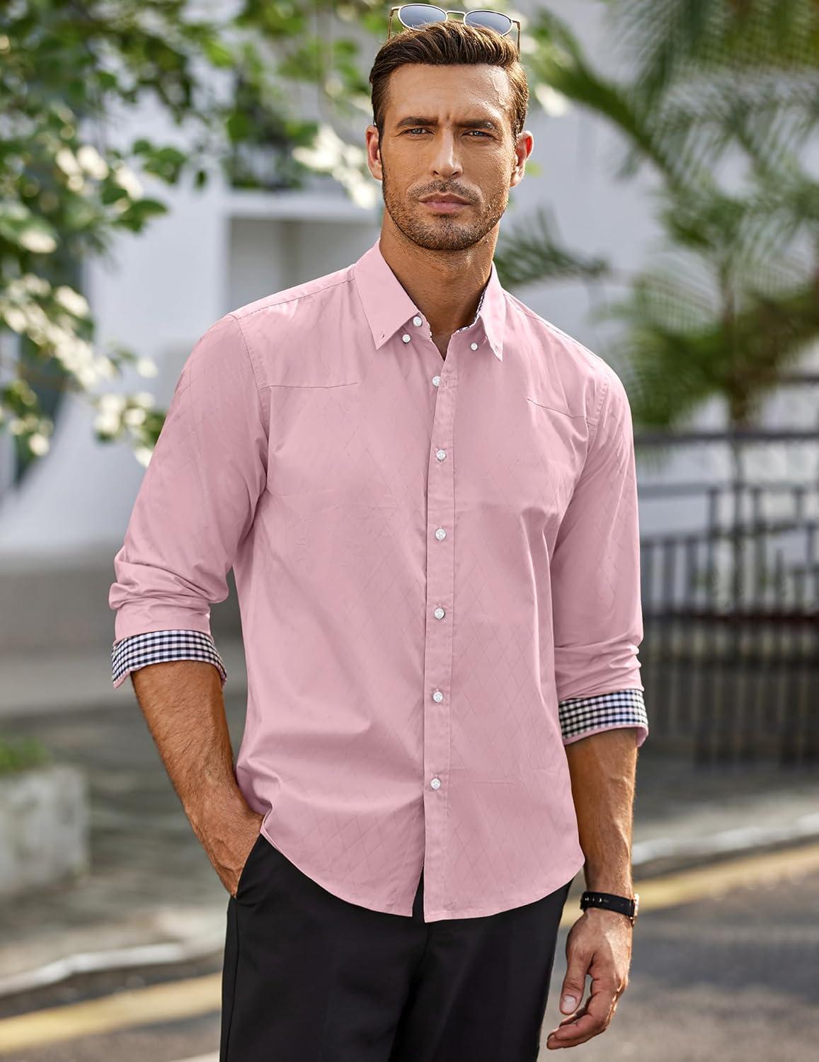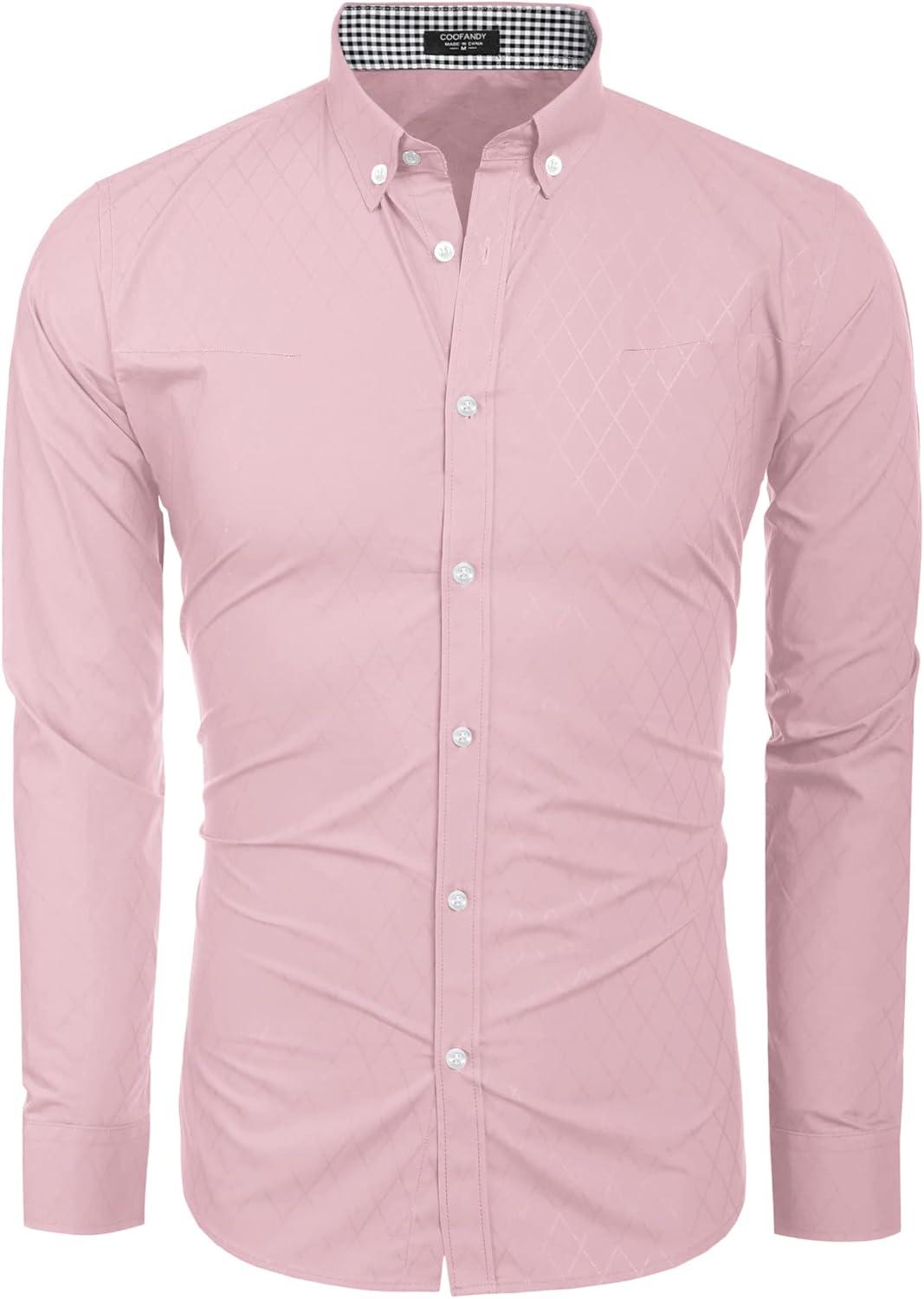 imageCOOFANDY Mens Button Down Shirts Stain Shield Dress Shirts Short Sleeve Summer Business Casual ShirtsPink