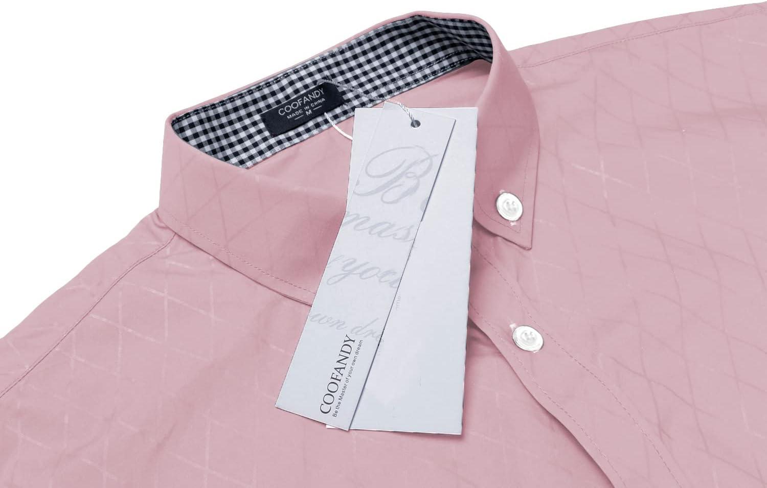 COOFANDY Men’s Button Down Shirts Stain Shield Dress Shirts Short Sleeve Summer Business Casual Shirts(Pink)