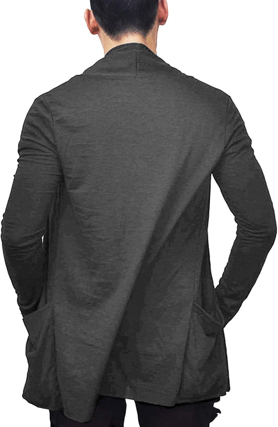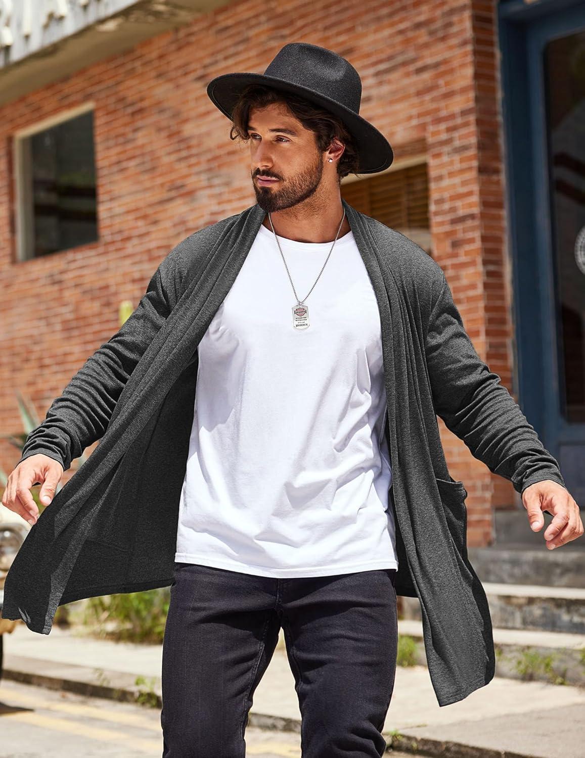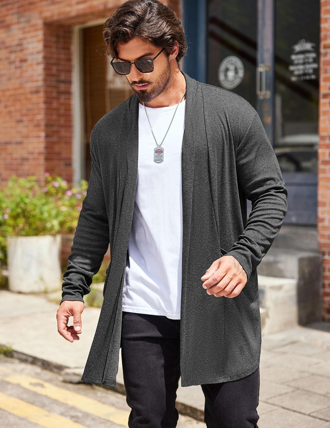 COOFANDY Men's Ruffle Shawl Collar Cardigan Open Front Lightweight Long Length Drape Cape Overcoat with Pockets(Deep Gray)