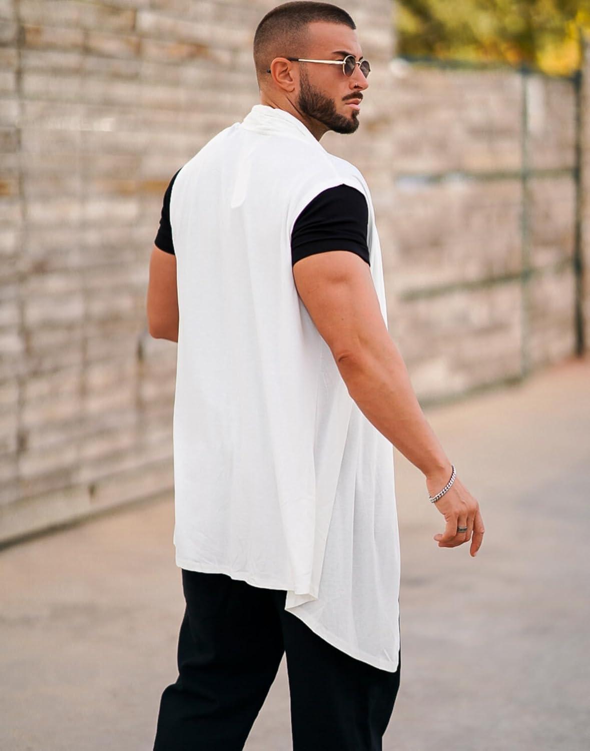 COOFANDY Men's Ruffle Shawl Collar Cardigan Sleeveless Open Front Sleeveless Kimono Vest(White)