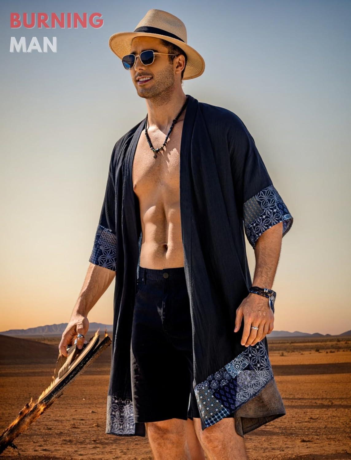 COOFANDY Men’s Ruffle Shawl Collar Lightweight Cardigan Long Kimono Jackets Open Front Drape Cape Coat(Khaki)