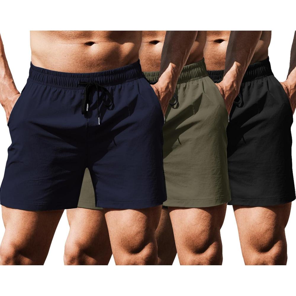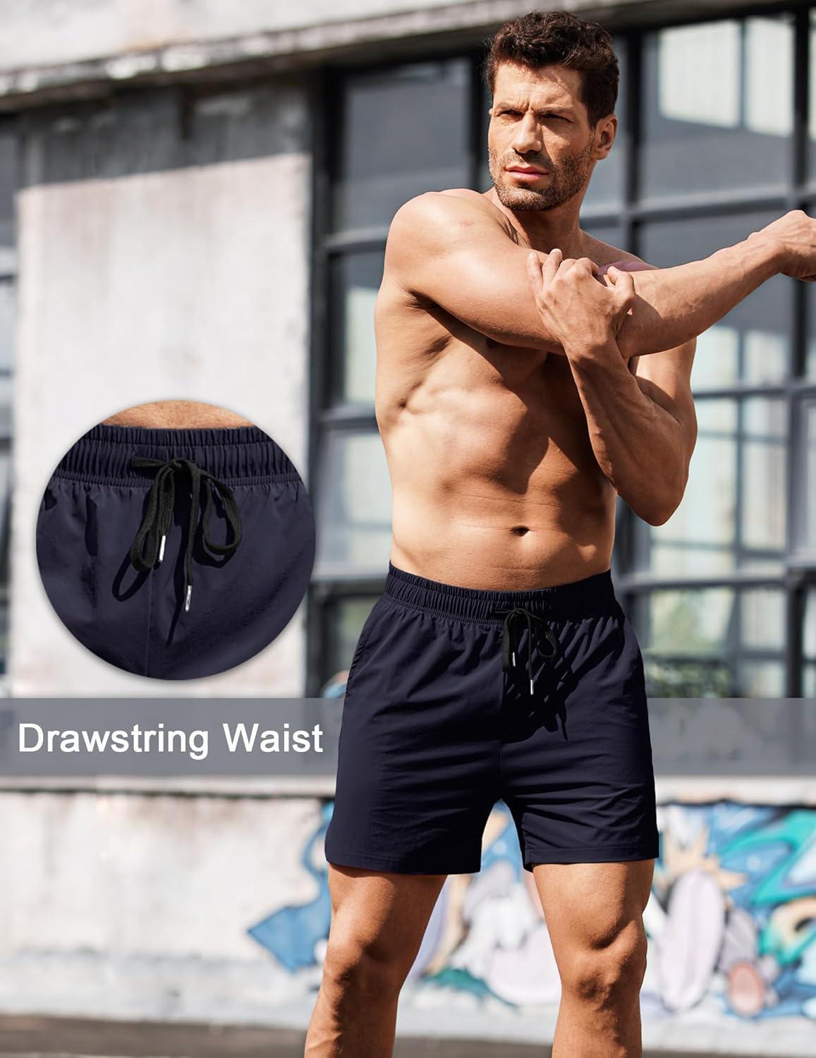 COOFANDY Men's Running Athletic Shorts 5 Inch 2 Pack Gym Workout Shorts Fitted Exercise Hiking Shorts with Zipper Pocket(Army Green/Navy Blue/Black)