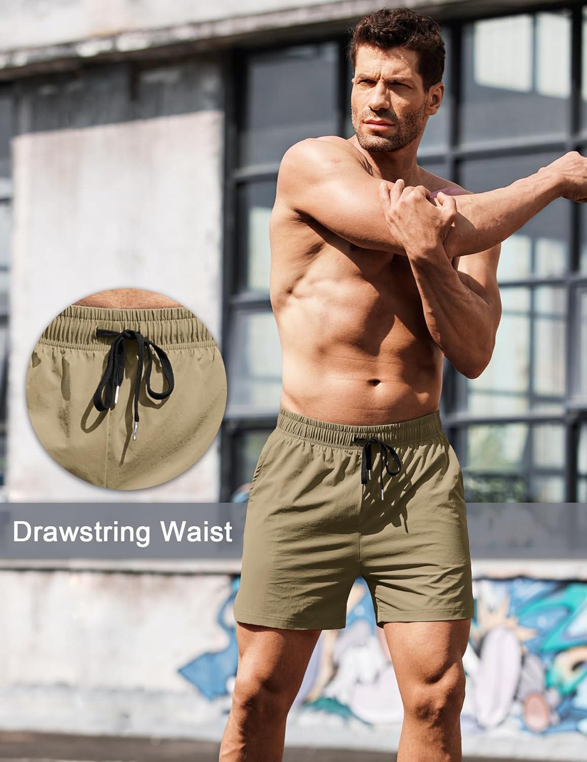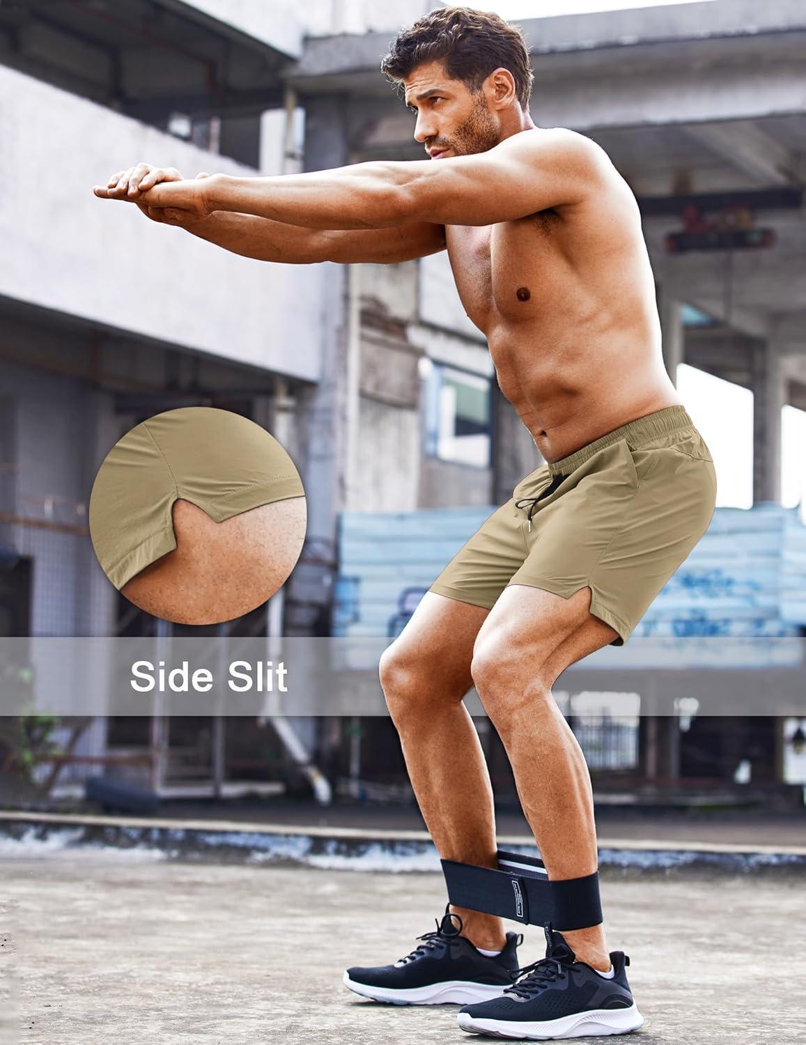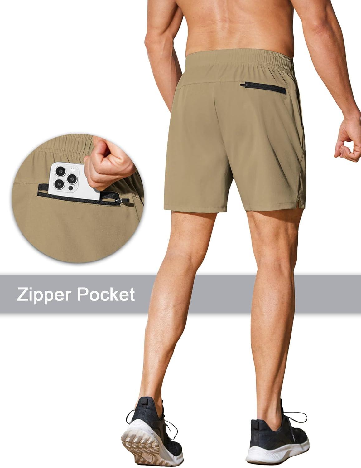 COOFANDY Men’s Running Athletic Shorts 5 Inch 2 Pack Gym Workout Shorts Fitted Exercise Hiking Shorts with Zipper Pocket(Khaki/Light Grey)
