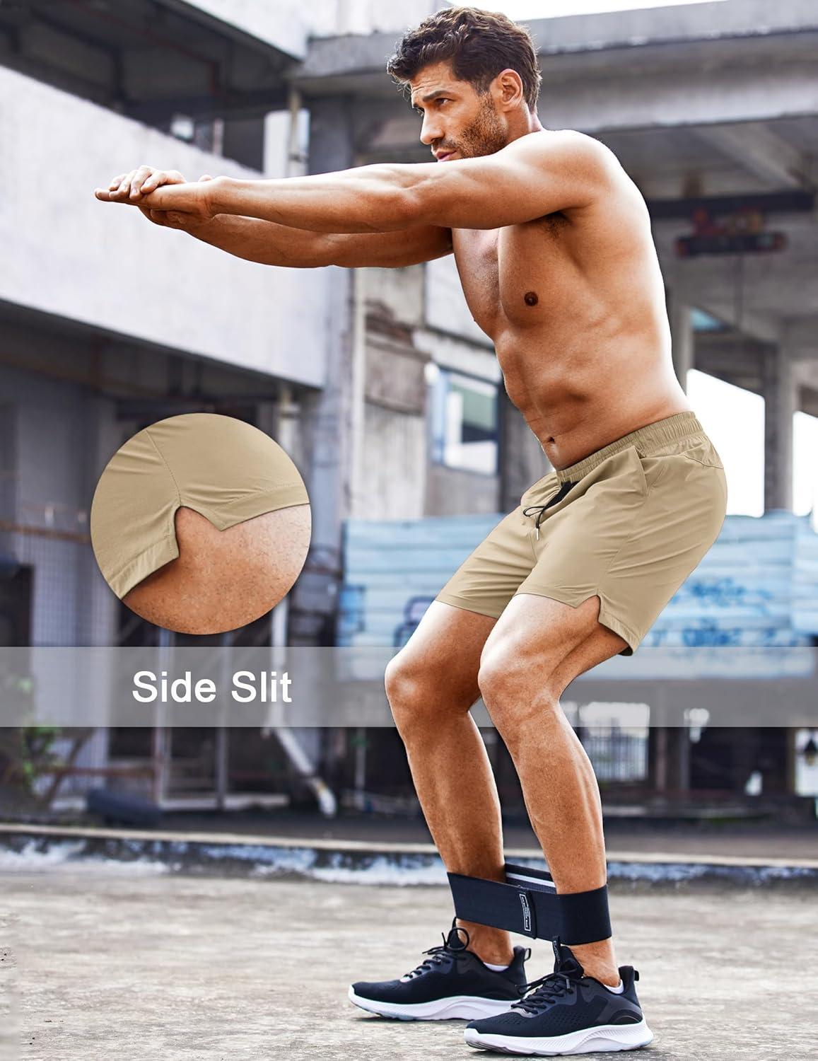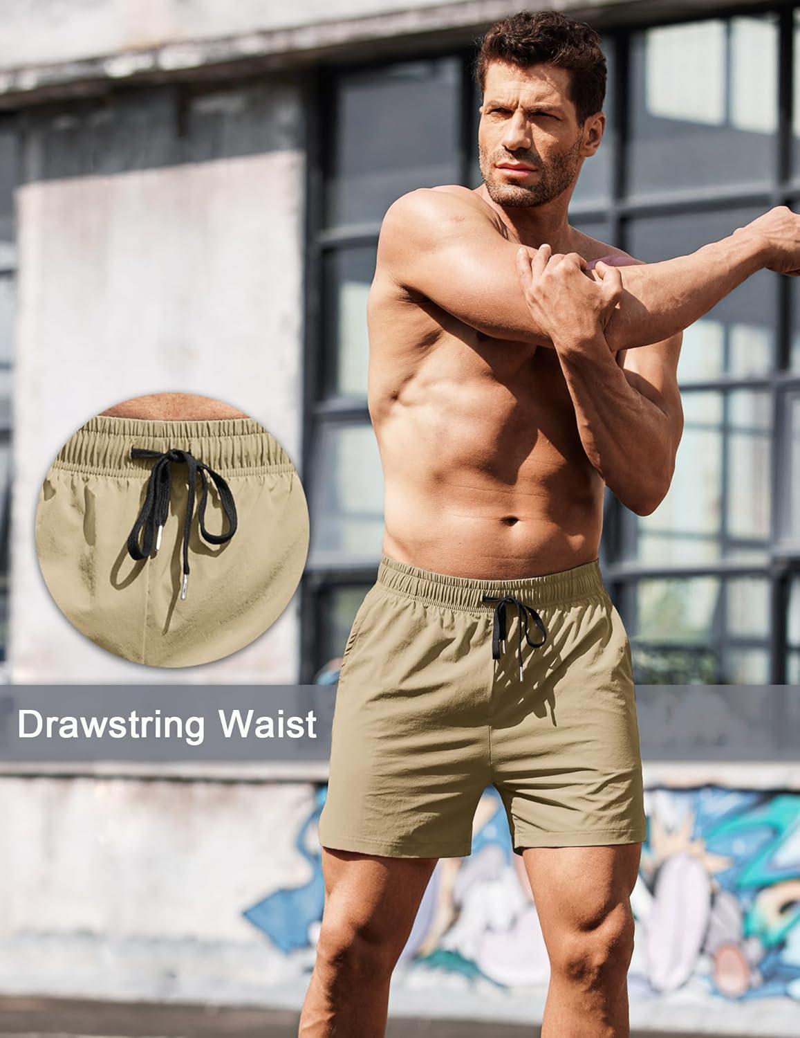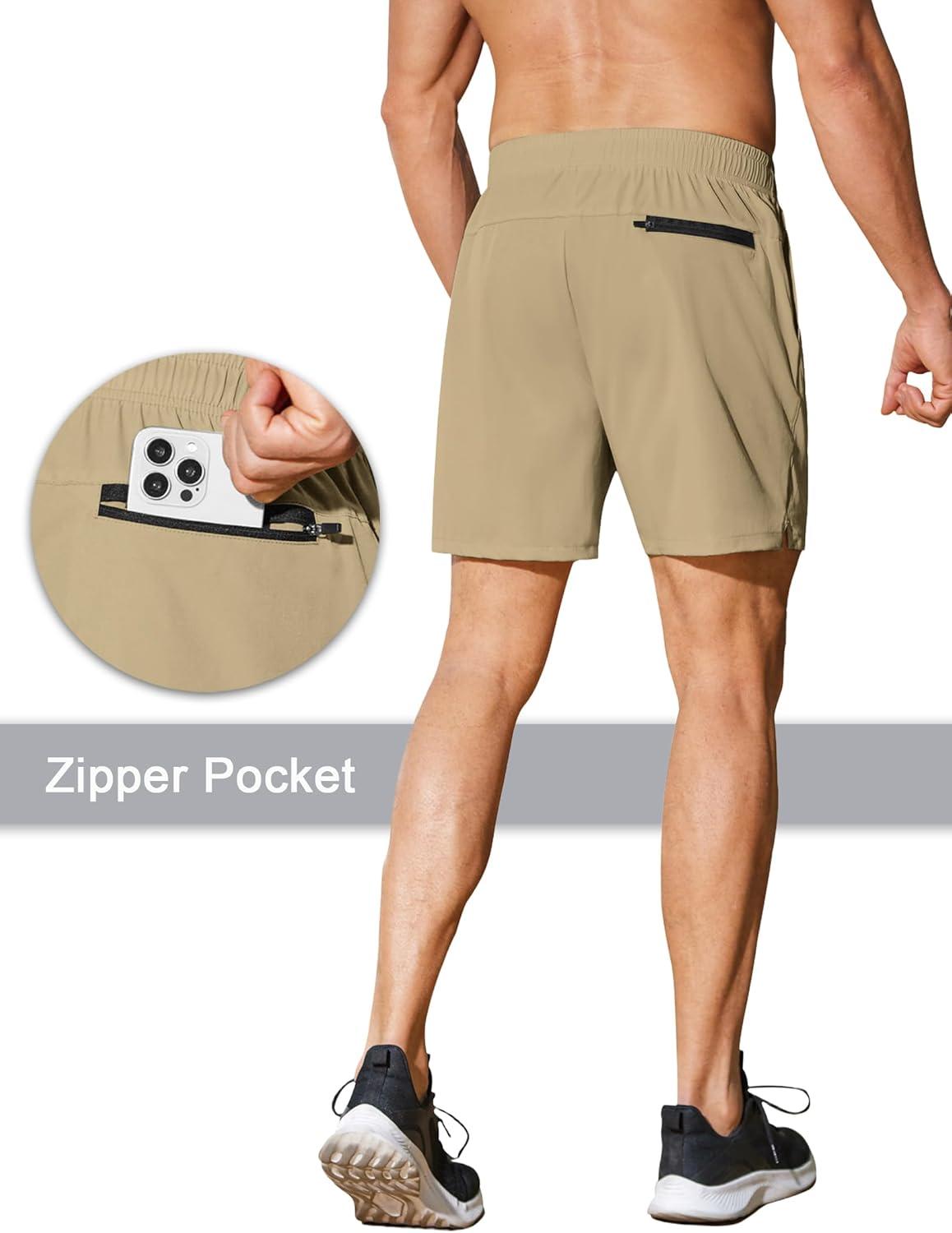 COOFANDY Men’s Running Athletic Shorts 5 Inch 2 Pack Gym Workout Shorts Fitted Exercise Hiking Shorts with Zipper Pocket(Light Khaki/Black)