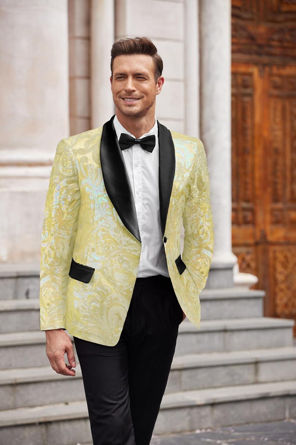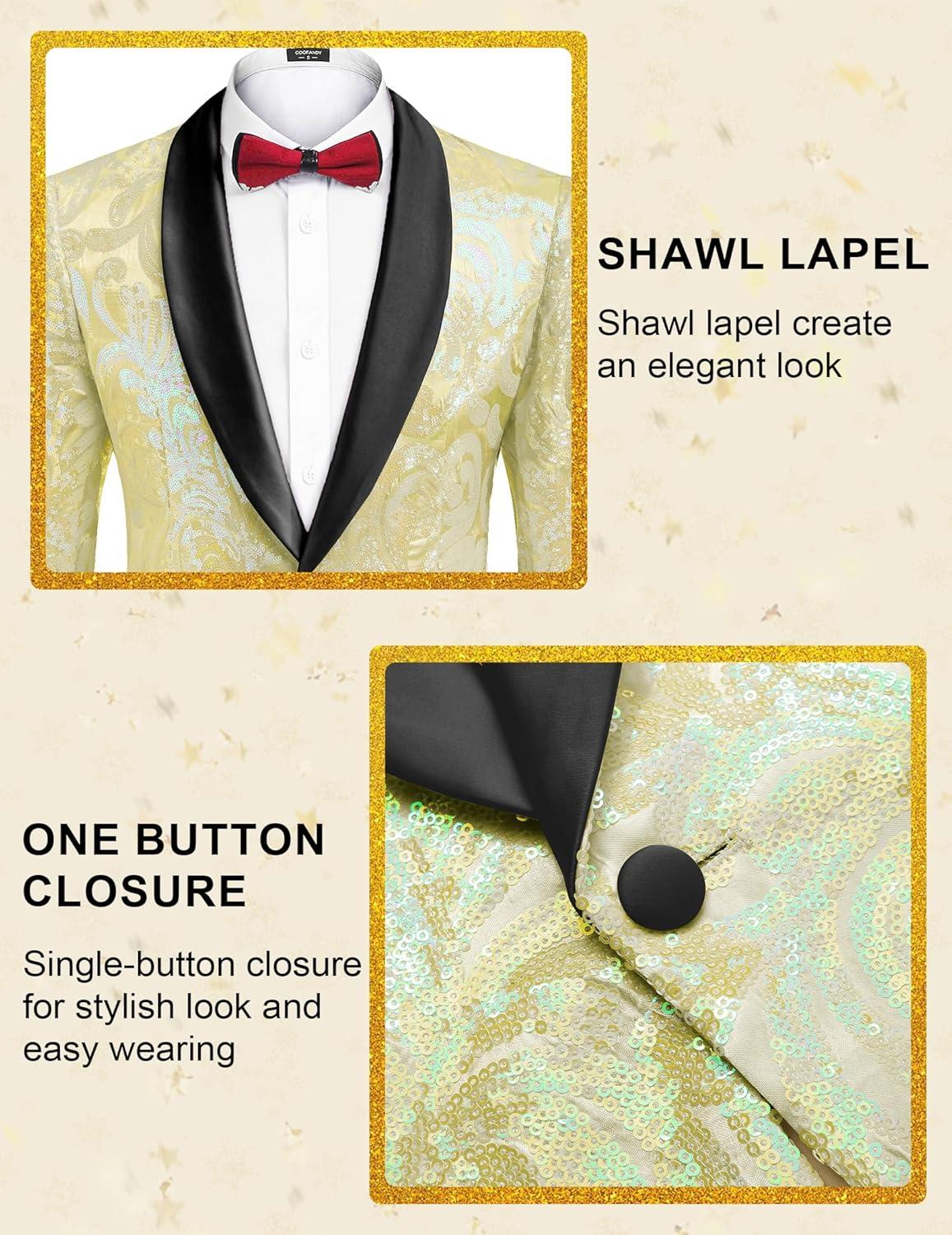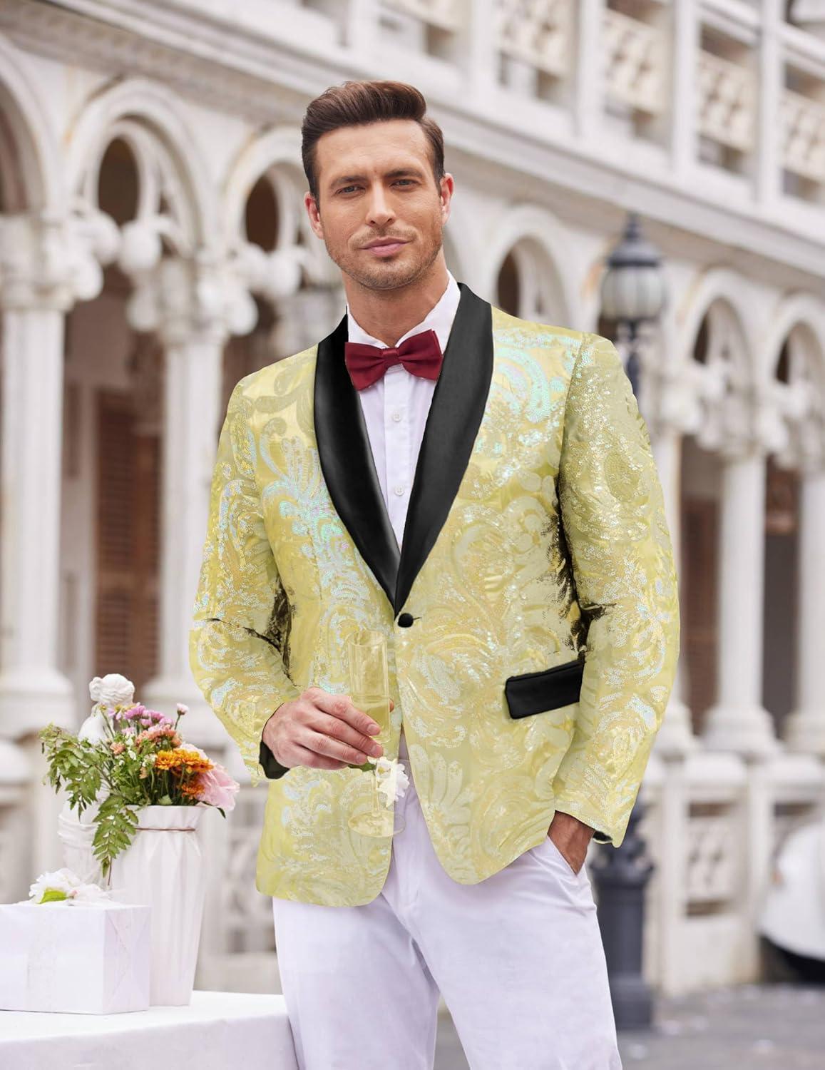 Save big on COOFANDY Men’s Sequin Blazer Sparkly Glitter Jacket Shiny Floral Suit Jacket Stylish Party Wedding Banquet Prom Tuxedo(Champagne) during our summer blowout sale. Limited quantities available.