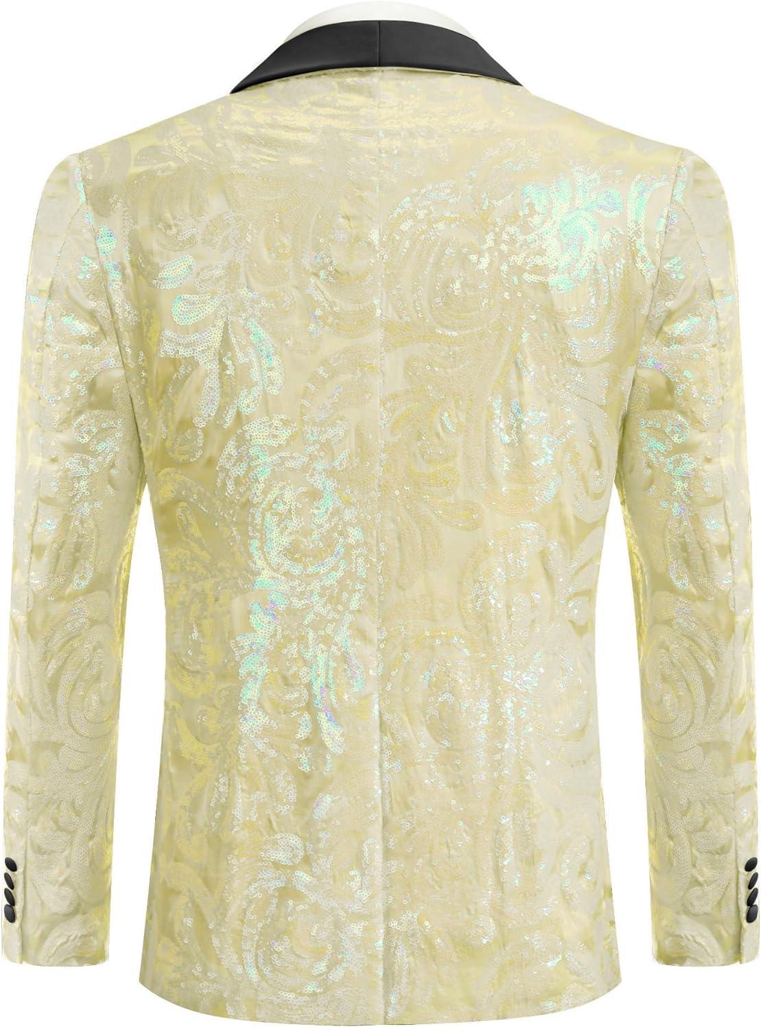 COOFANDY Men’s Sequin Blazer Sparkly Glitter Jacket Shiny Floral Suit Jacket Stylish Party Wedding Banquet Prom Tuxedo(Gold)